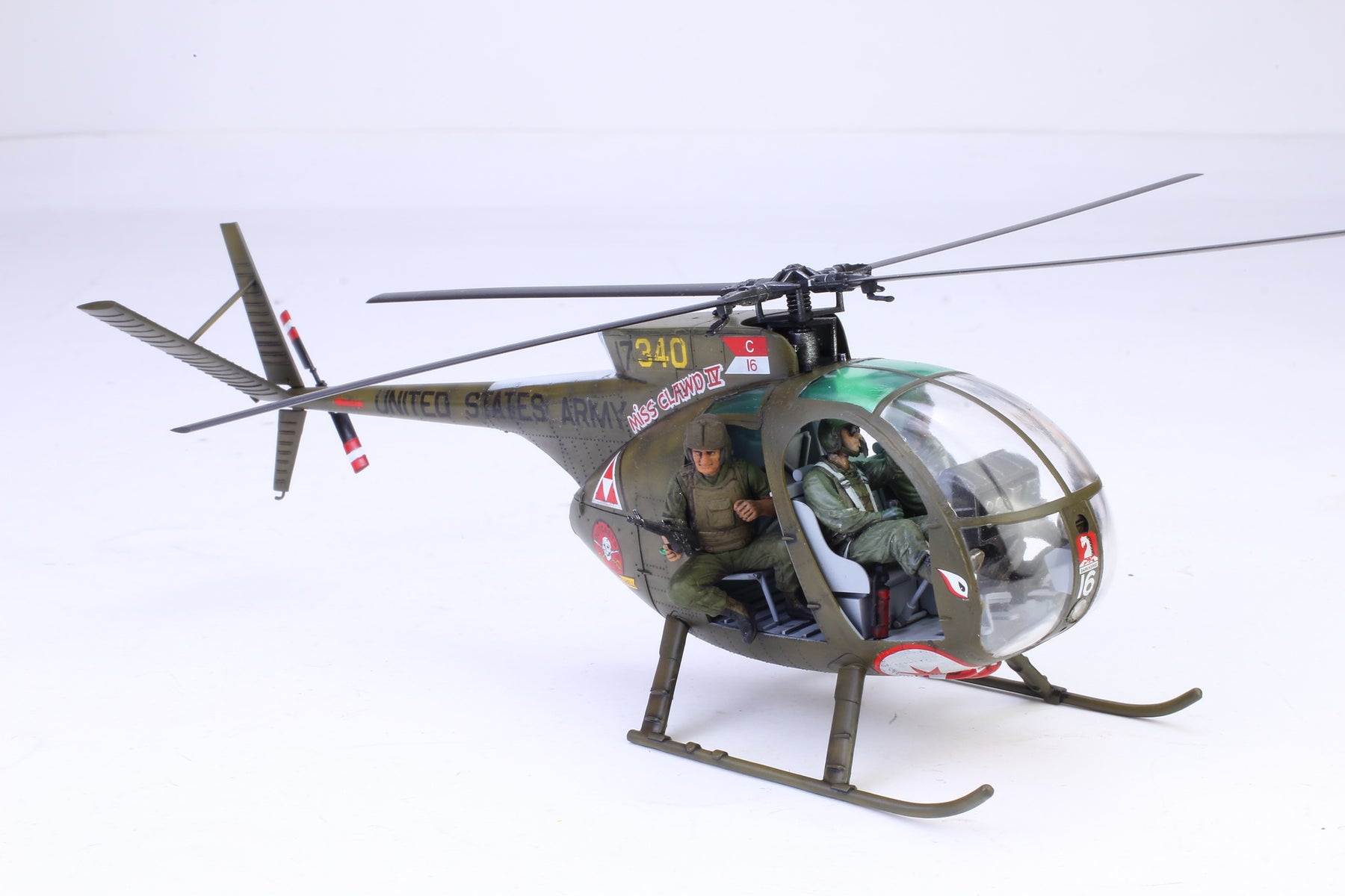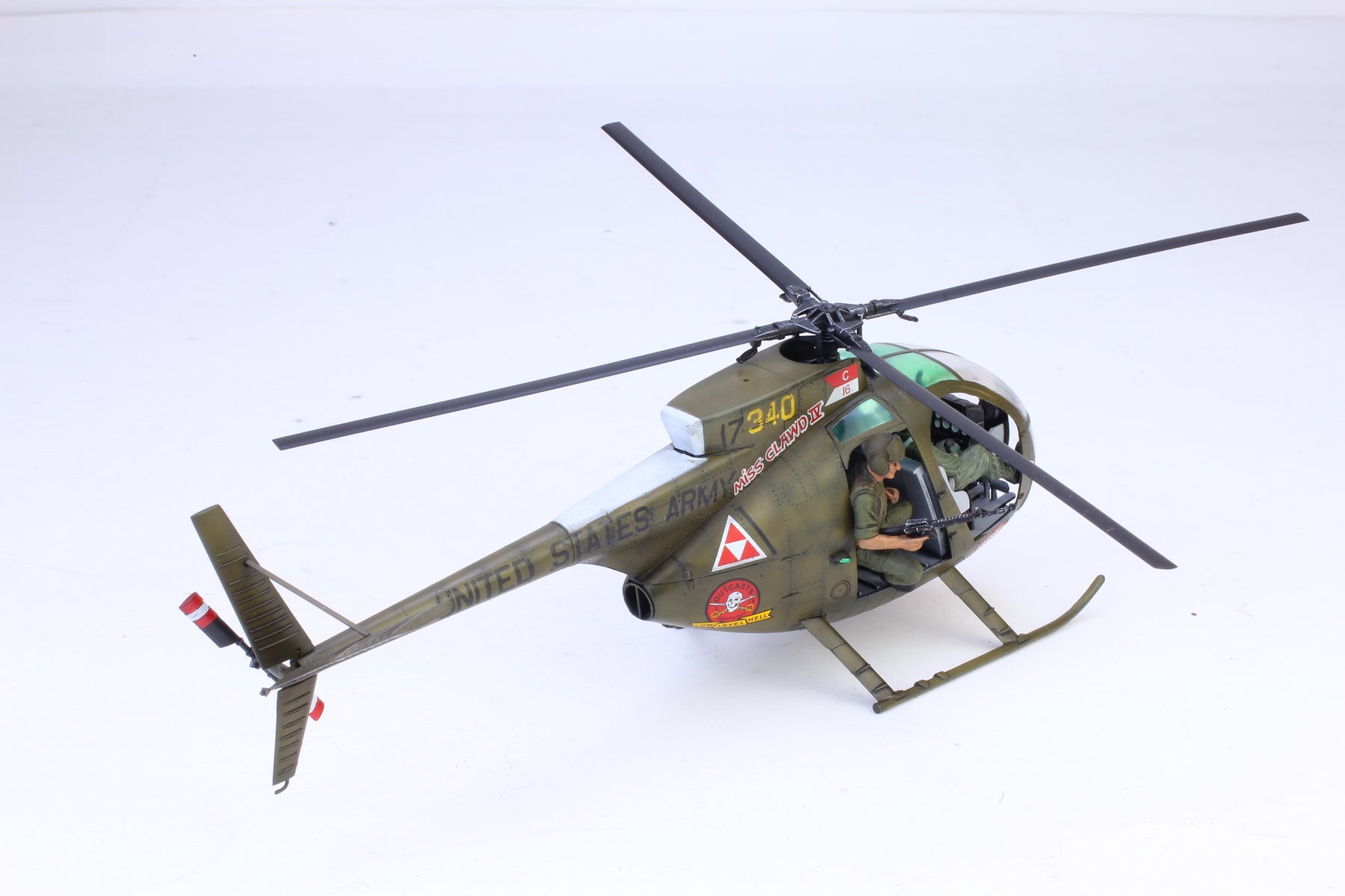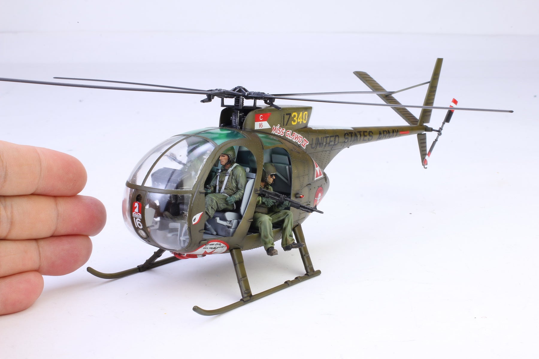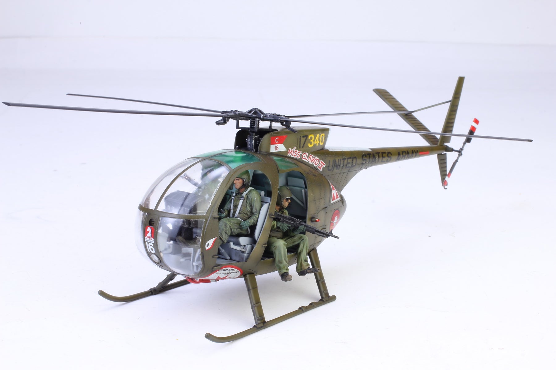 This listing includes the OH-6A Cayuse helicopter as well as four highly-detailed crew members, consisting of two pilots and two gunners. This adds to the overall display value of the model, making it the perfect addition to any collection.