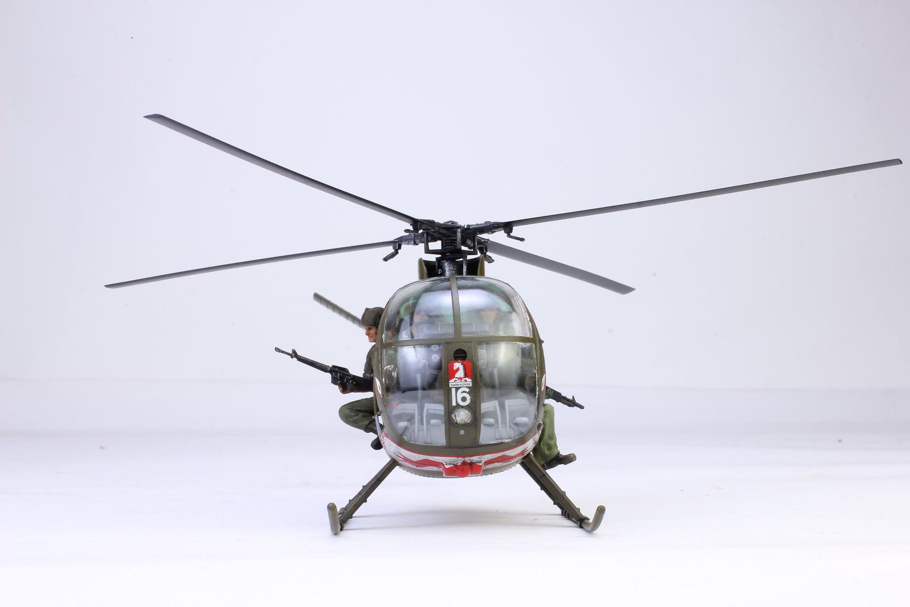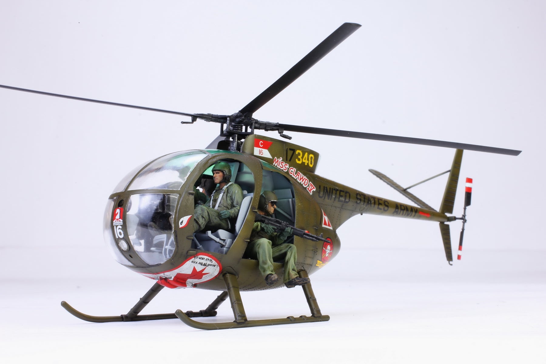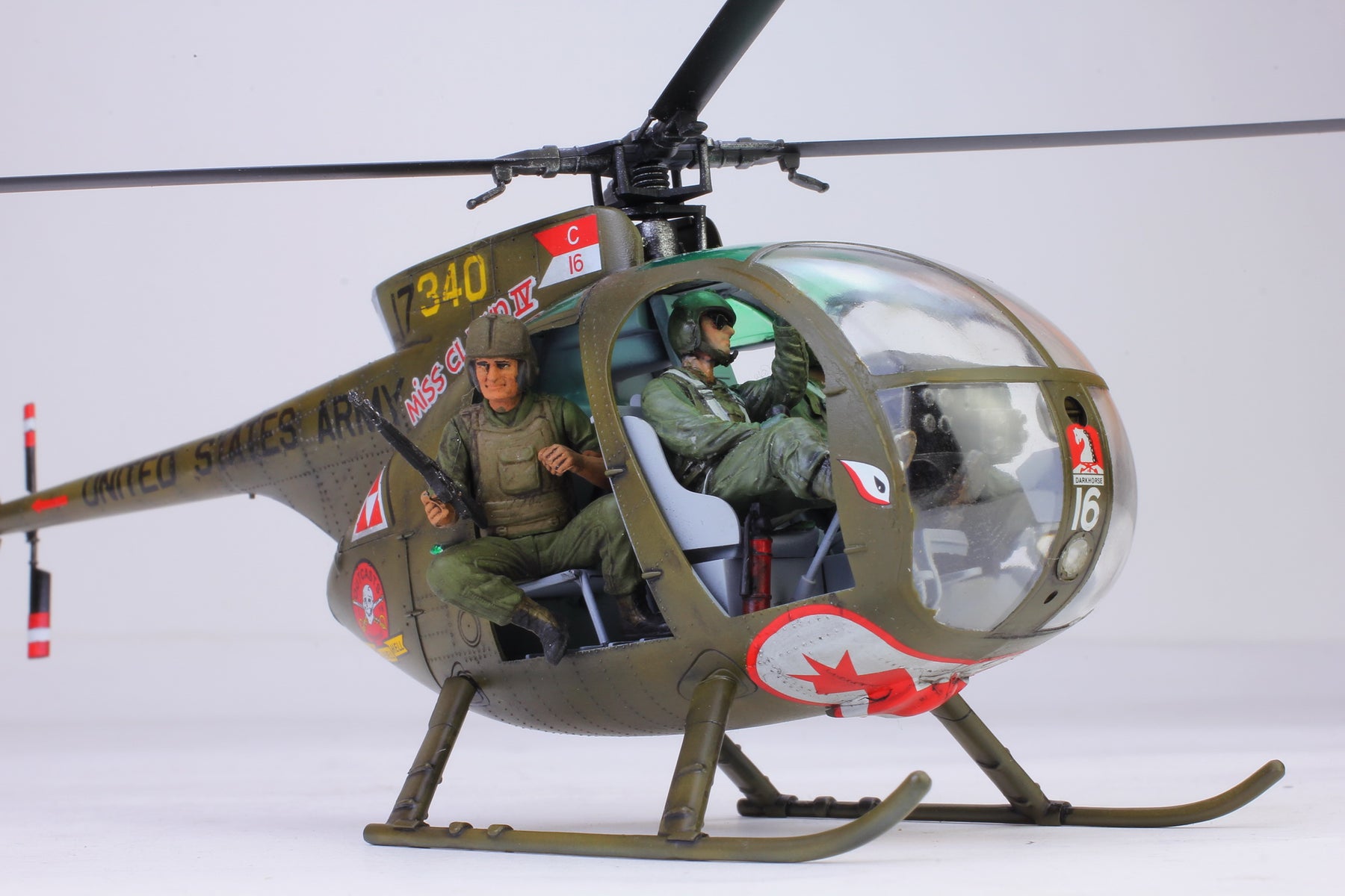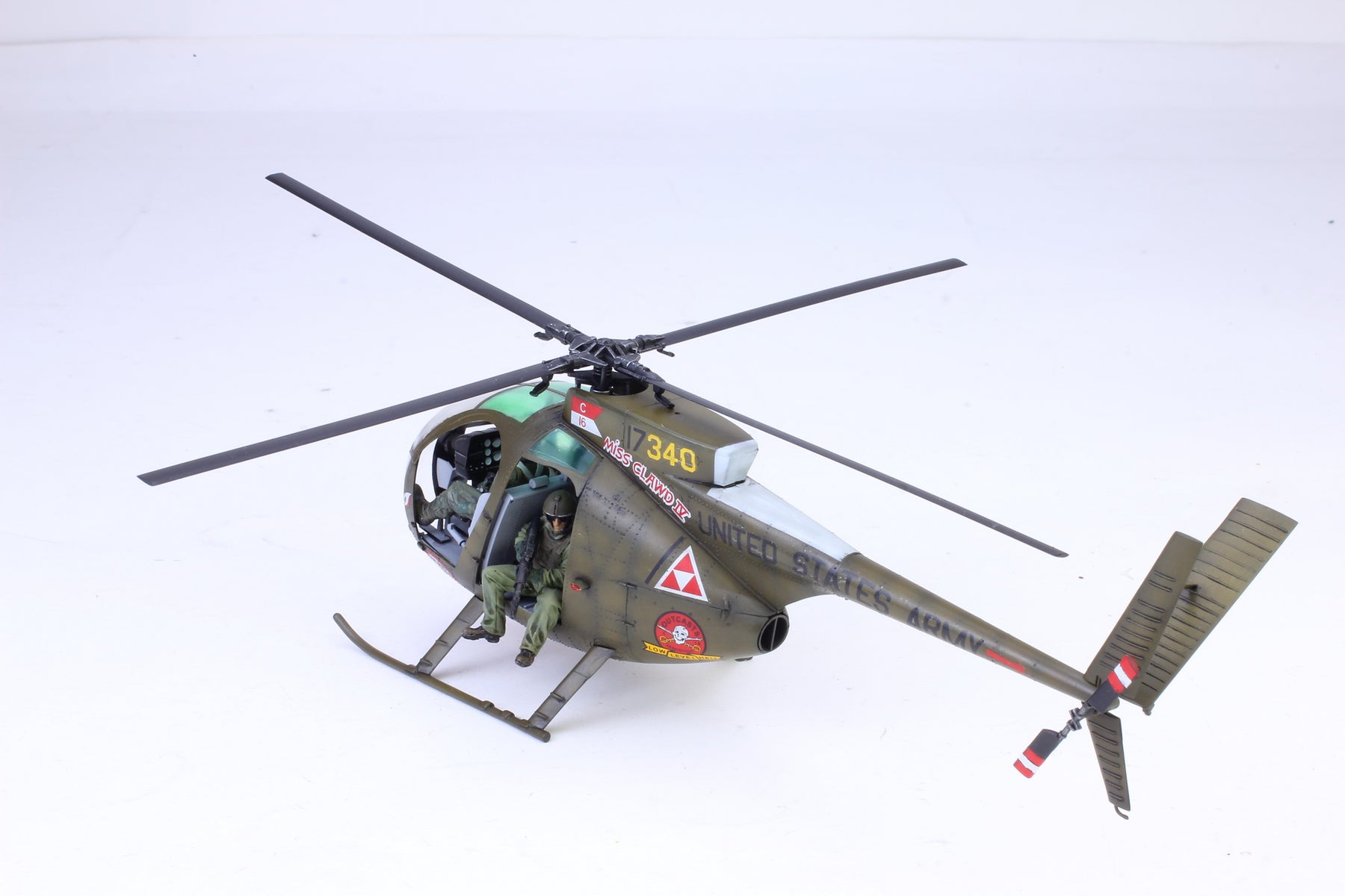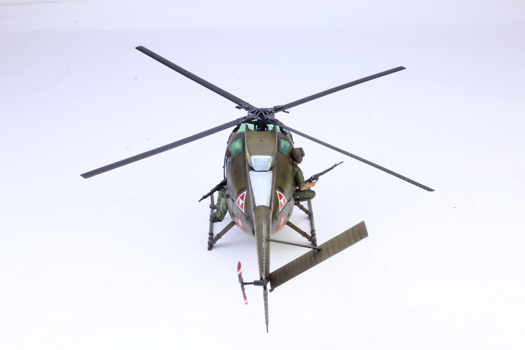 This listing includes the OH-6A Cayuse helicopter as well as four highly-detailed crew members, consisting of two pilots and two gunners. This adds to the overall display value of the model, making it the perfect addition to any collection.