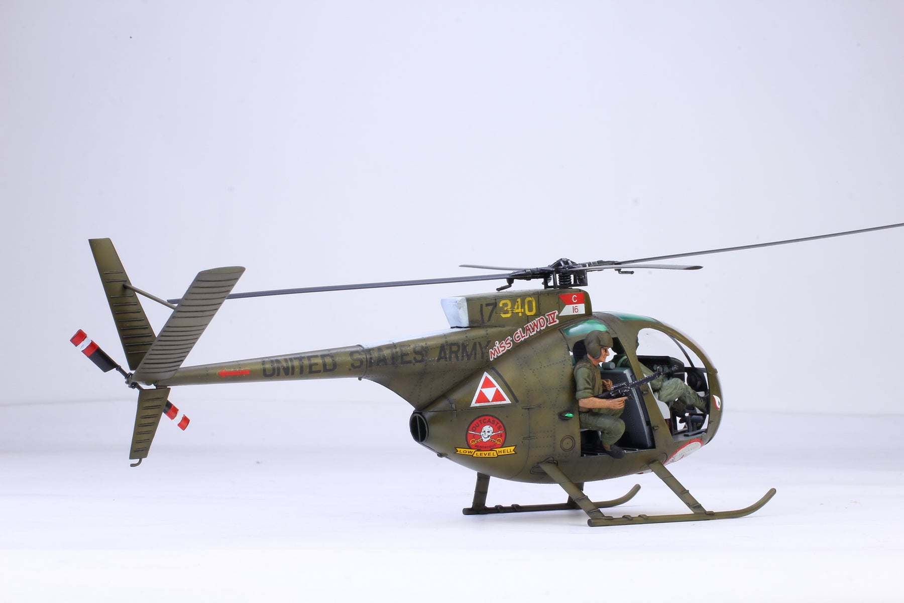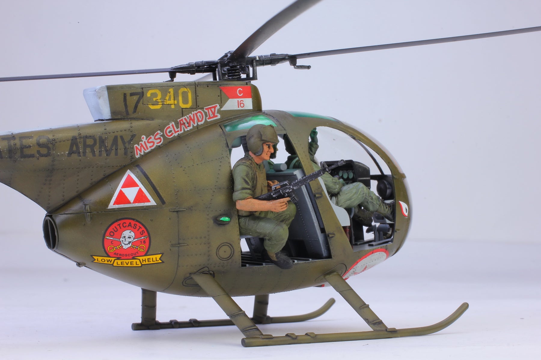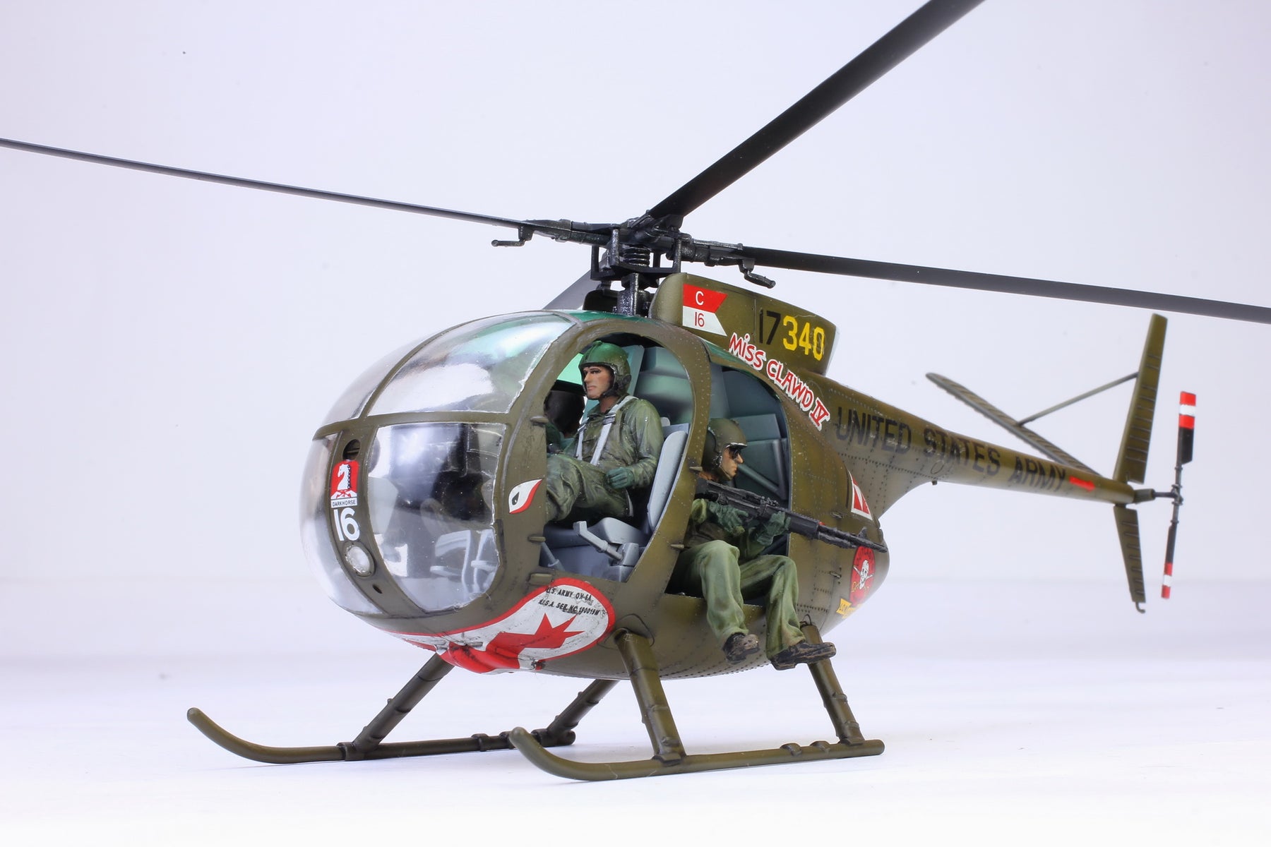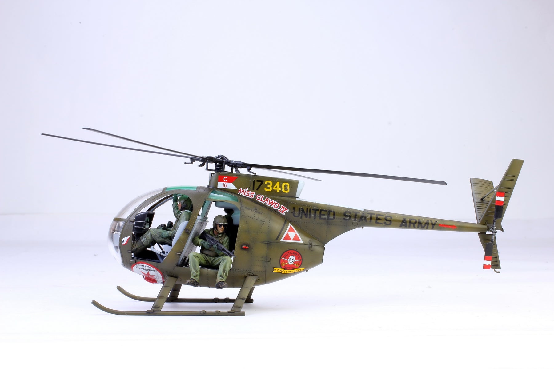 This listing includes the OH-6A Cayuse helicopter as well as four highly-detailed crew members, consisting of two pilots and two gunners. This adds to the overall display value of the model, making it the perfect addition to any collection.