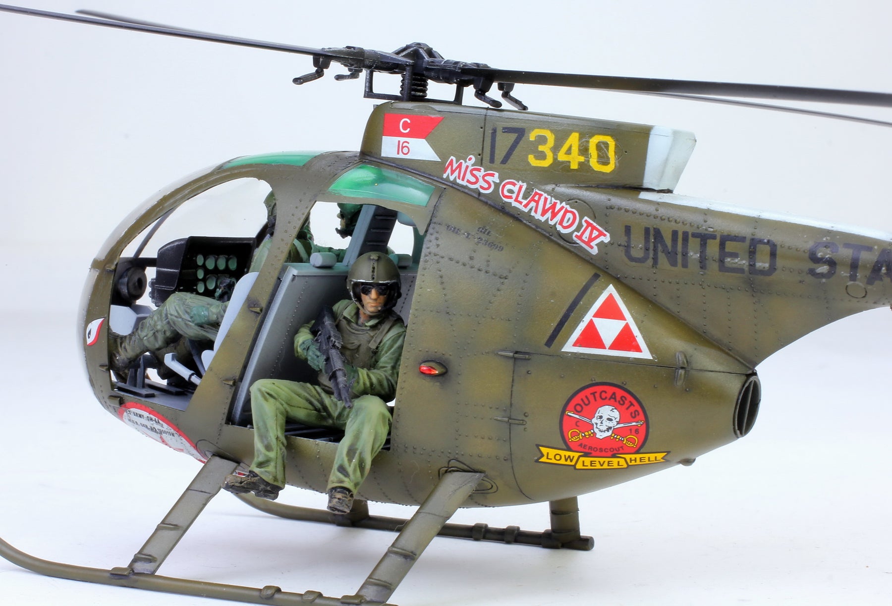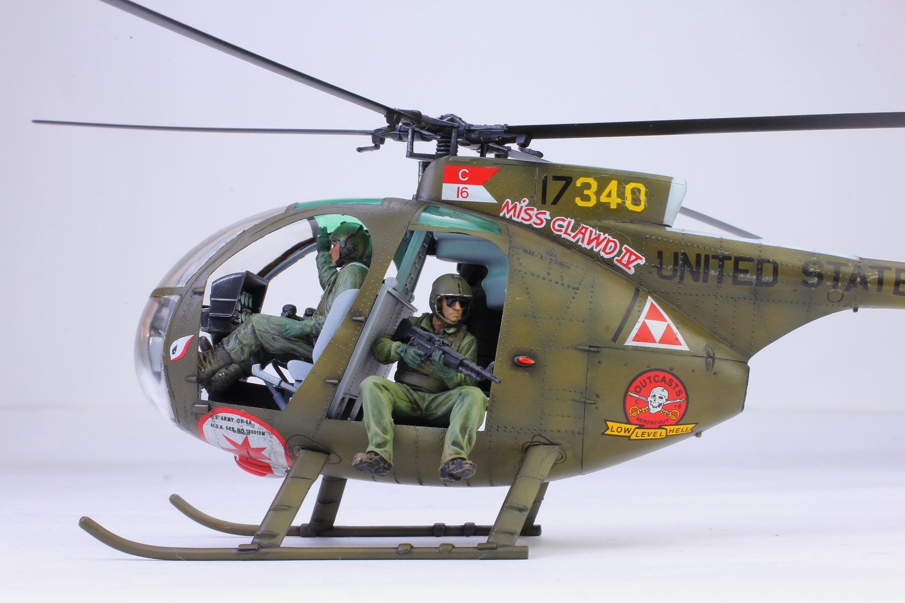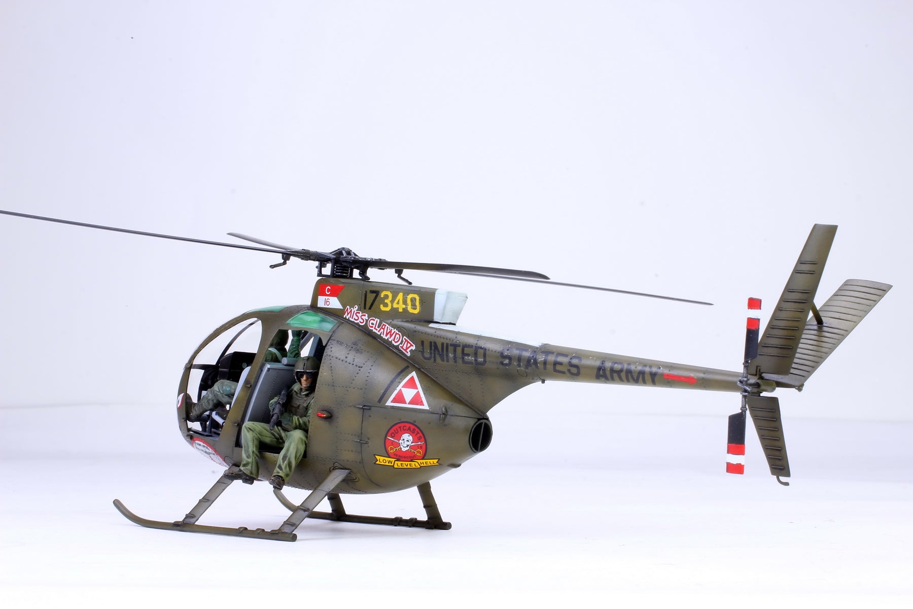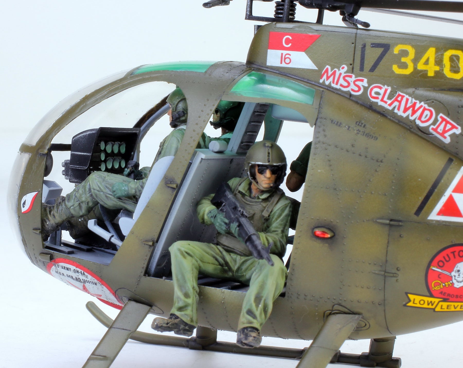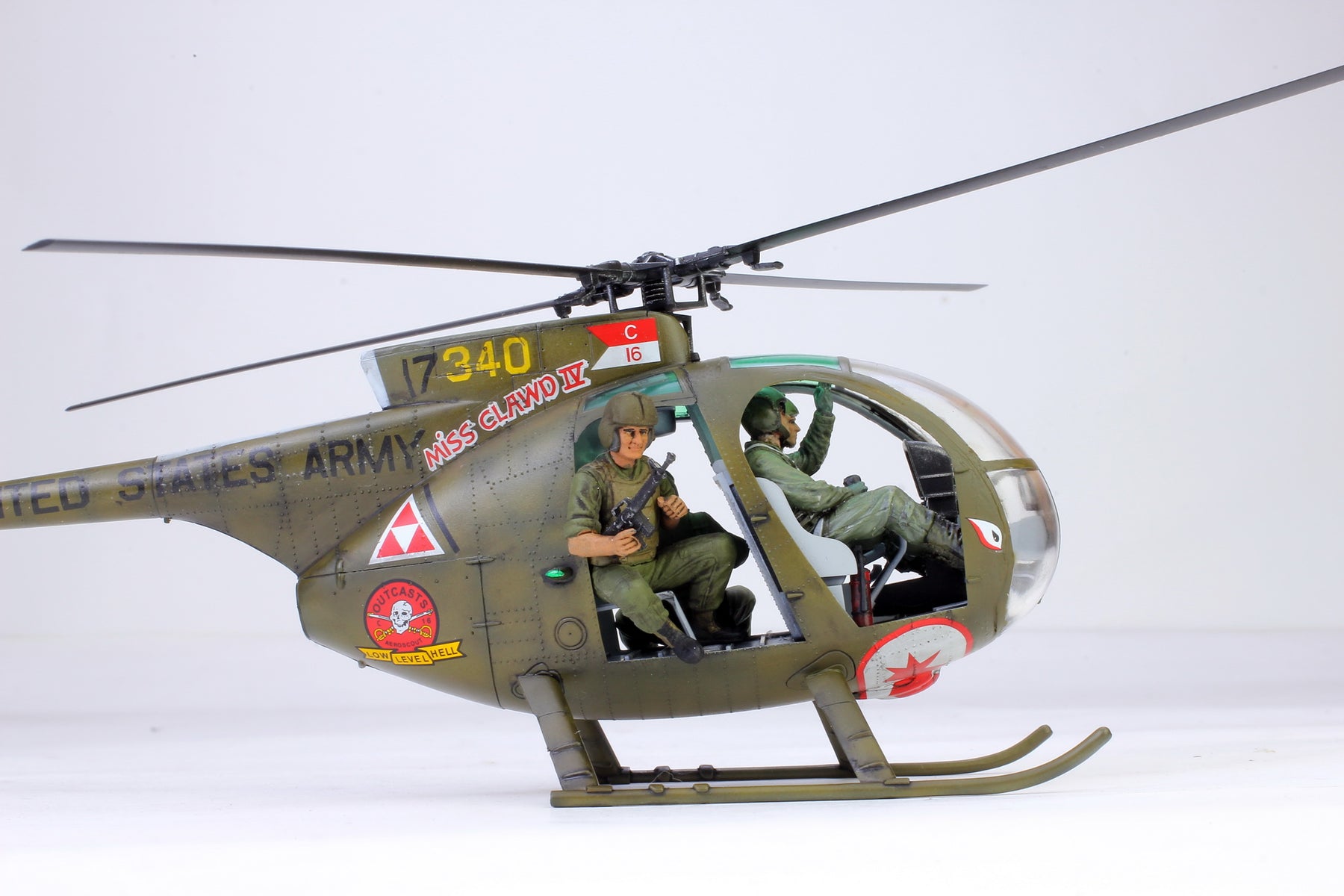 This listing includes the OH-6A Cayuse helicopter as well as four highly-detailed crew members, consisting of two pilots and two gunners. This adds to the overall display value of the model, making it the perfect addition to any collection.