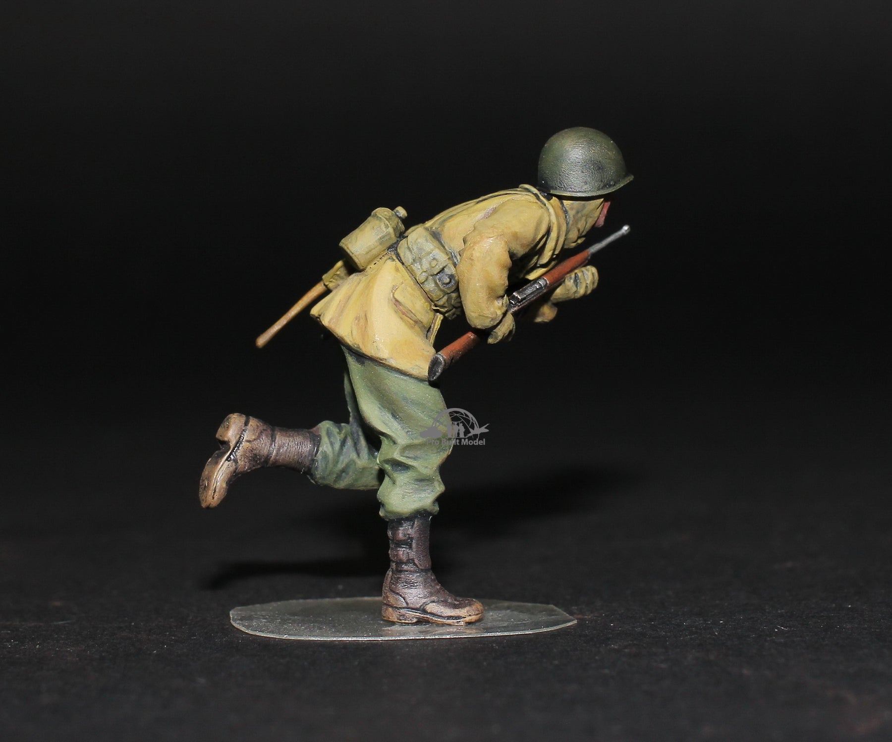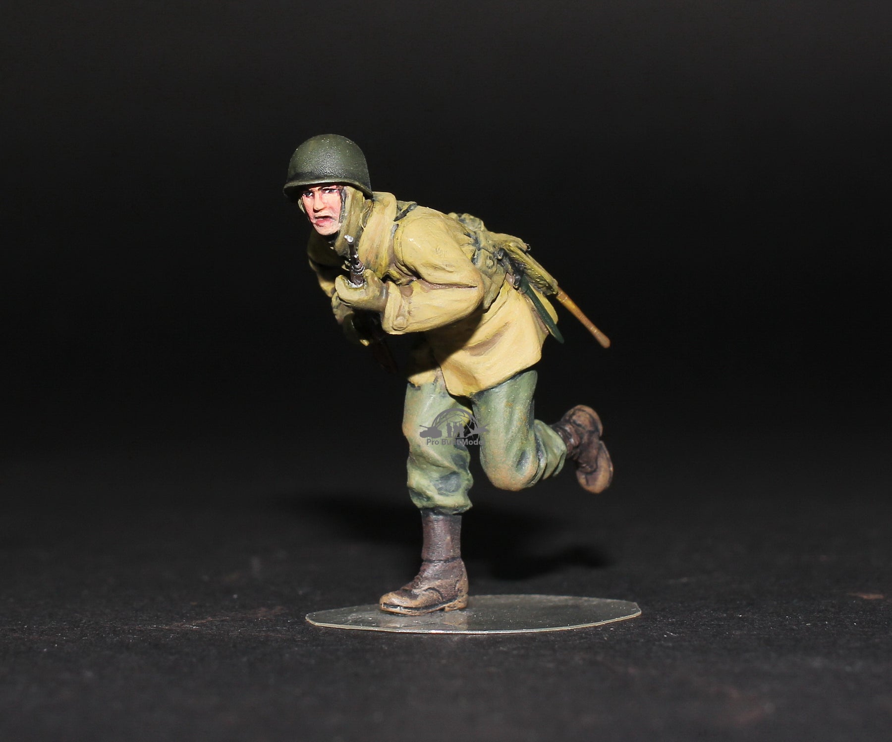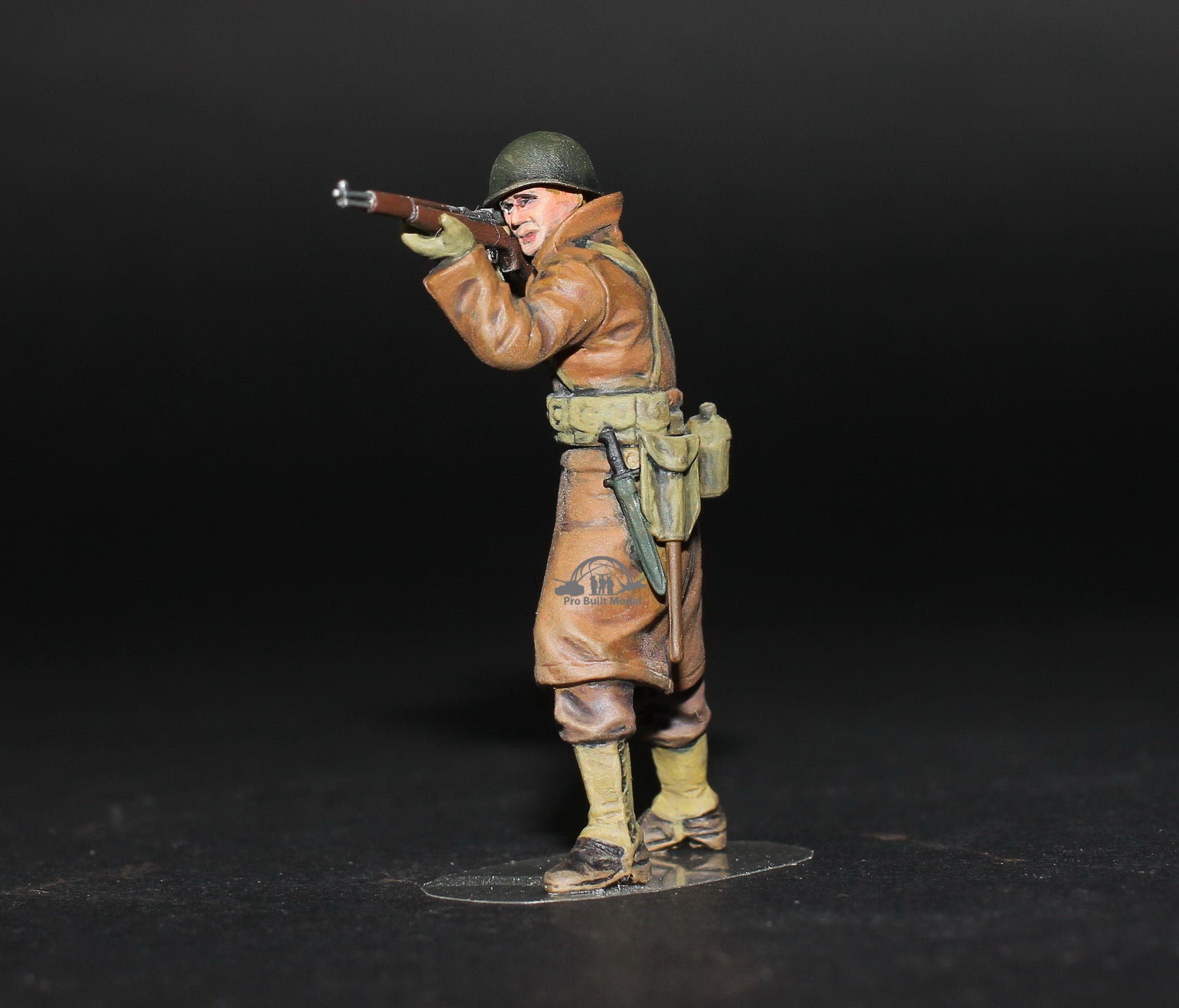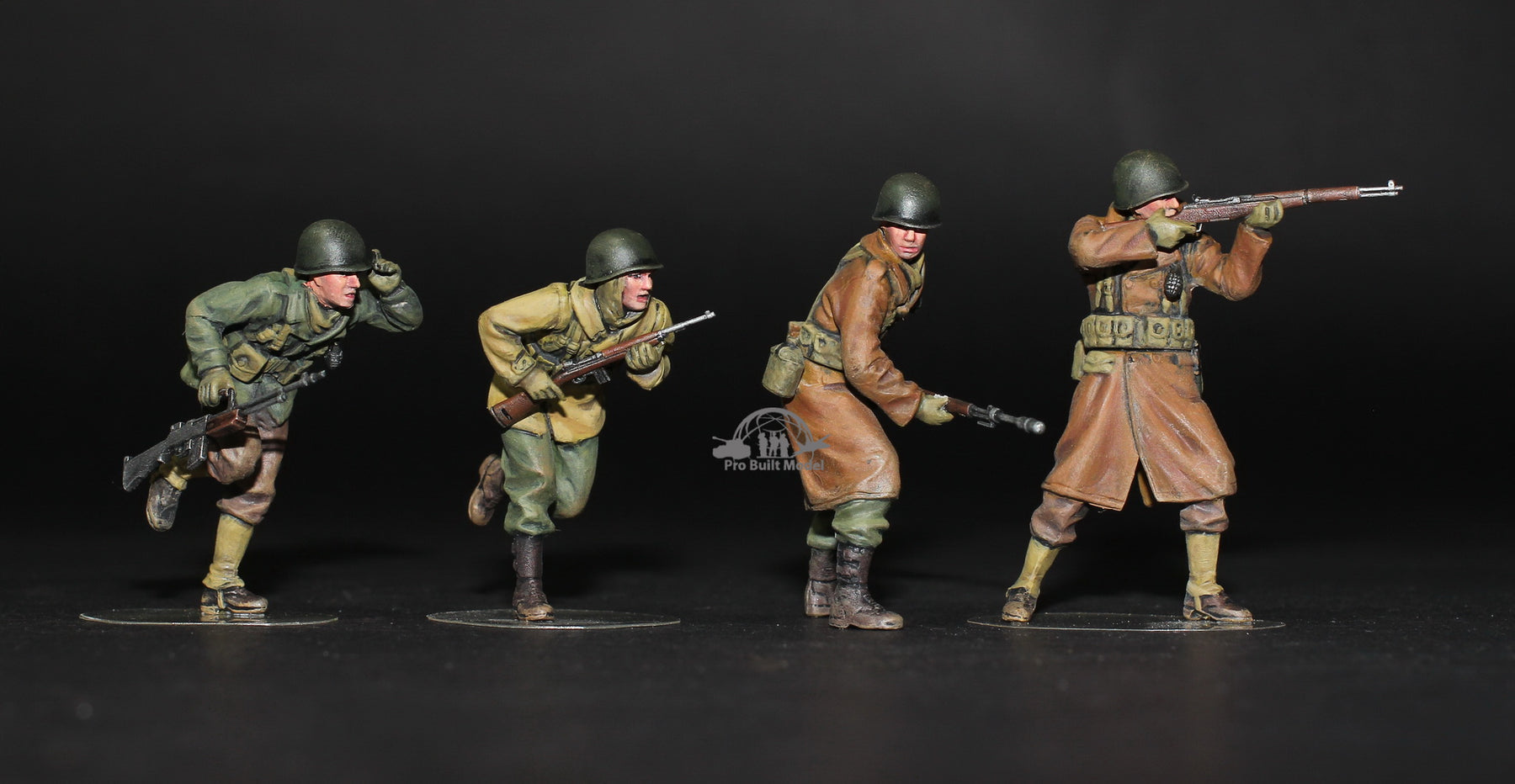Bring authentic World War II realism to your dioramas with this set of 4 professionally painted 1:35 scale US Infantry figures. Each figure is hand-crafted and finely detailed to capture the grit and determination of American soldiers fighting in the harsh European winter.