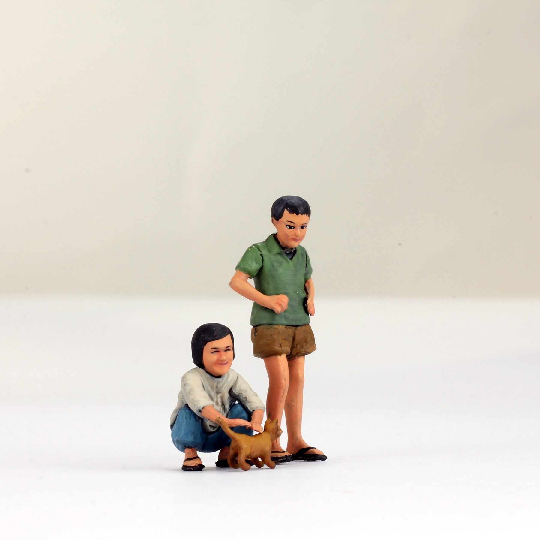 Pro-Painted 1/35 Set 02 – Vietnamese Civilian Kids with Pet (Vietnam Era)