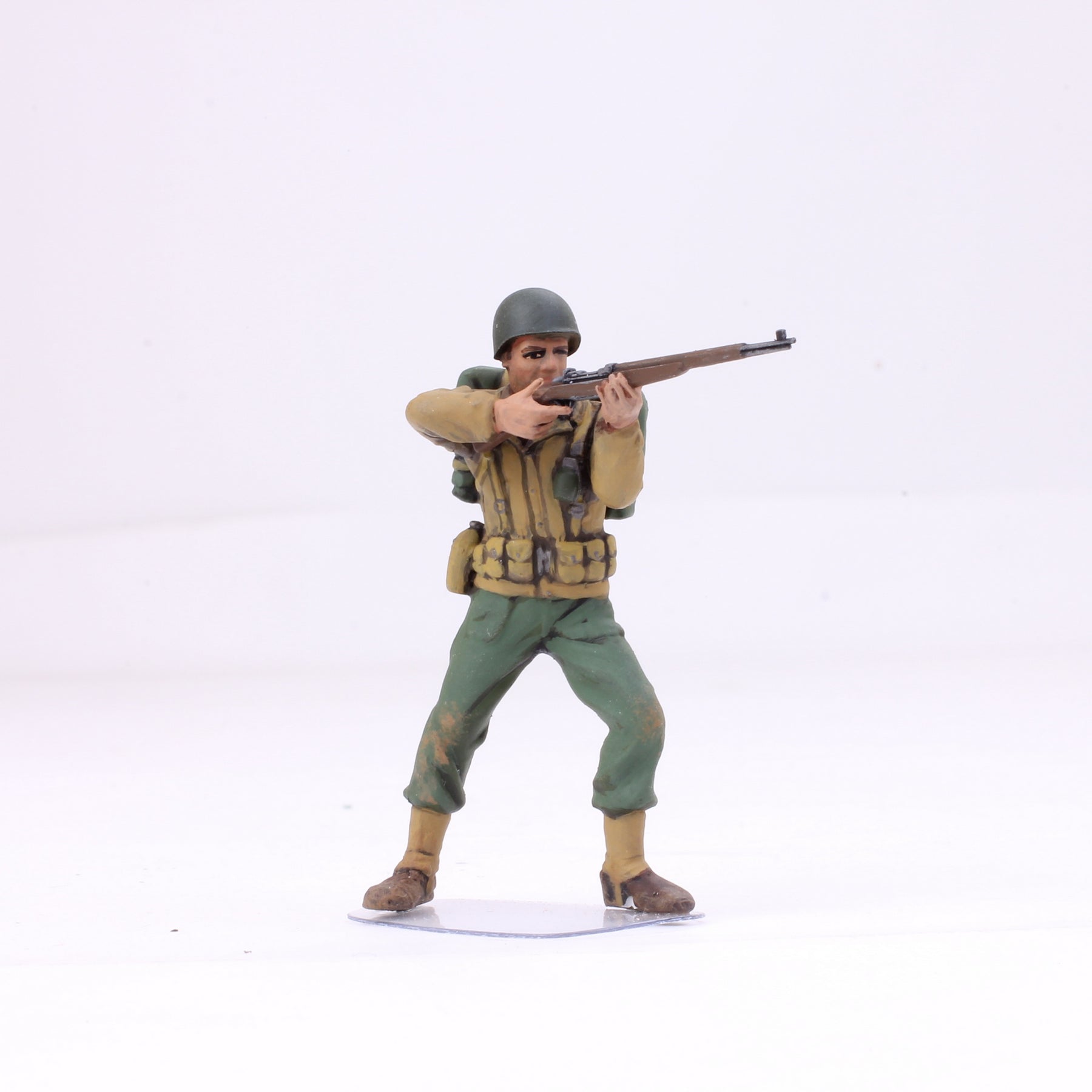 Crafted by the talented ProBuiltModel artists from the Tamiya model kit, these figures depict four US Army soldiers in a fierce fighting posture in the midst of battle. The true-to-life colors and intricate details of the uniforms, gear, and faces bring an unparalleled level of authenticity to your collection.