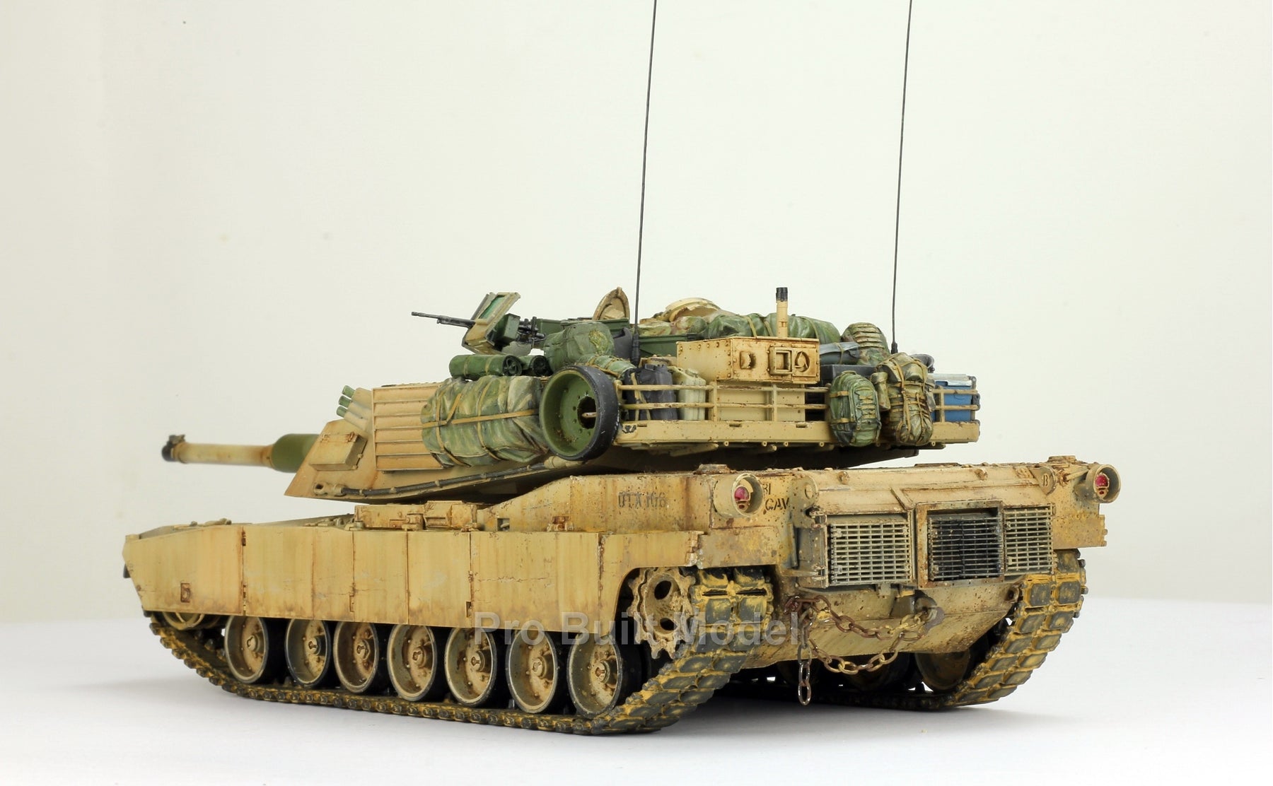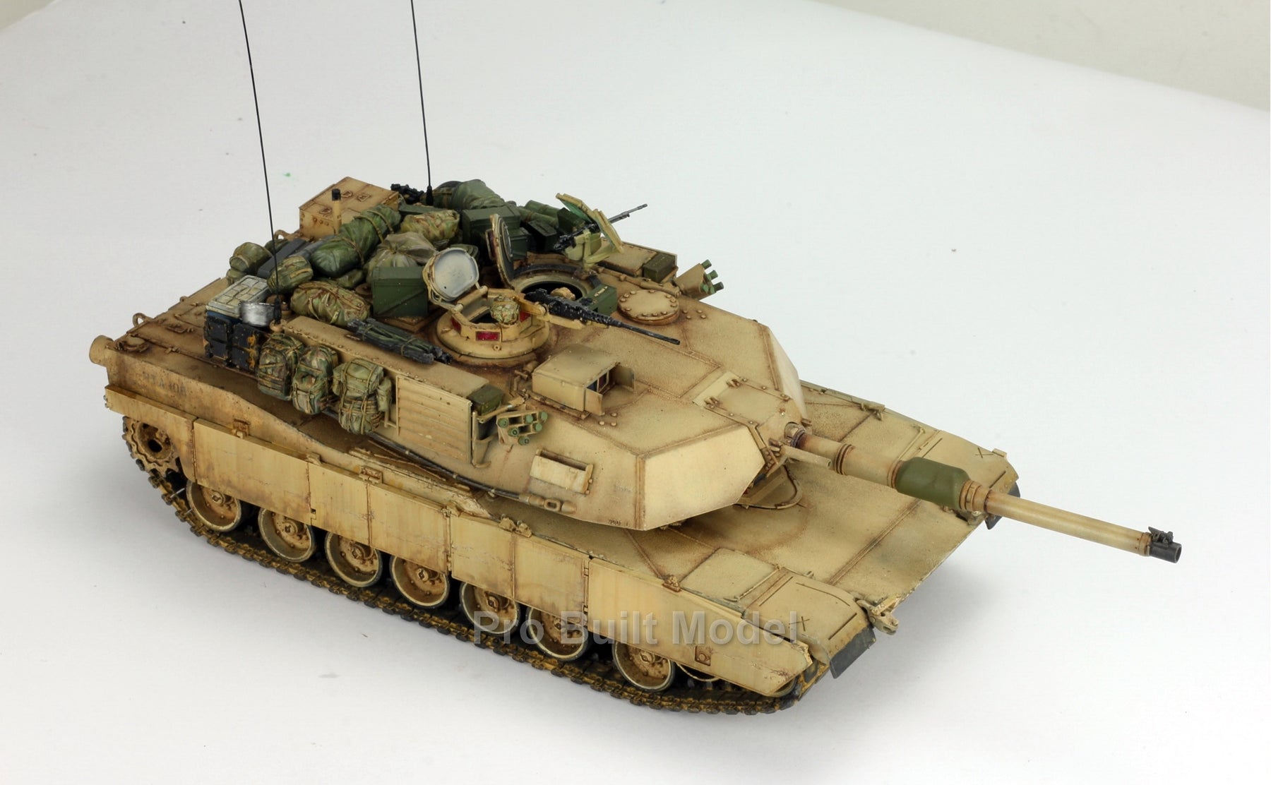 Experience the power and realism of modern armored warfare with this 1/35 scale M1A2 Abrams main battle tank, masterfully hand-painted and weathered by ProBuilt Model. Based on the Tamiya kit, this build authentically recreates the look of U.S. Army armor during Operation Iraqi Freedom (2003), complete with desert camouflage and combat gear.