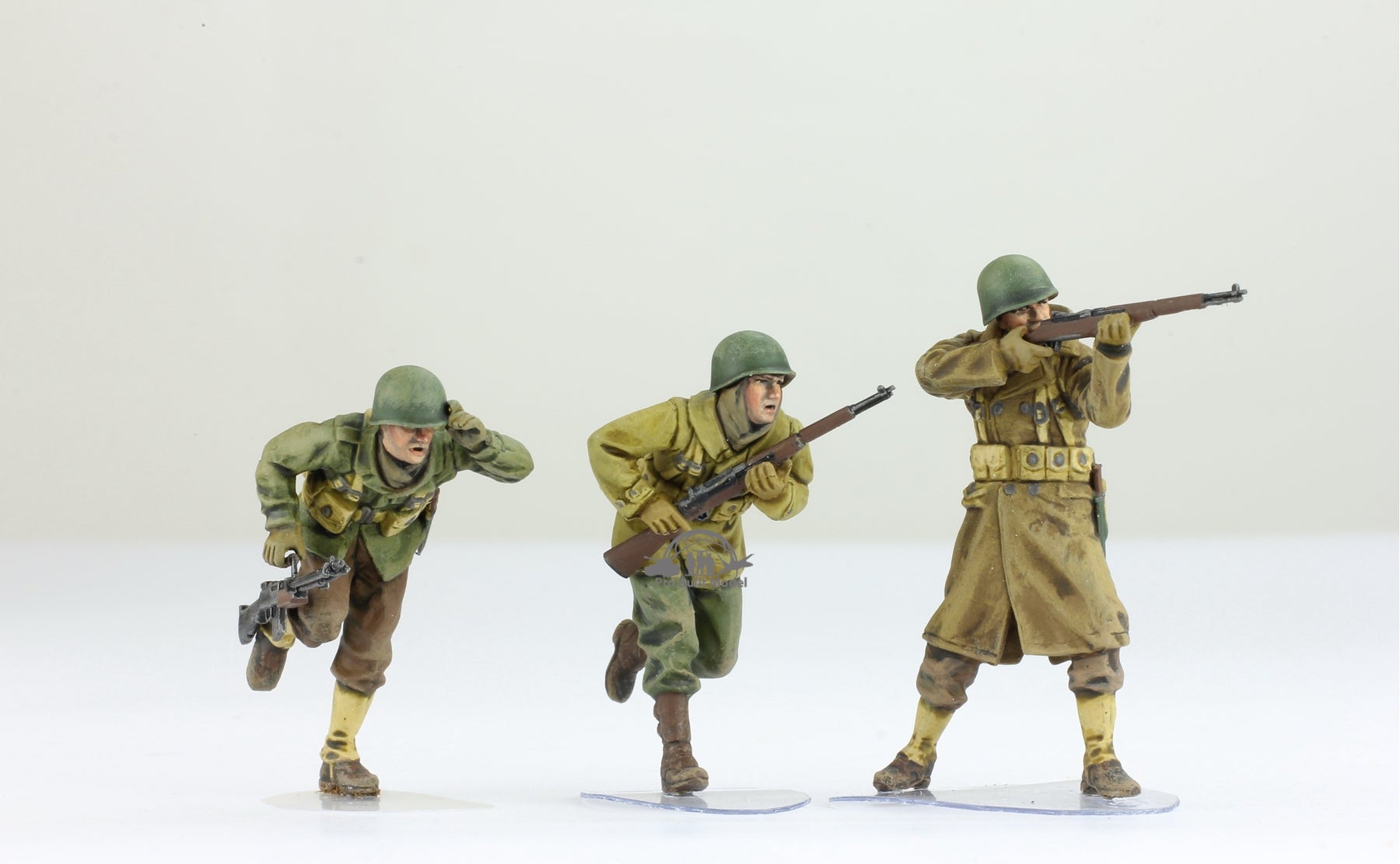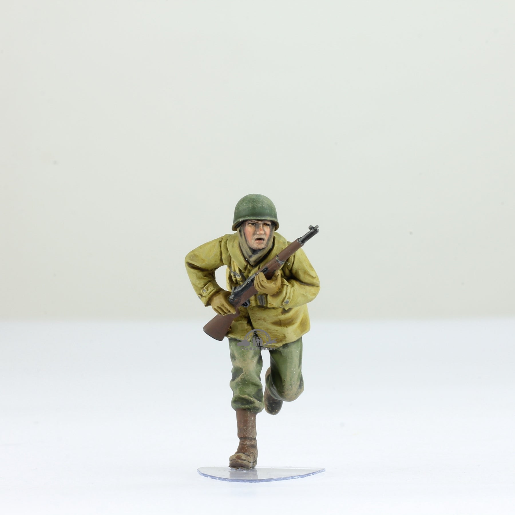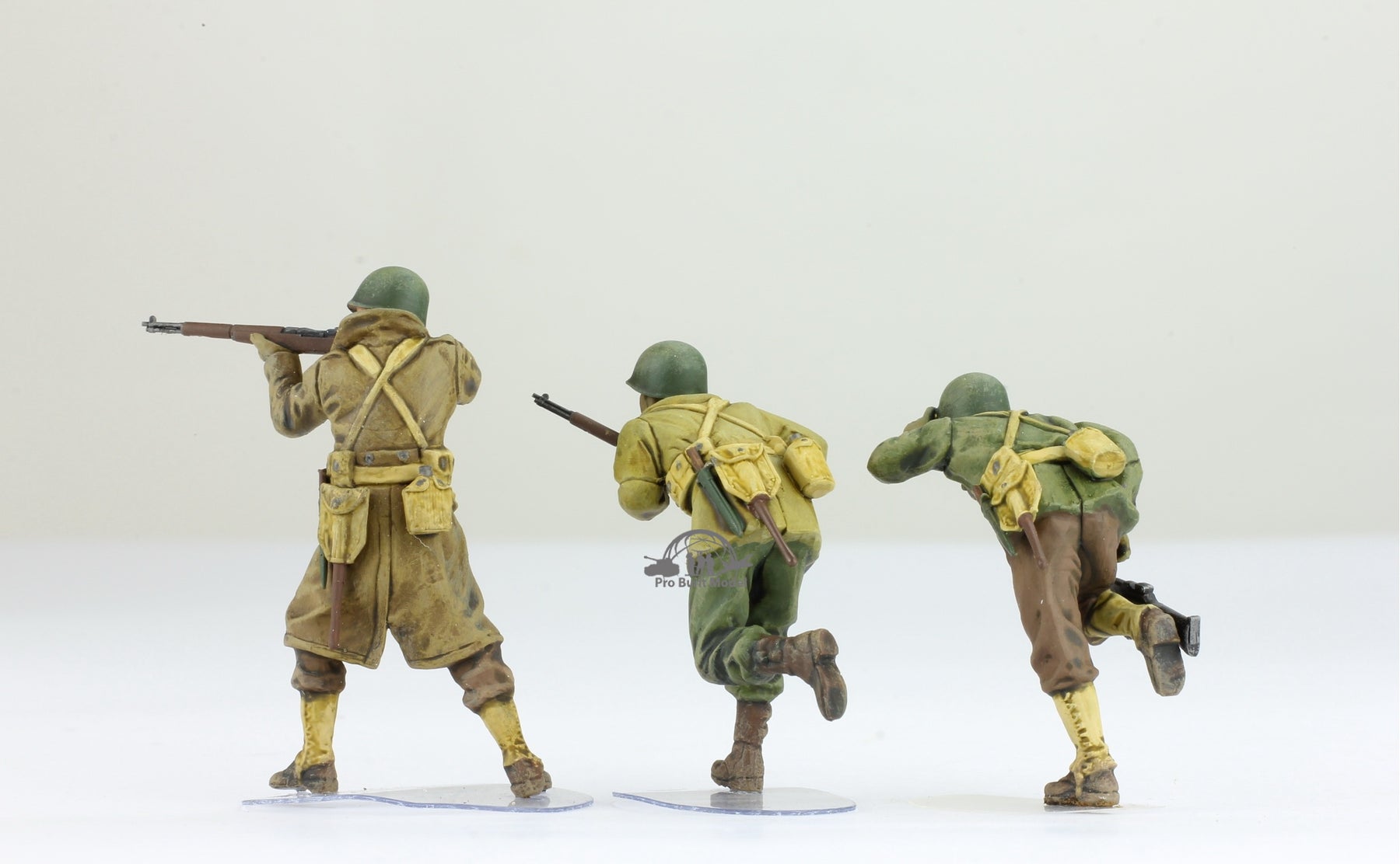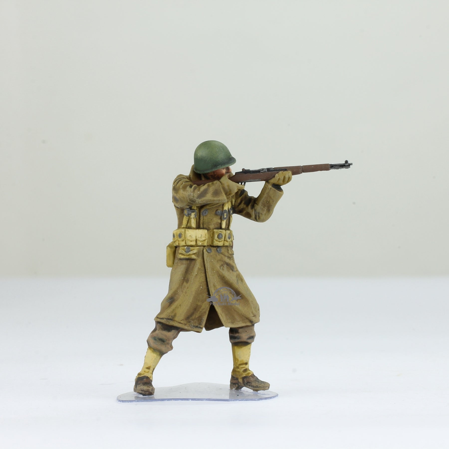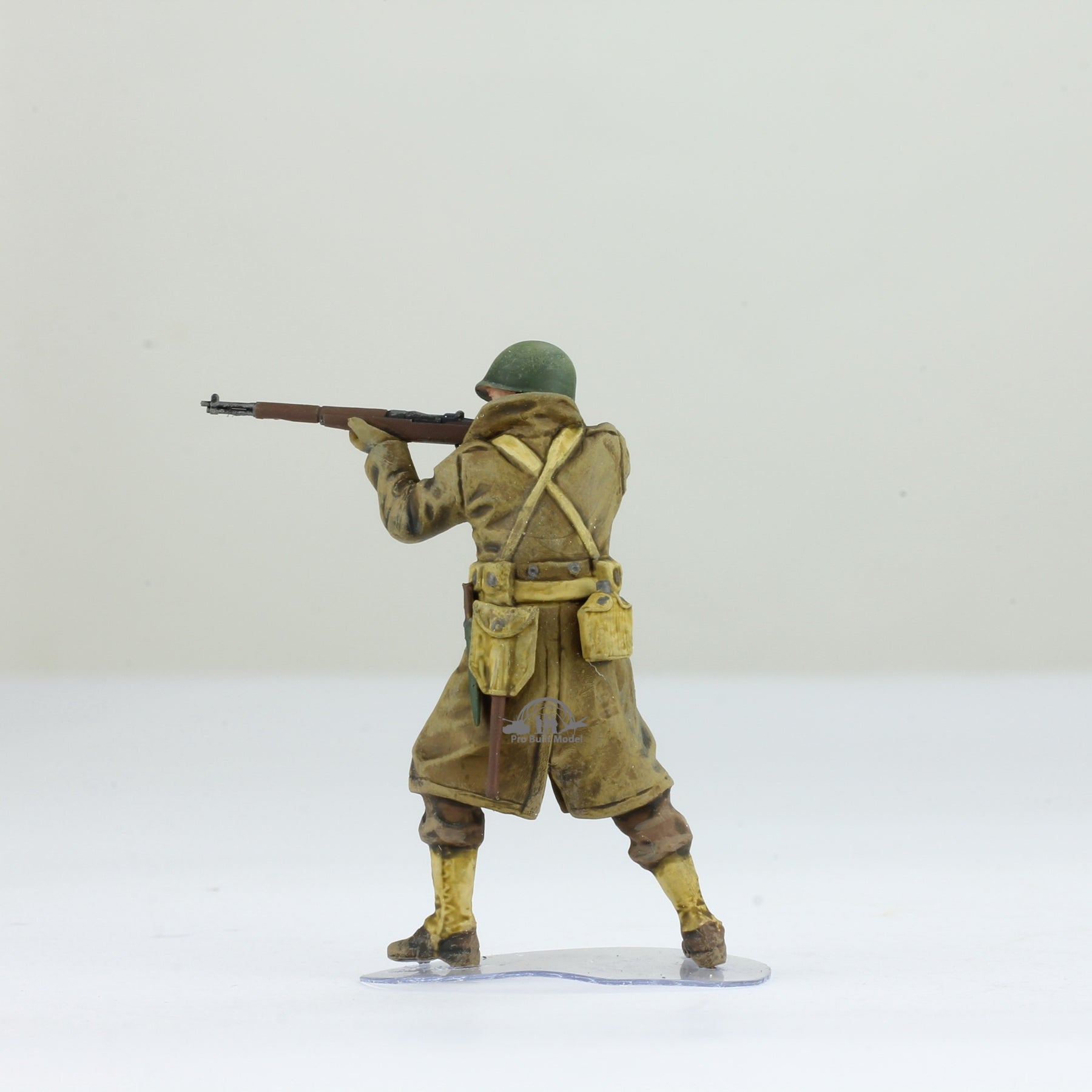 Capture the intensity of the European winter campaigns of World War II with this set of 3 professionally painted 1:35 scale US Infantry figures. Each miniature is hand-painted with lifelike details, showcasing the bravery and determination of American soldiers on the front lines.