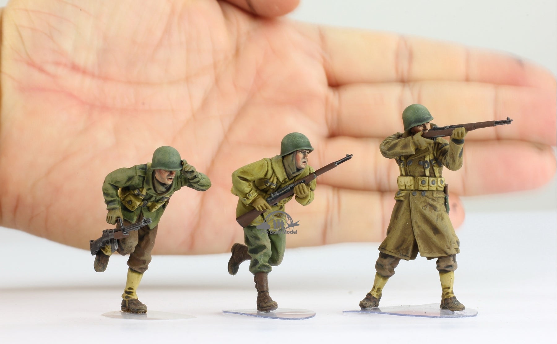 Dynamic Poses: Includes figures in combat-ready stances – advancing under fire, charging forward, and aiming in position.