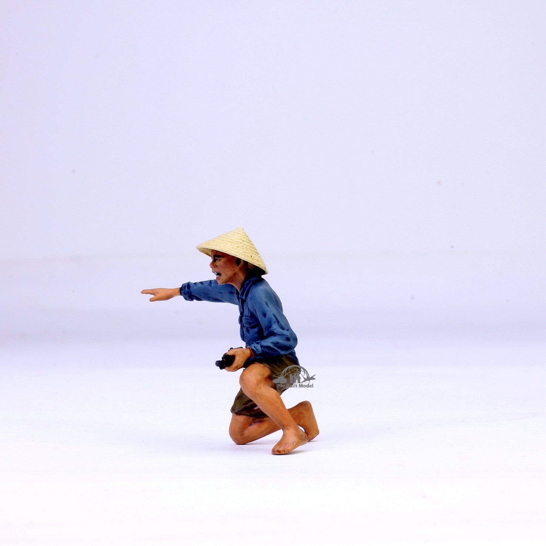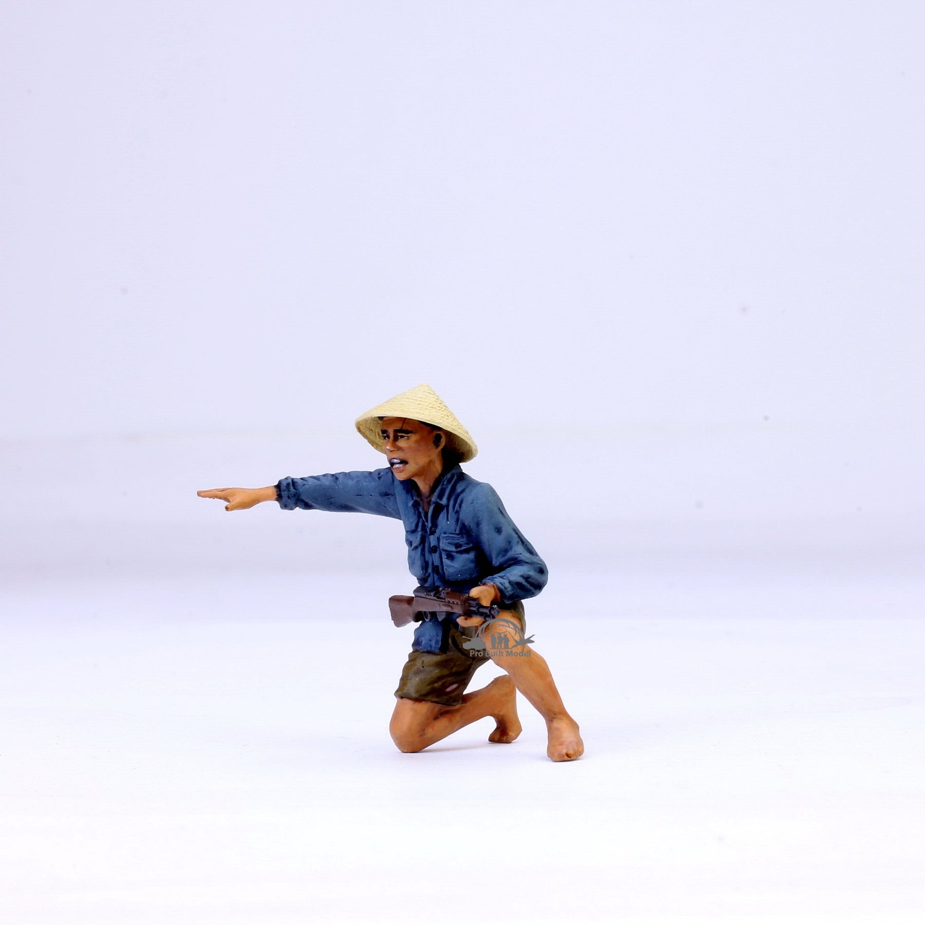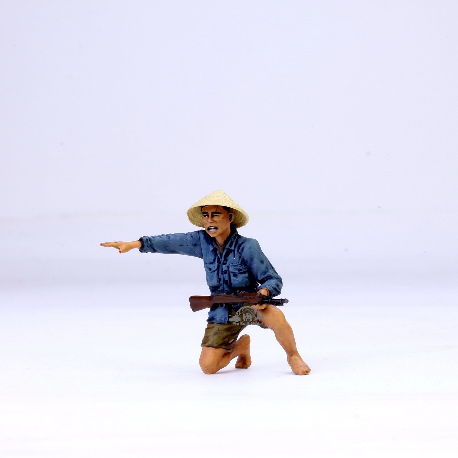 Add realism to your Vietnam War collection with this 1:35 scale pro-painted Vietcong soldier figure. Handcrafted and professionally detailed, this miniature captures a guerrilla fighter in a crouched battle stance, armed with a rifle and wearing a traditional conical hat. His outstretched arm and expressive face bring action and storytelling to any diorama or display.