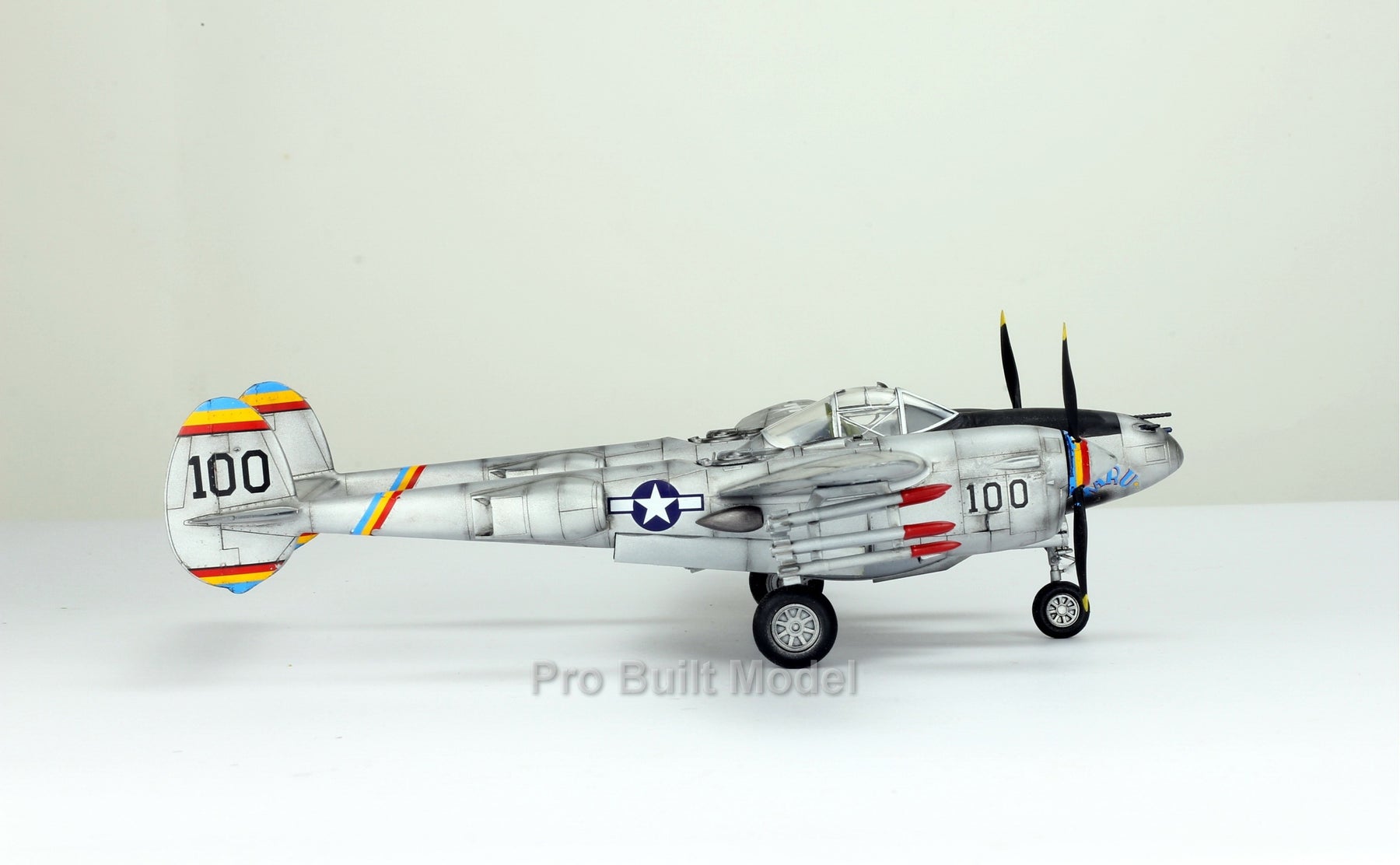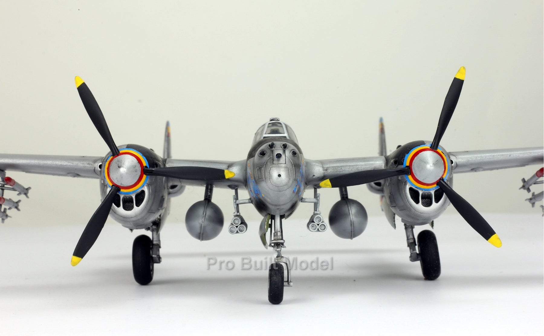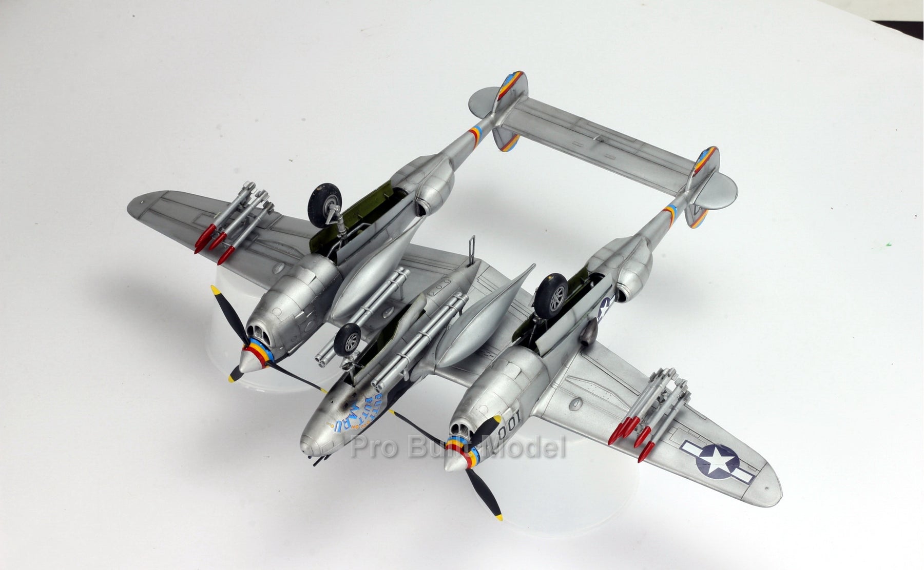• 🔹 Paint & Decal Details: Custom nose art, dual propellers with color bands, rocket pods & mission markings