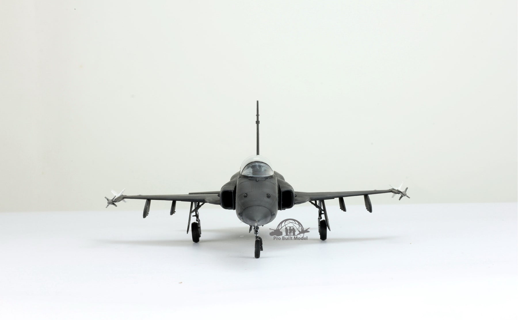 Each aircraft is individually airbrushed and weathered to enhance surface depth and realism — showing subtle shading, panel definition, and metallic exhaust detailing. The cockpit canopy, landing gear, and missile loadouts are meticulously painted for a museum-quality finish.