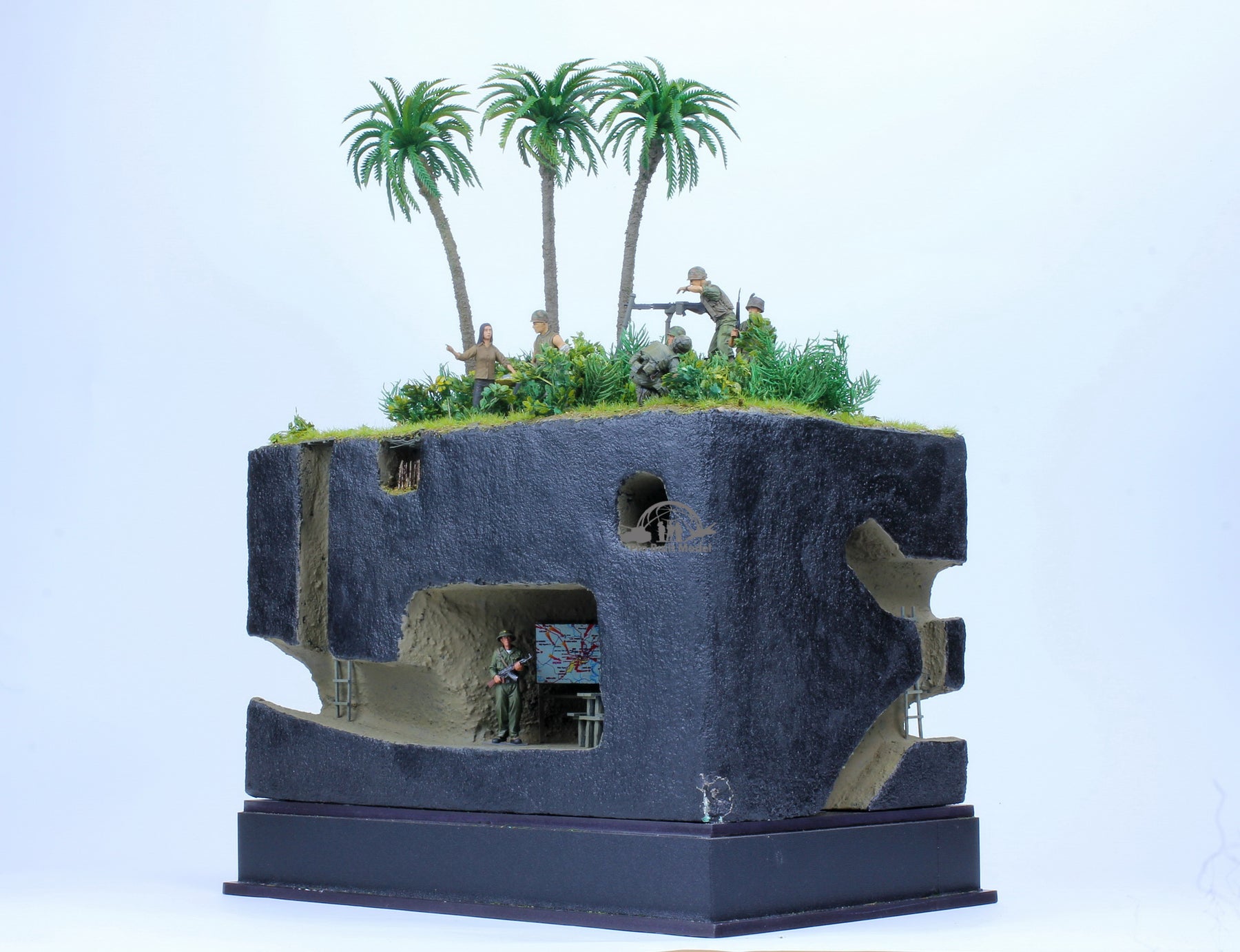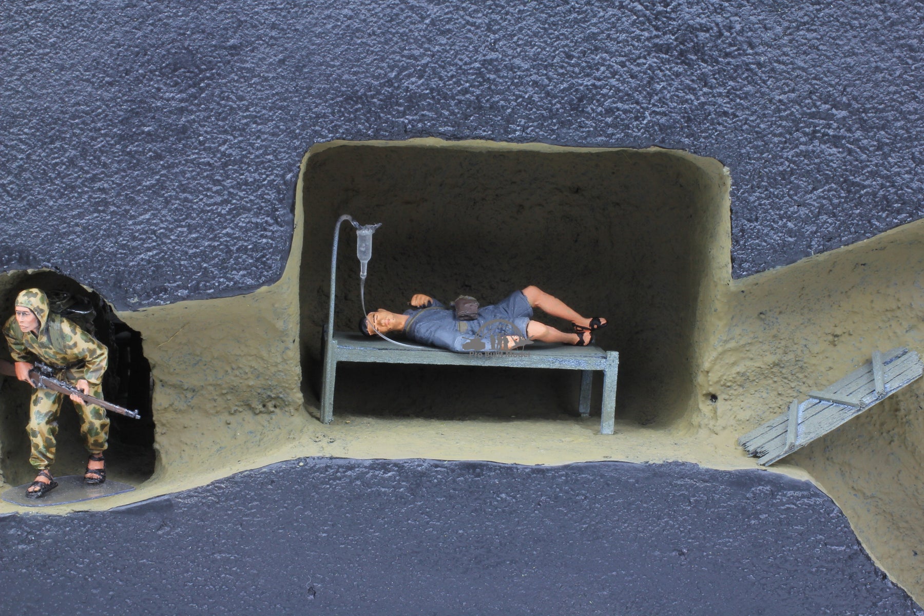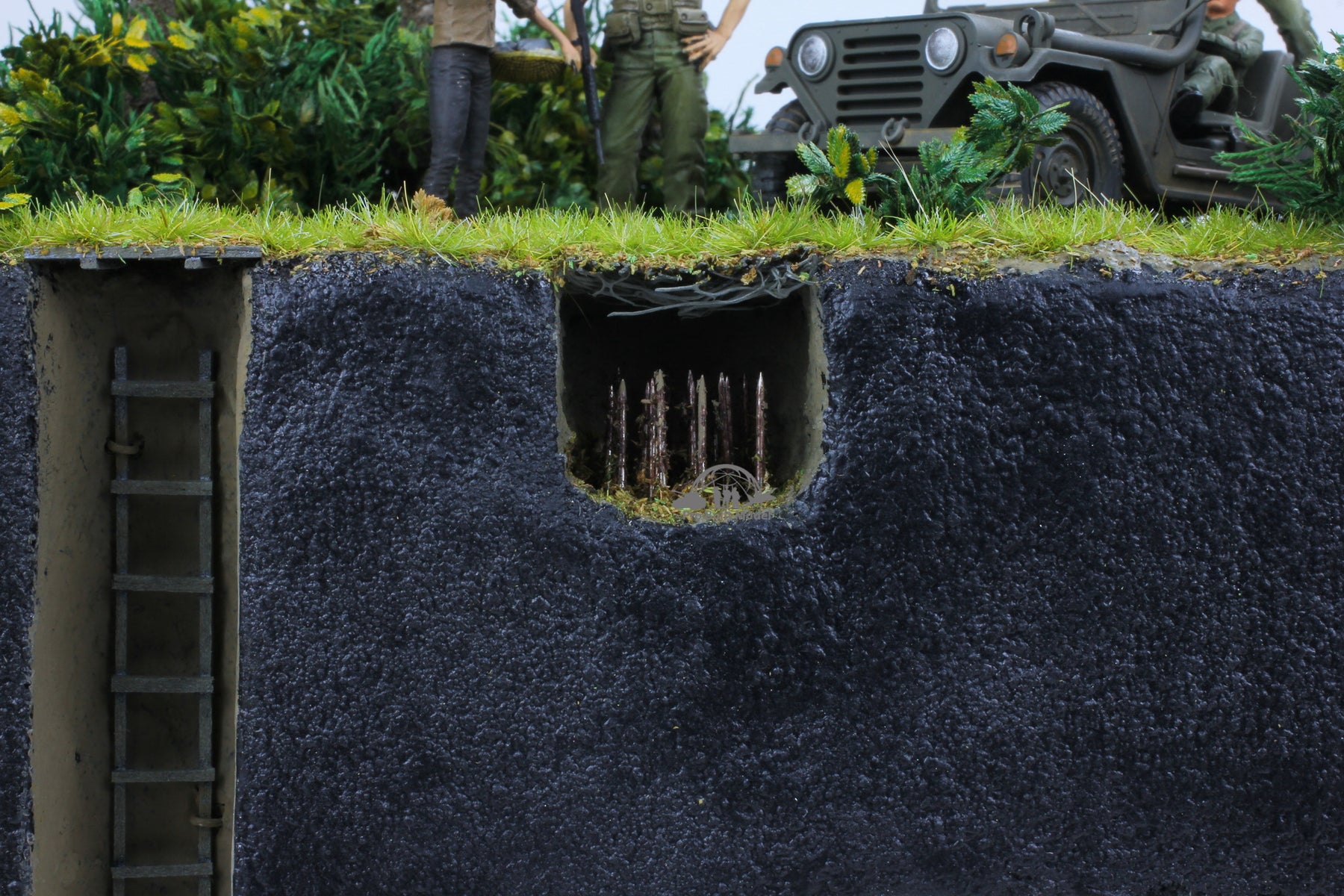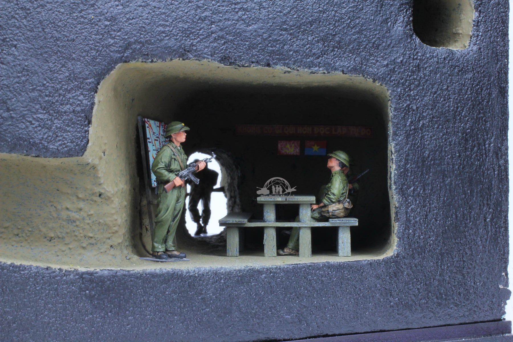 This diorama recreates a U.S. Army patrol discovering and clearing a hidden tunnel system in Cu Chi, complete with: