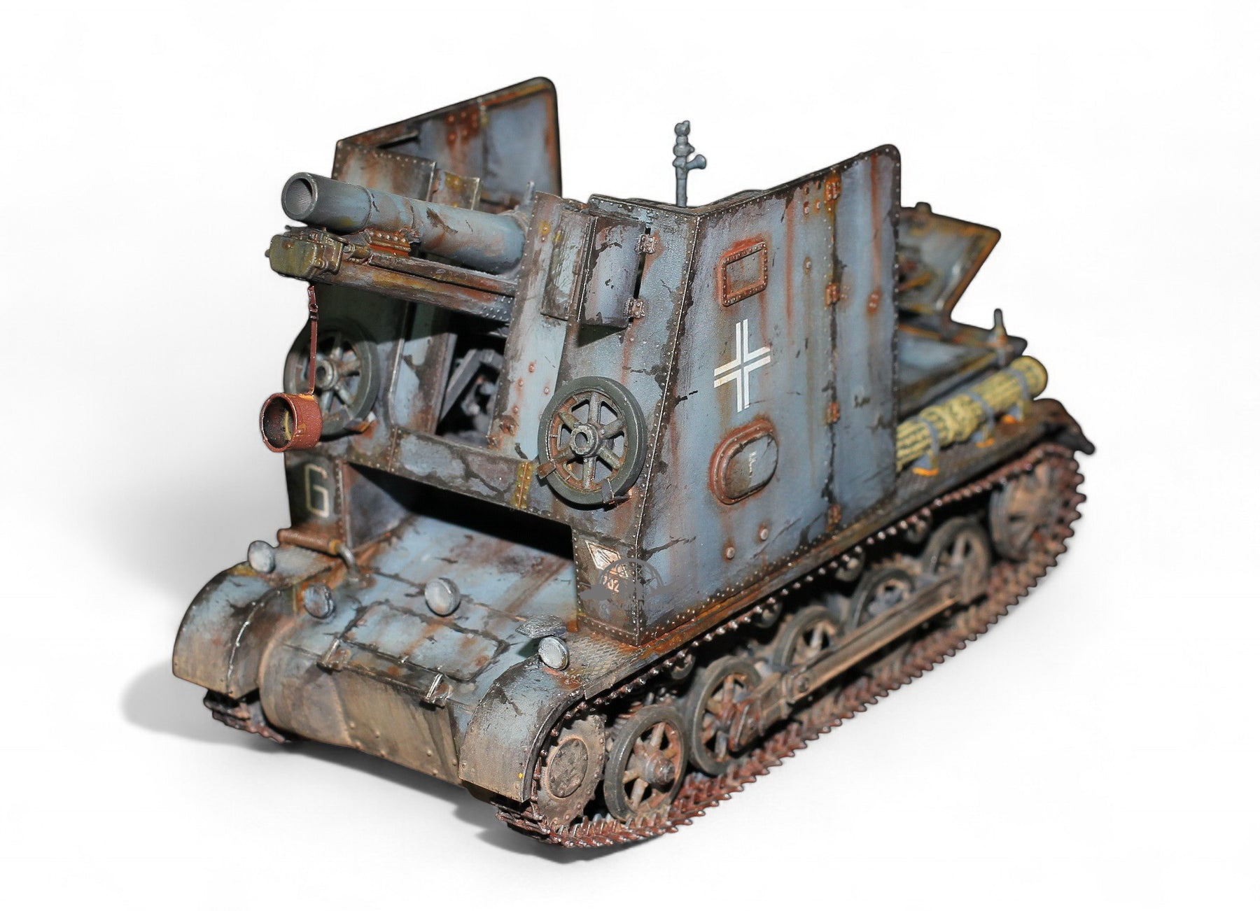 • Authentic Details: Features the iconic sIG 33 150mm infantry gun mounted on the Panzer I chassis, with open fighting compartment, detailed gun breech, ammo stowage, and battle-worn textures.