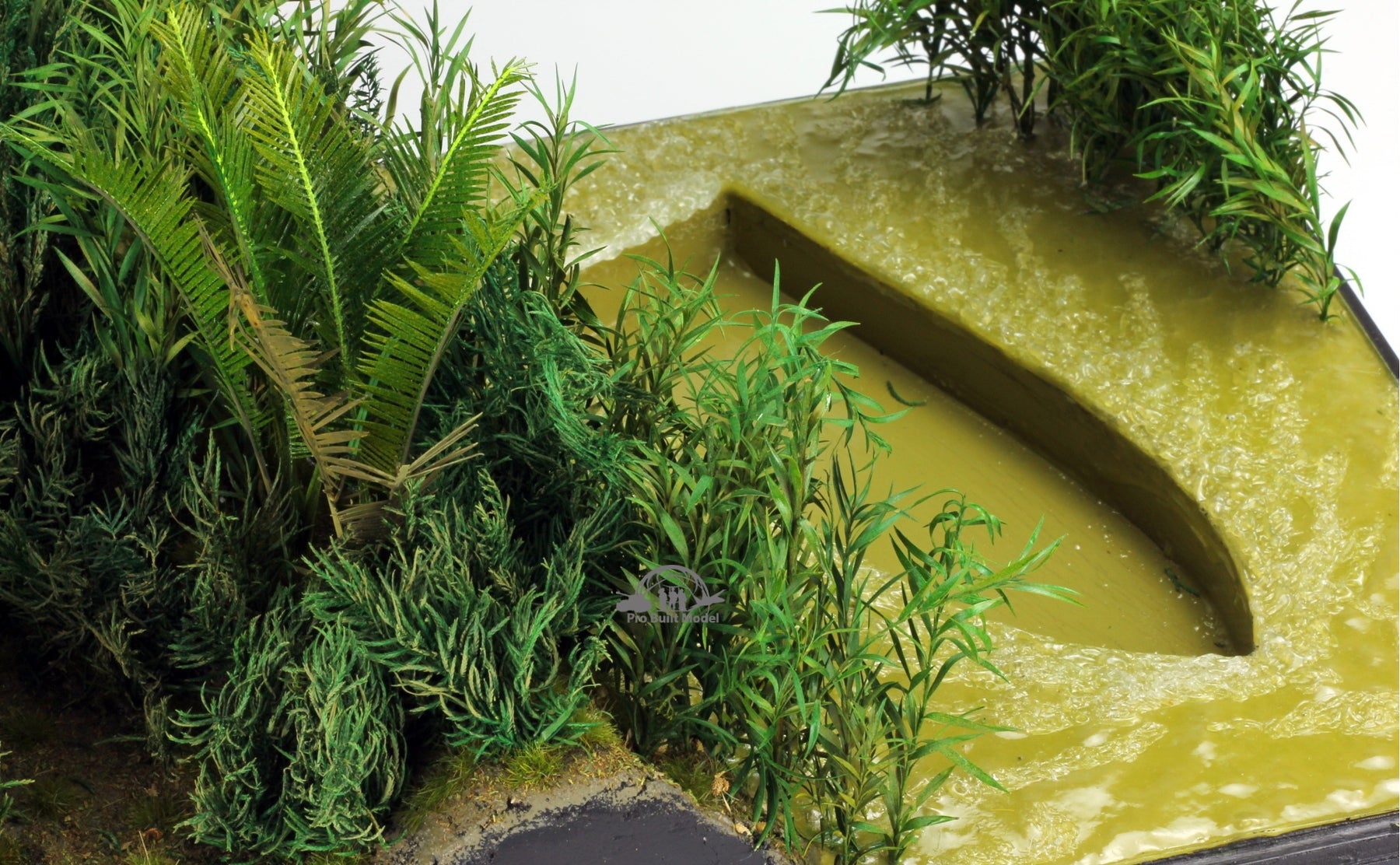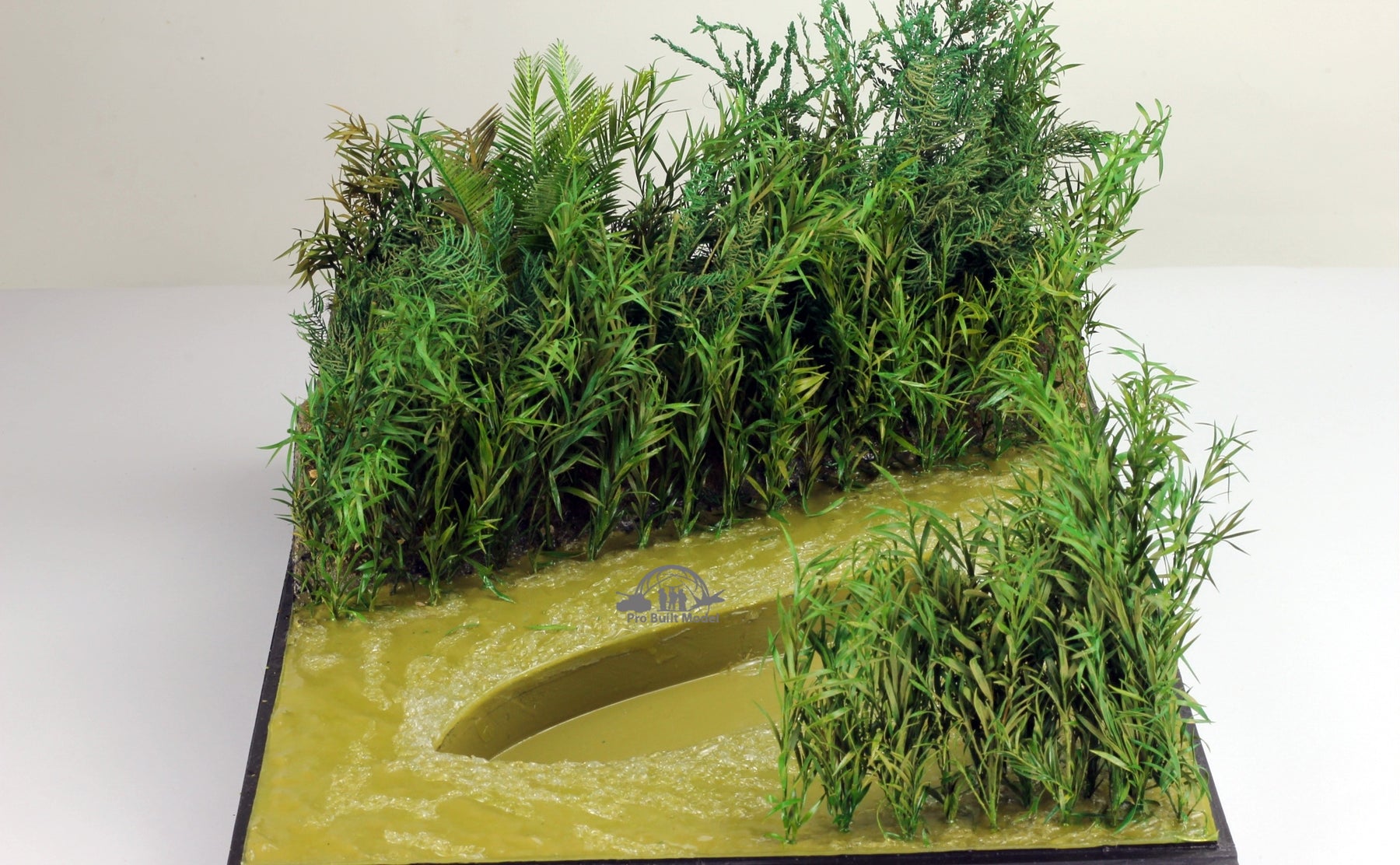 This river-jungle diorama is built with realistic resin water effects, hand-painted muddy waves, and carefully sculpted riverbanks. The base includes a custom recessed hull slot sized for the LSSC, ensuring a secure and natural display that enhances the model’s authenticity.