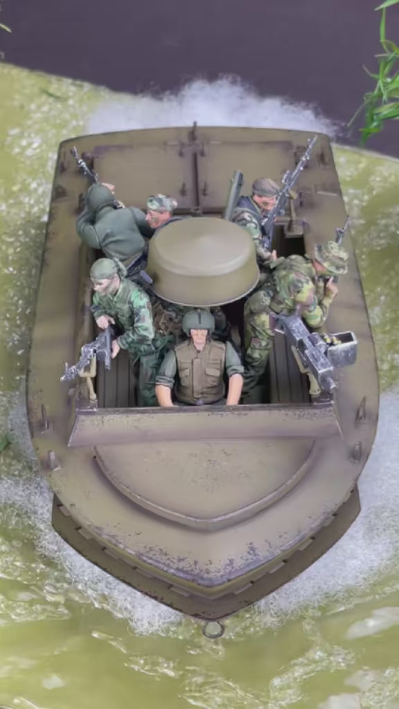 Bring the Vietnam War riverine combat to life with this PreOrder 1:35 Scratchbuilt Diorama Base, handcrafted to perfectly fit the US Navy LSSC (Light SEAL Support Craft) from the Dragon Models kit. Designed to capture the tense and atmospheric Mekong Delta setting, this base is an ideal stage for your LSSC and crew.