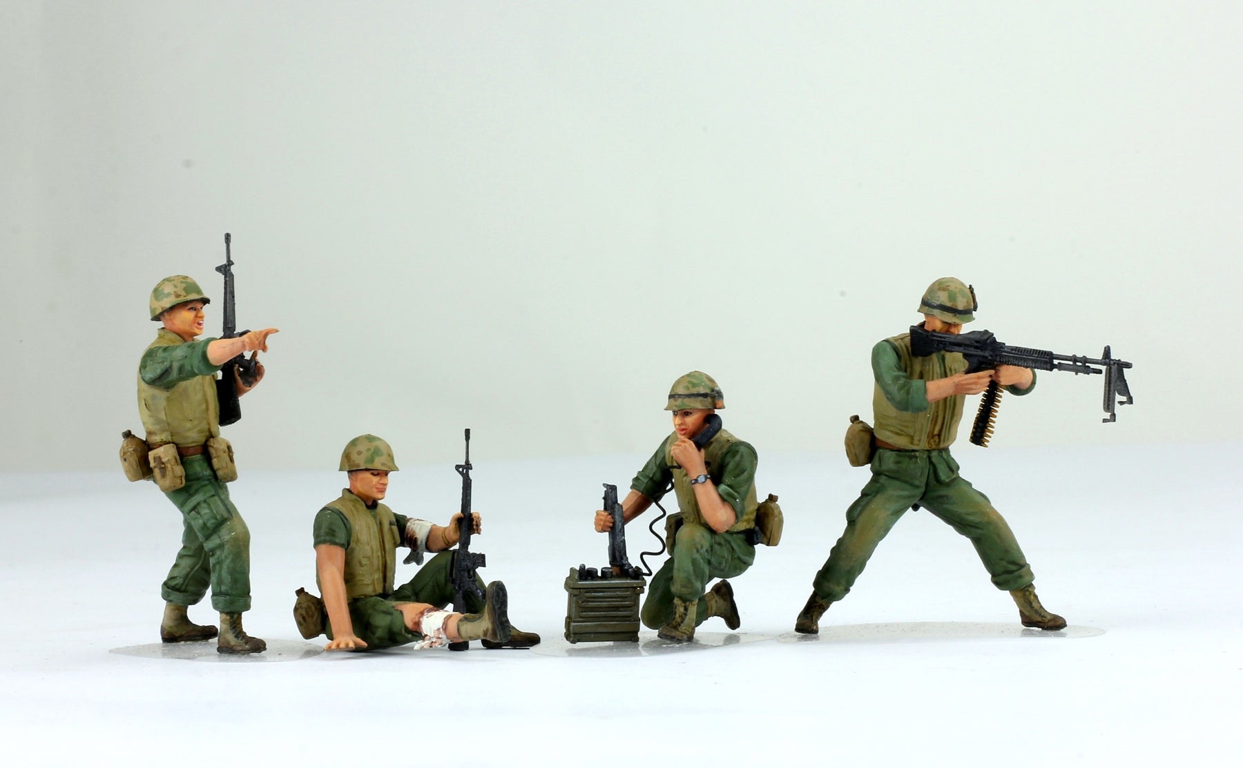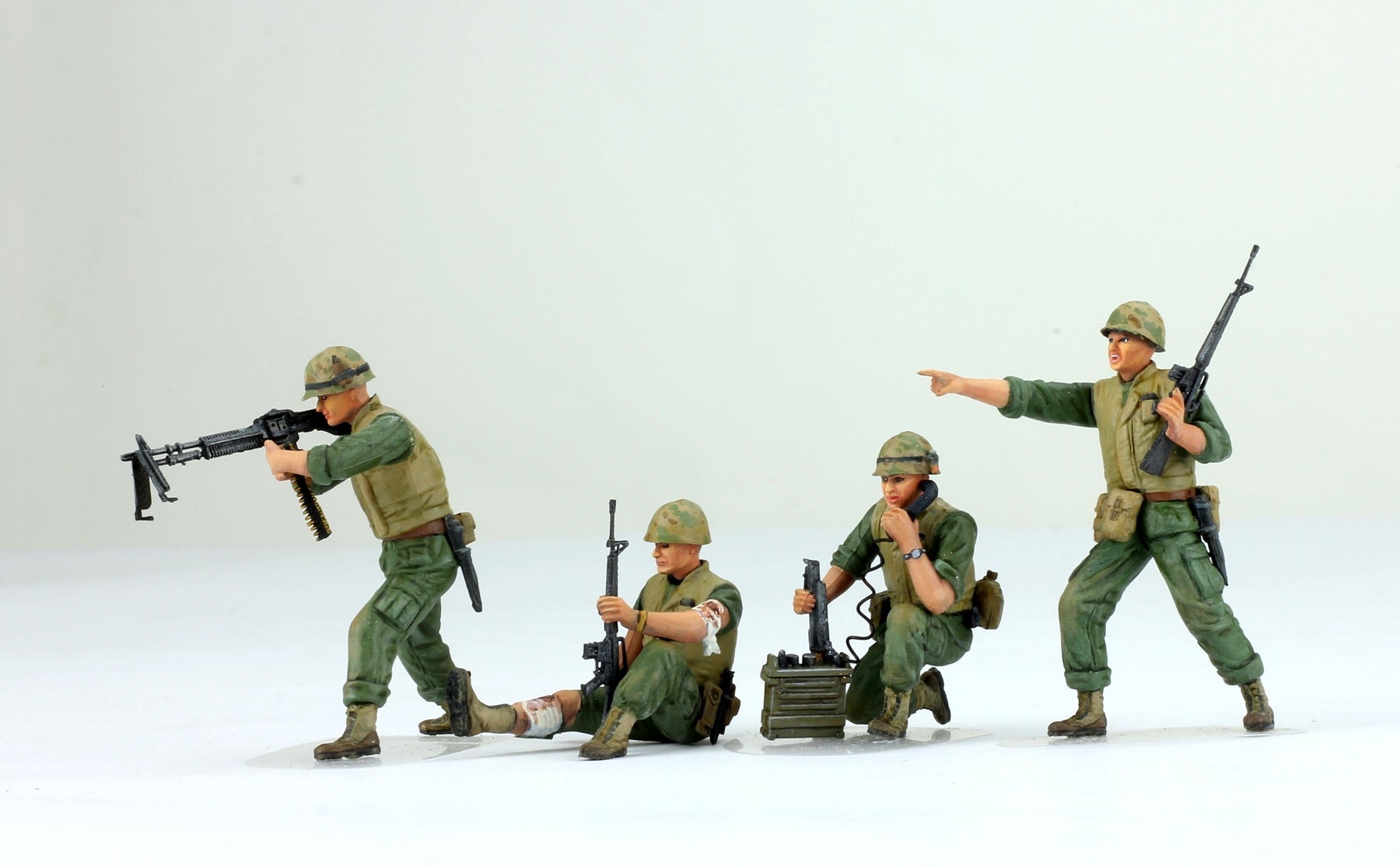 Each figure is expertly hand-painted with historically accurate US Marine Corps Vietnam War uniforms and realistic combat weathering — perfect for collectors, modelers, and diorama builders.