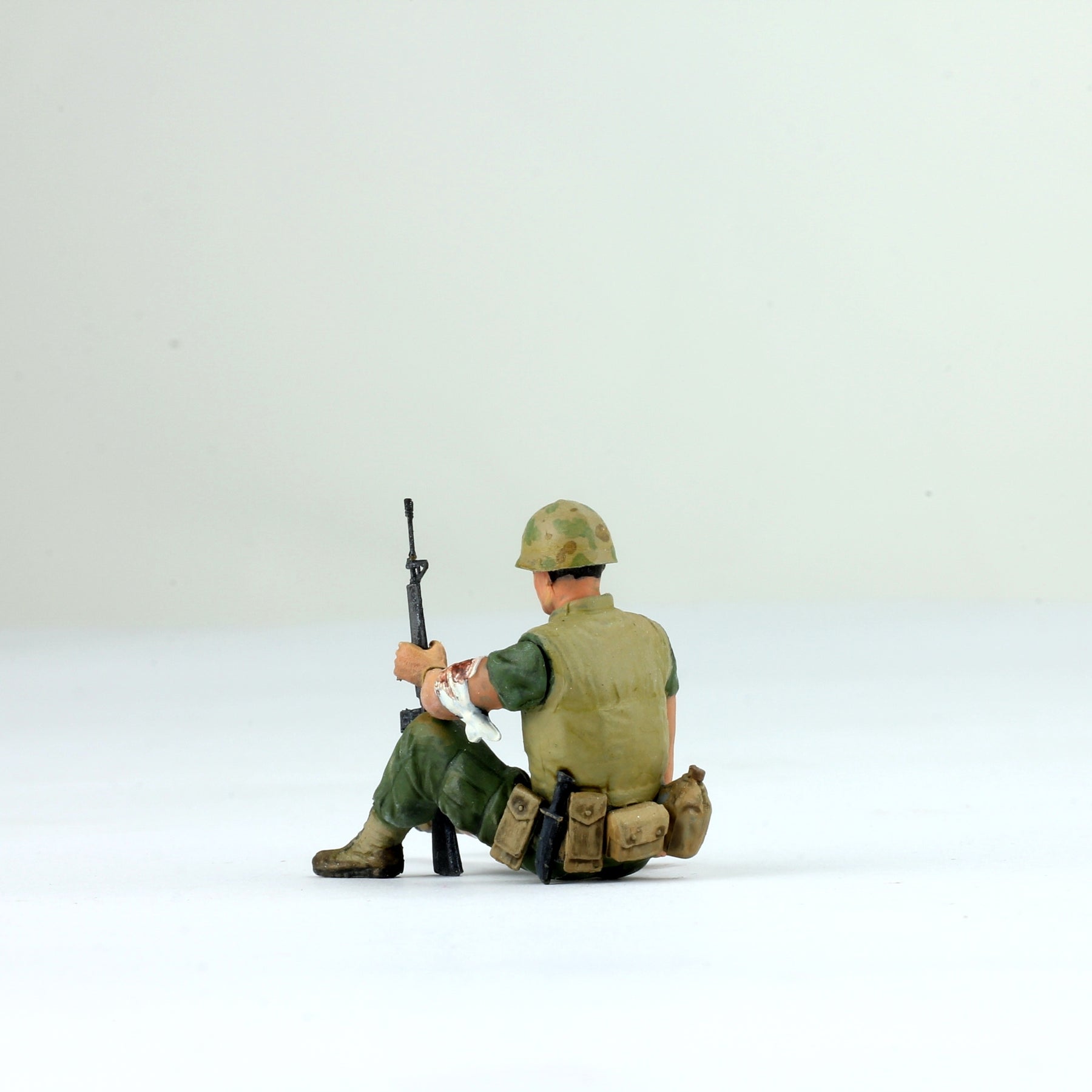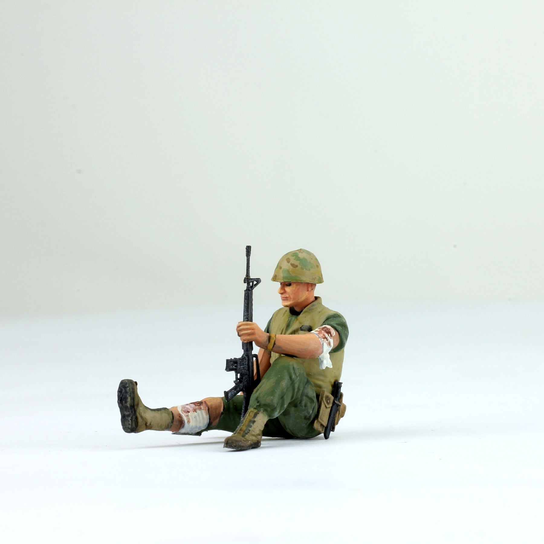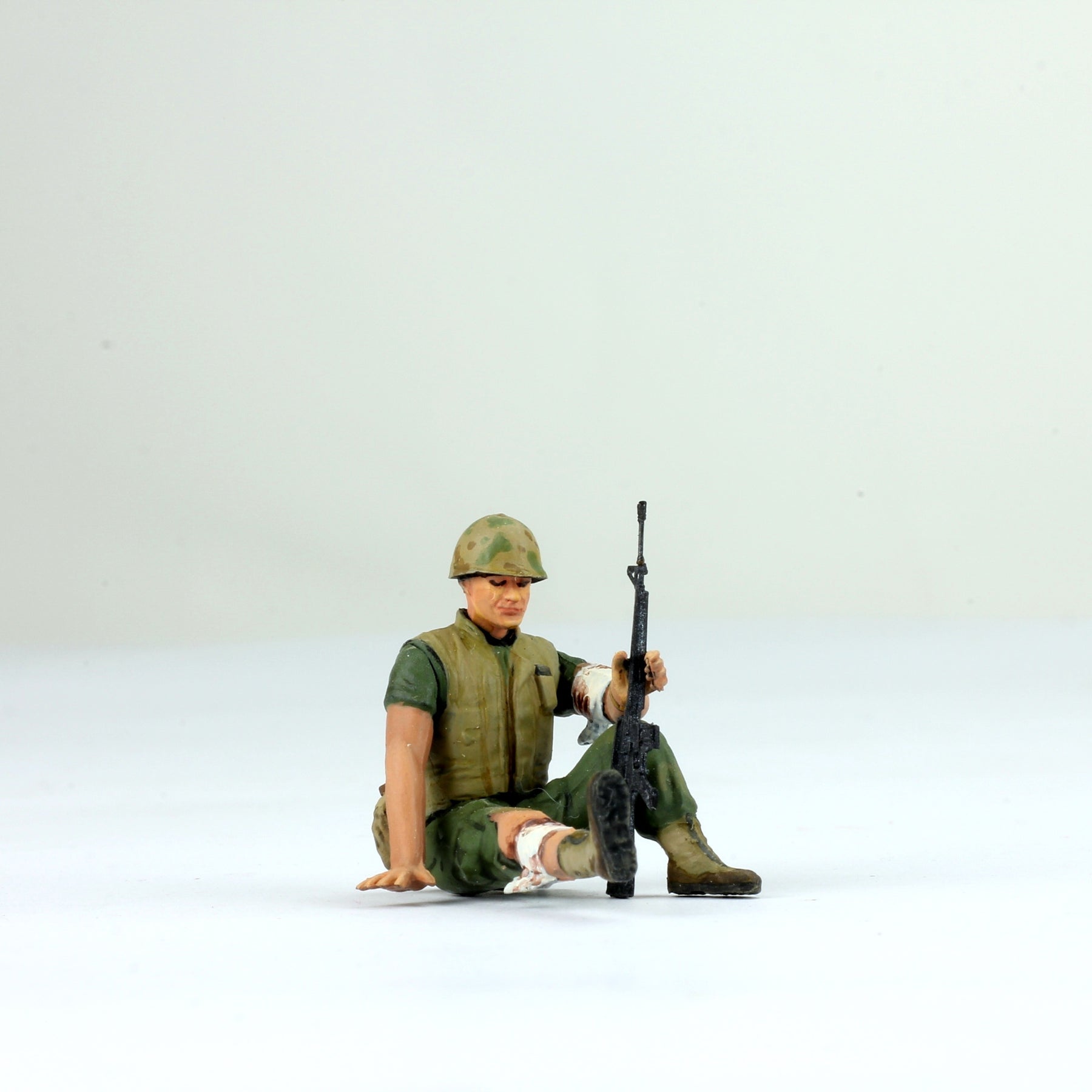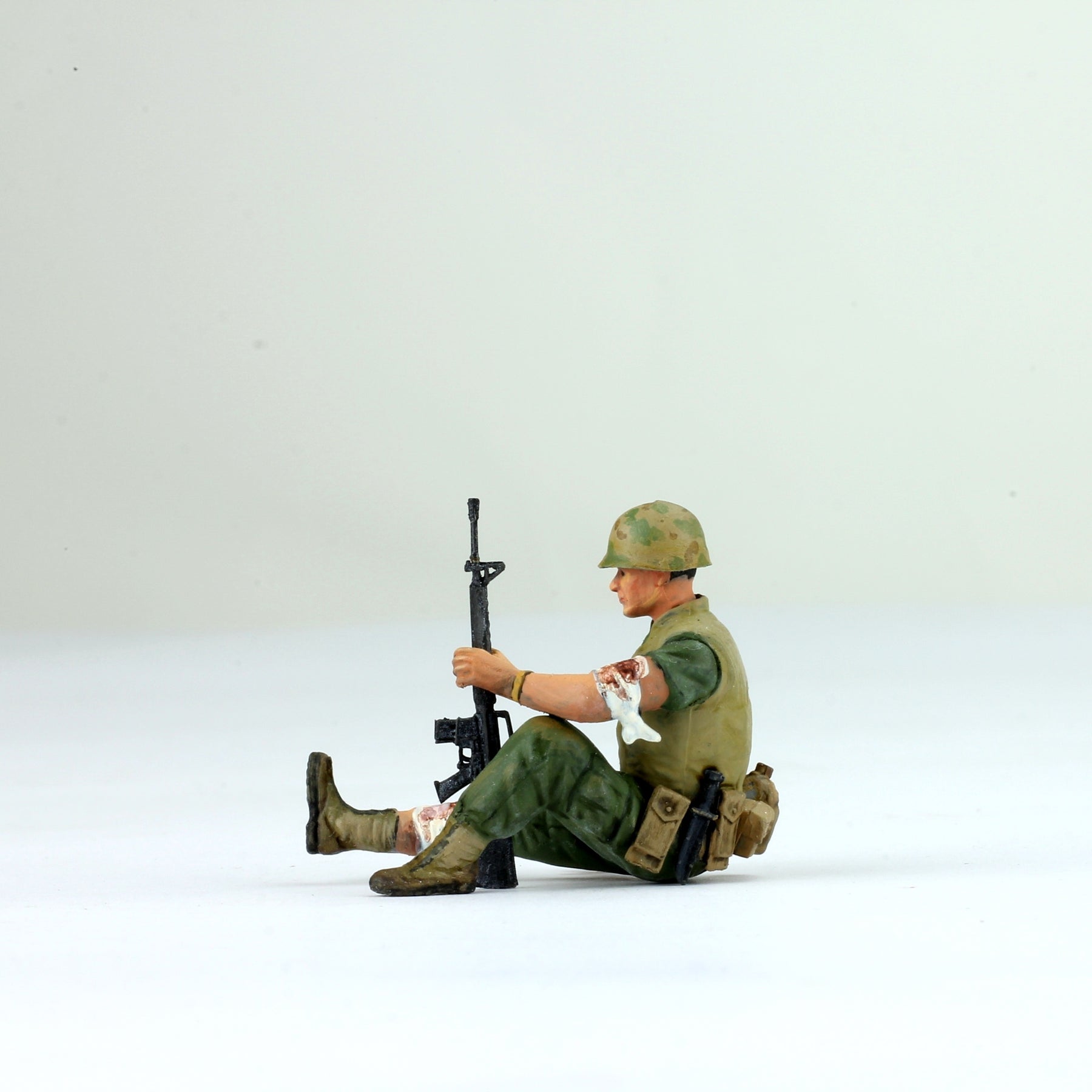 Every detail — from the faded jungle fatigues, web gear, and bandages to the weathered weapons — adds authenticity and storytelling to your Vietnam War diorama.