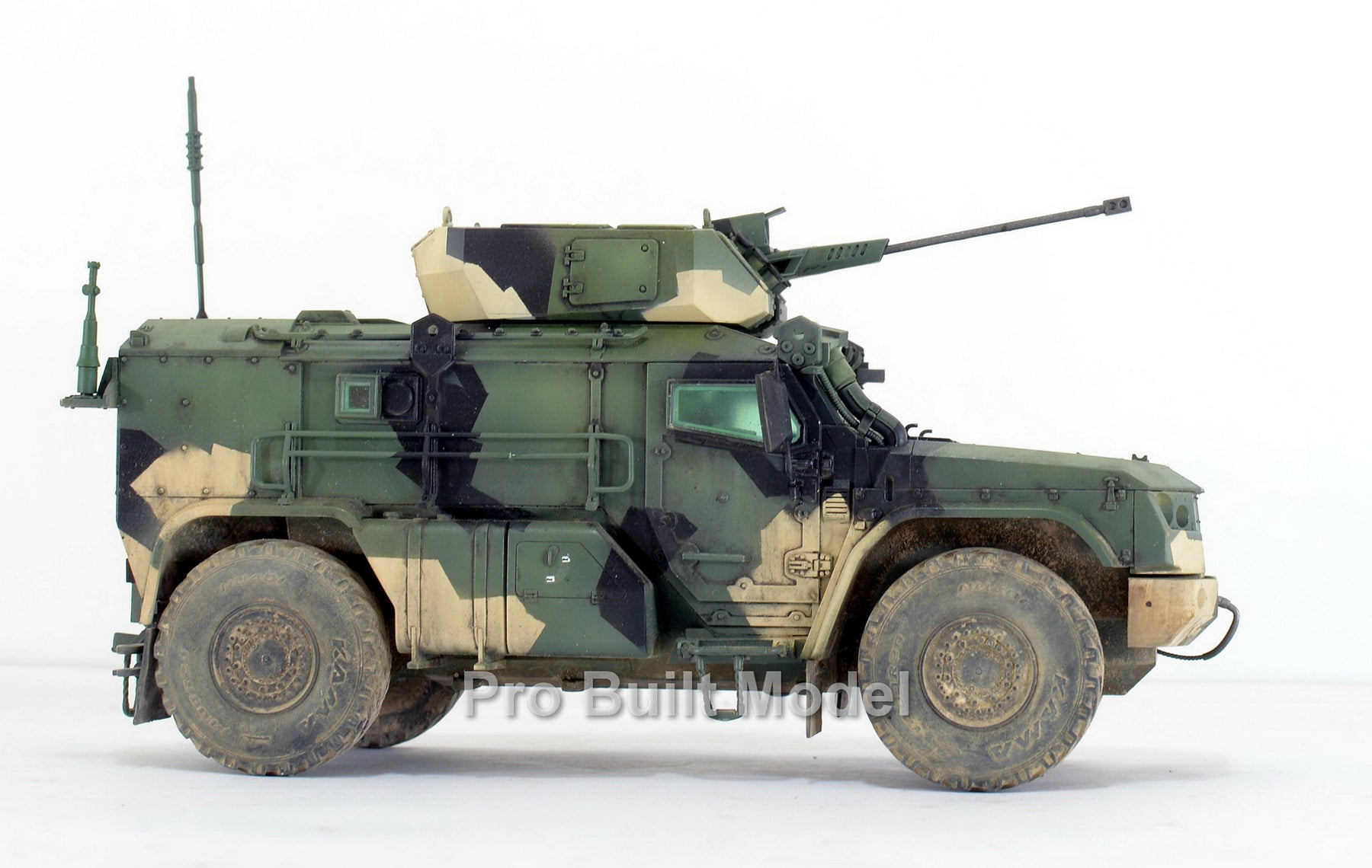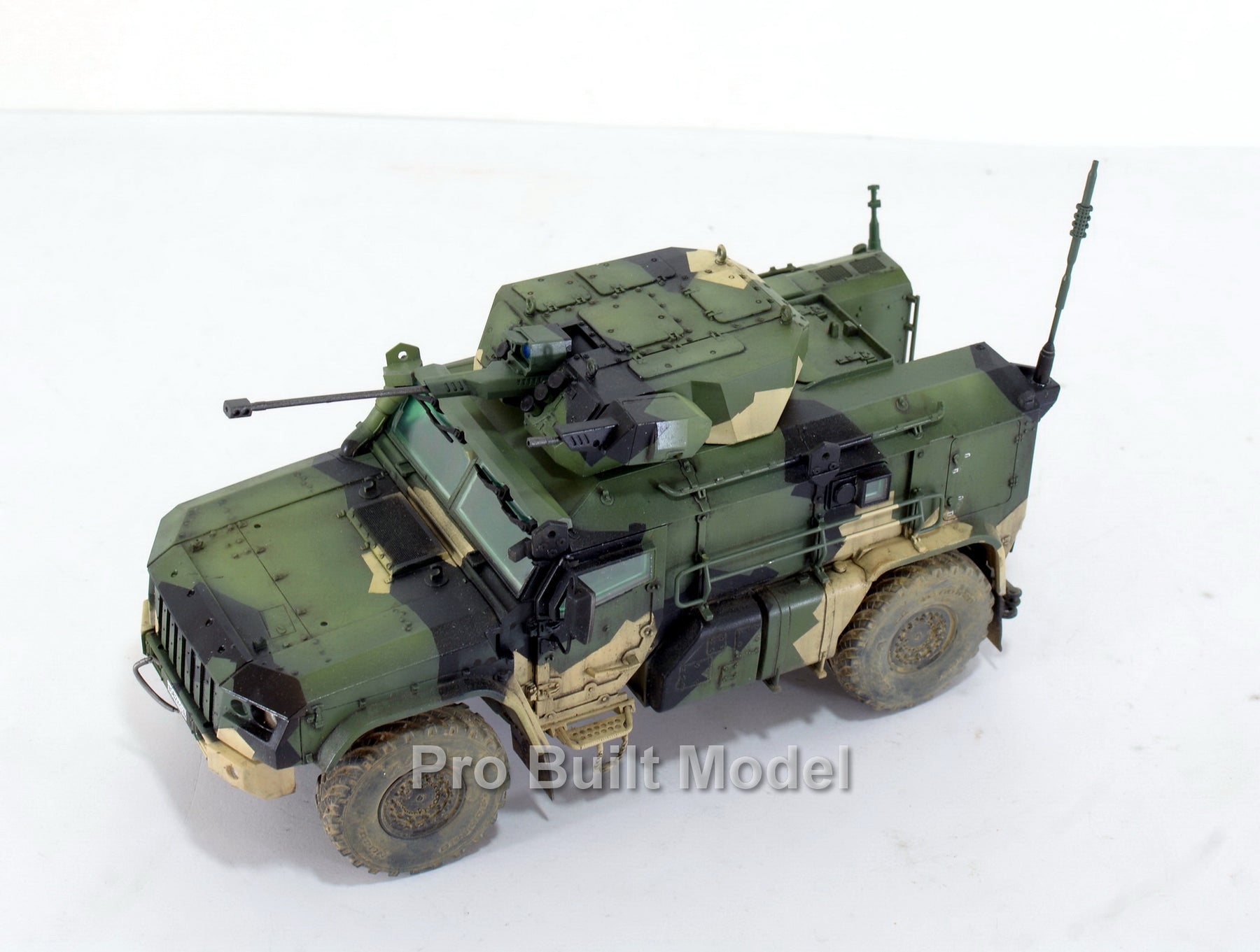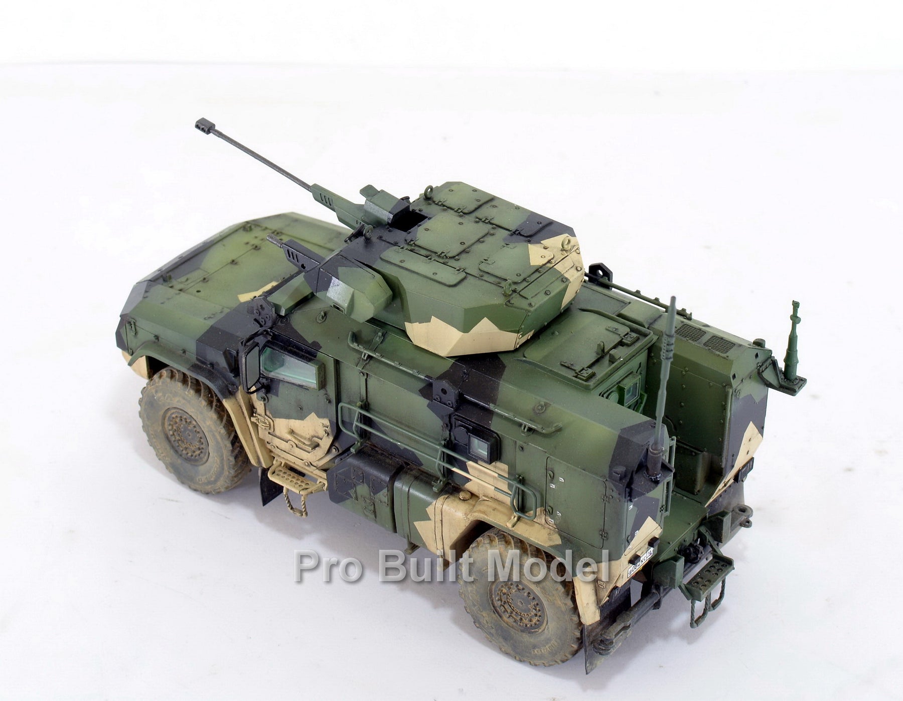 This model is carefully assembled, painted, and weathered to replicate realistic operational conditions. The camouflage pattern, dust effects, and subtle detailing bring the vehicle to life, making it an excellent display piece for collectors of modern military vehicles and scale model enthusiasts.