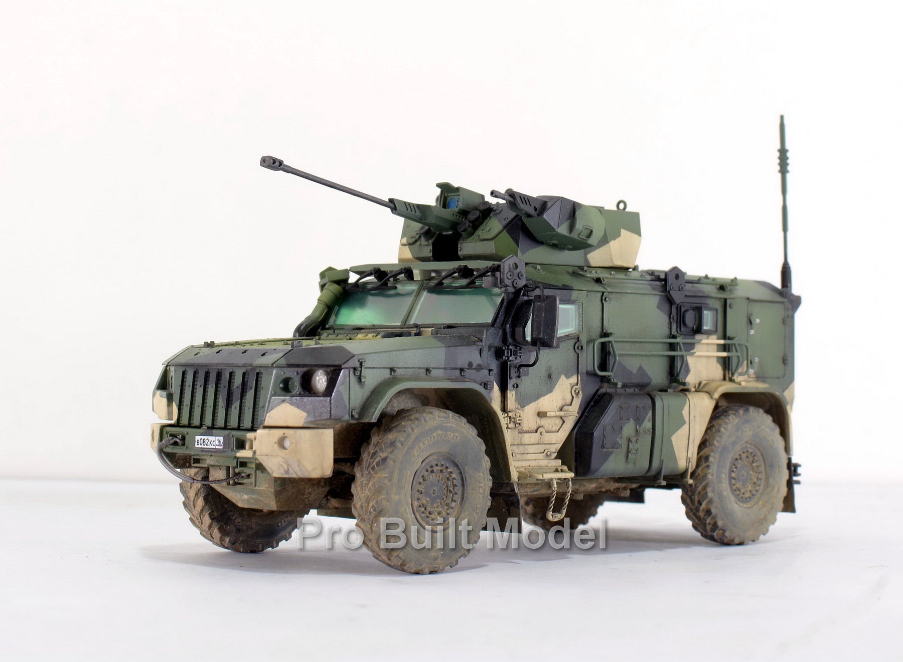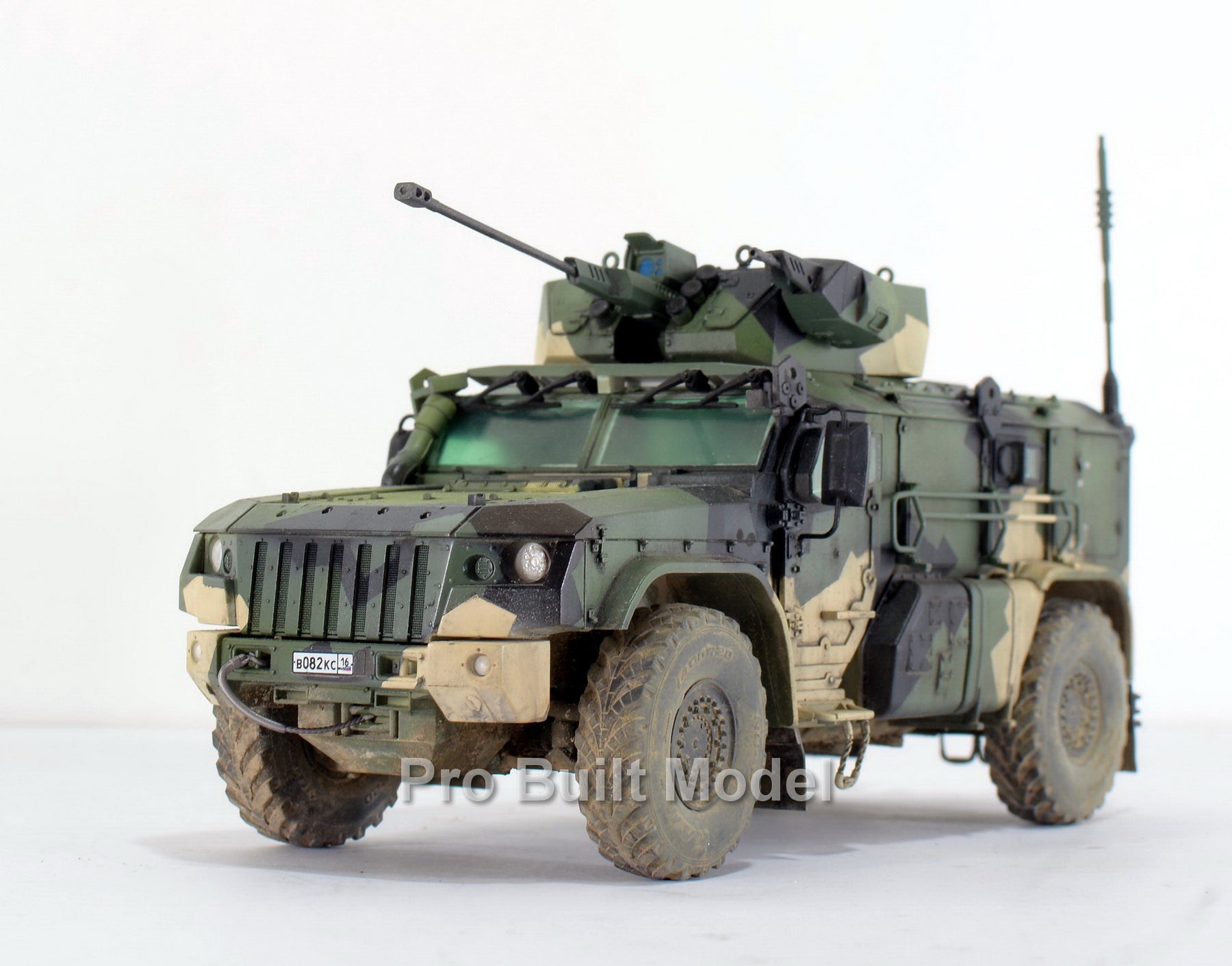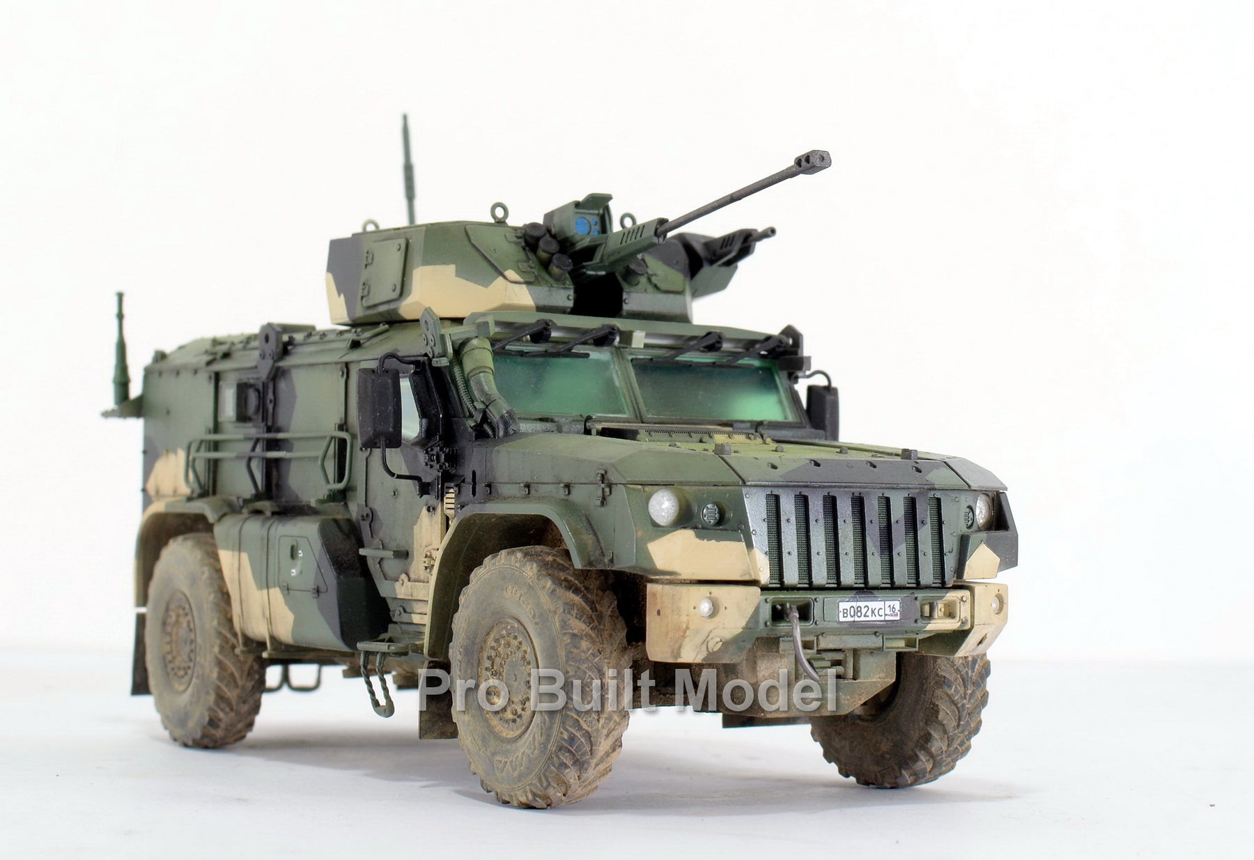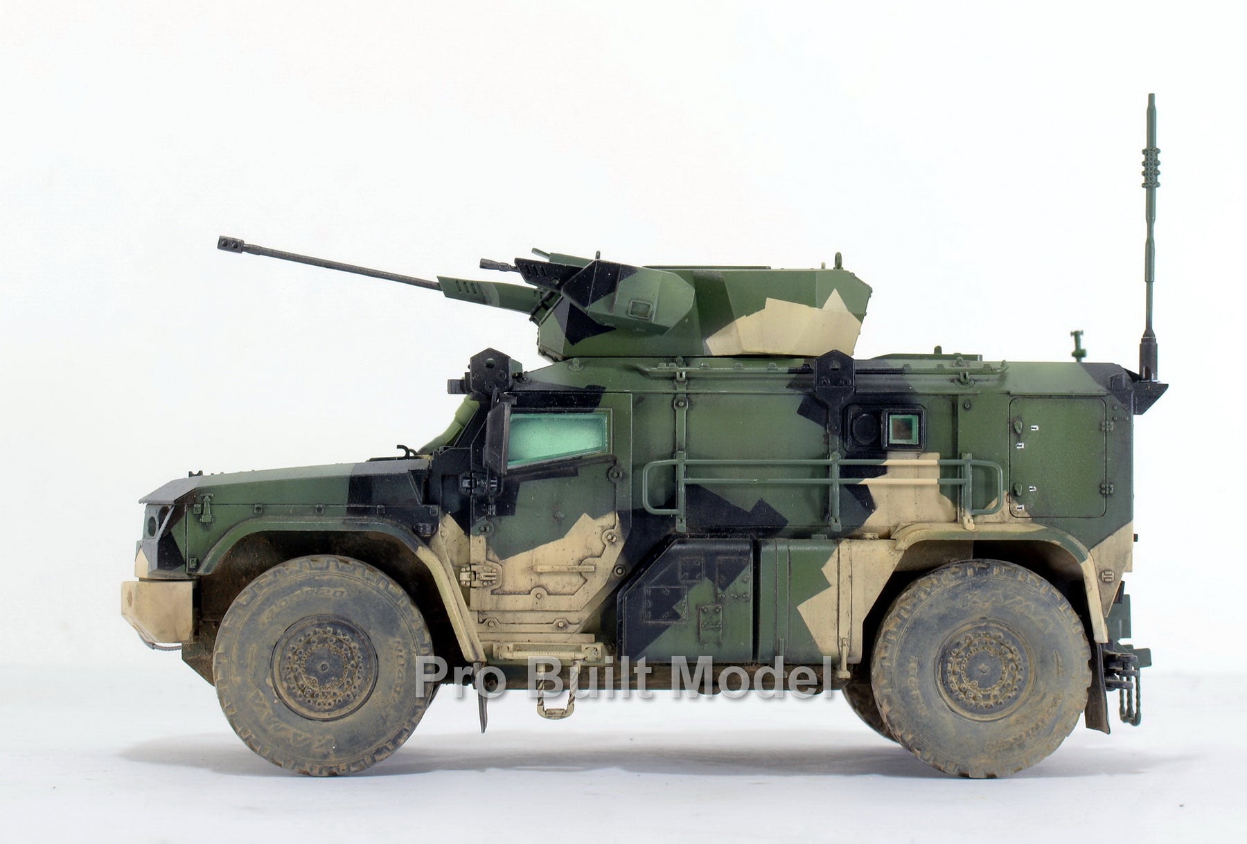 This model is carefully assembled, painted, and weathered to replicate realistic operational conditions. The camouflage pattern, dust effects, and subtle detailing bring the vehicle to life, making it an excellent display piece for collectors of modern military vehicles and scale model enthusiasts.