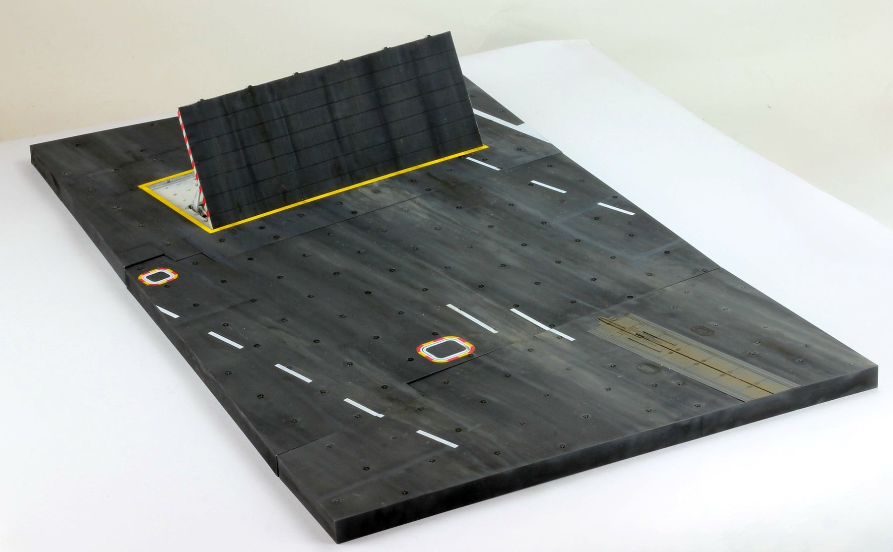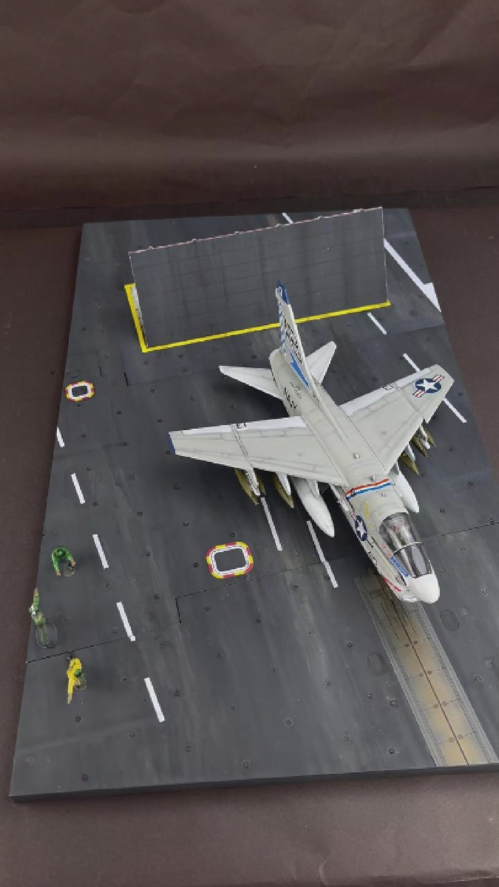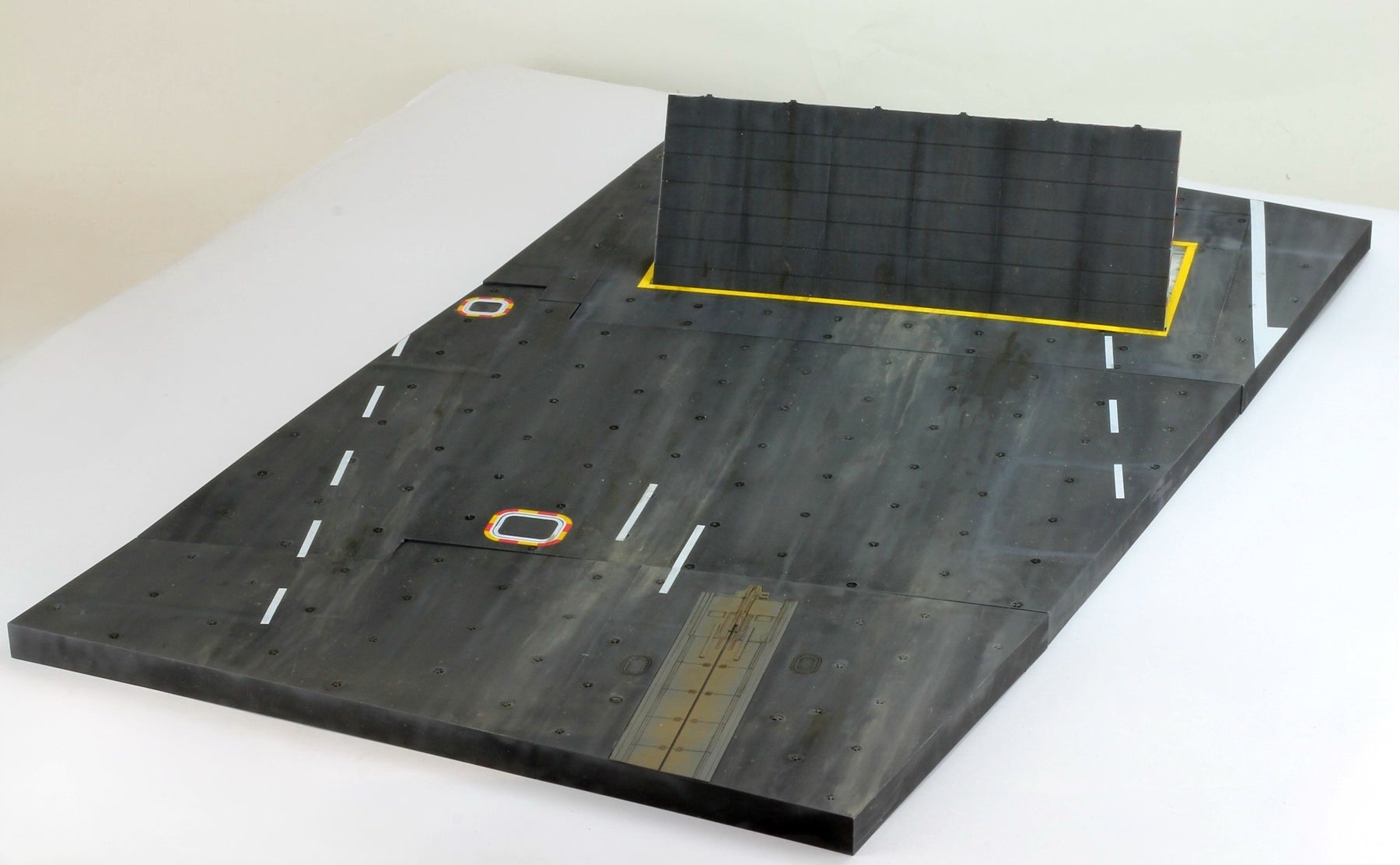 Enhance your model display with this expertly crafted1:48 ProBuilt US Navy Aircraft Carrier Deck Section Diorama Base, built from theplastic model kit. Professionally constructed and painted to match the sample images, this diorama base is designed with remarkable realism, replicating the look and feel of an authentic aircraft carrier deck.