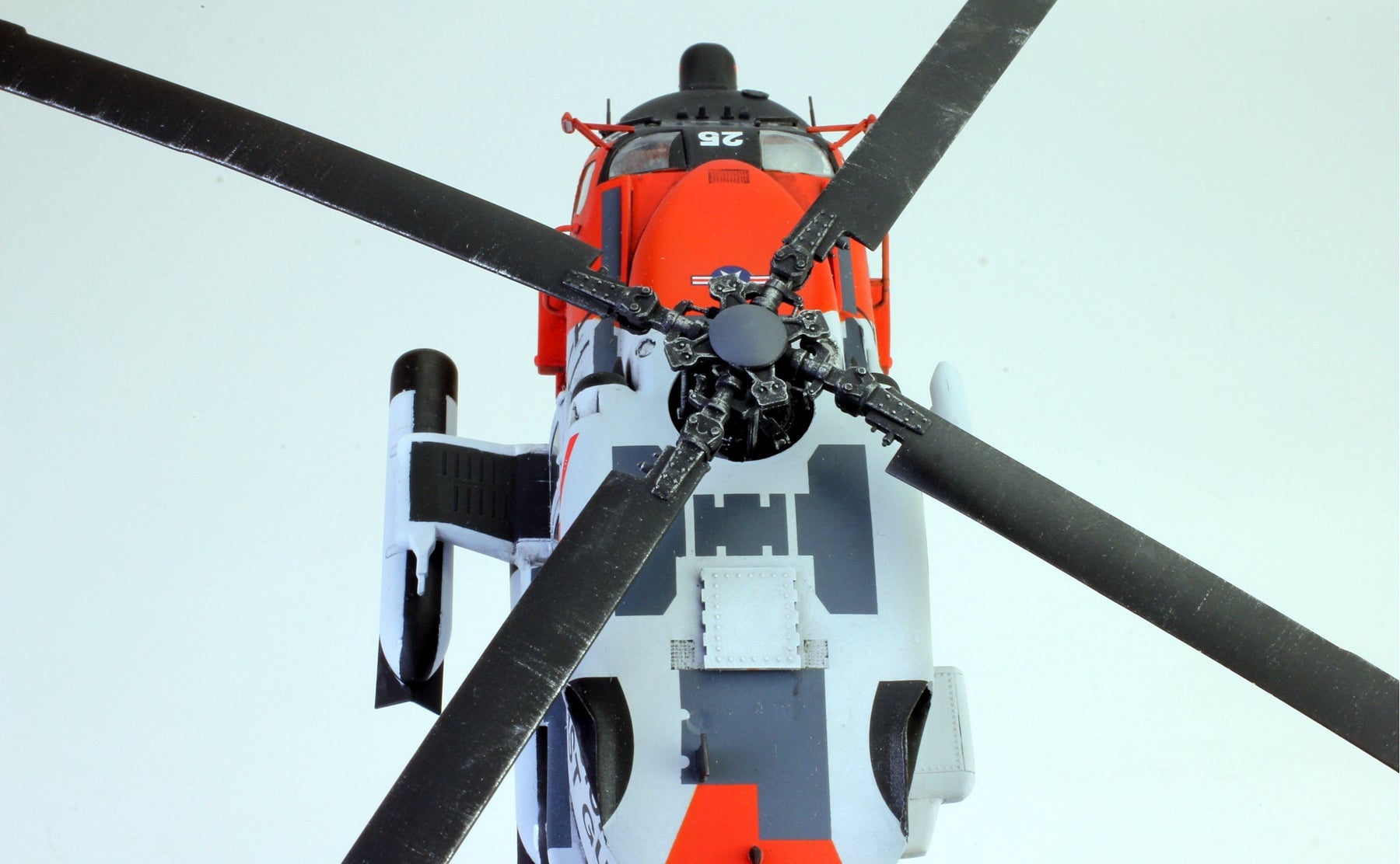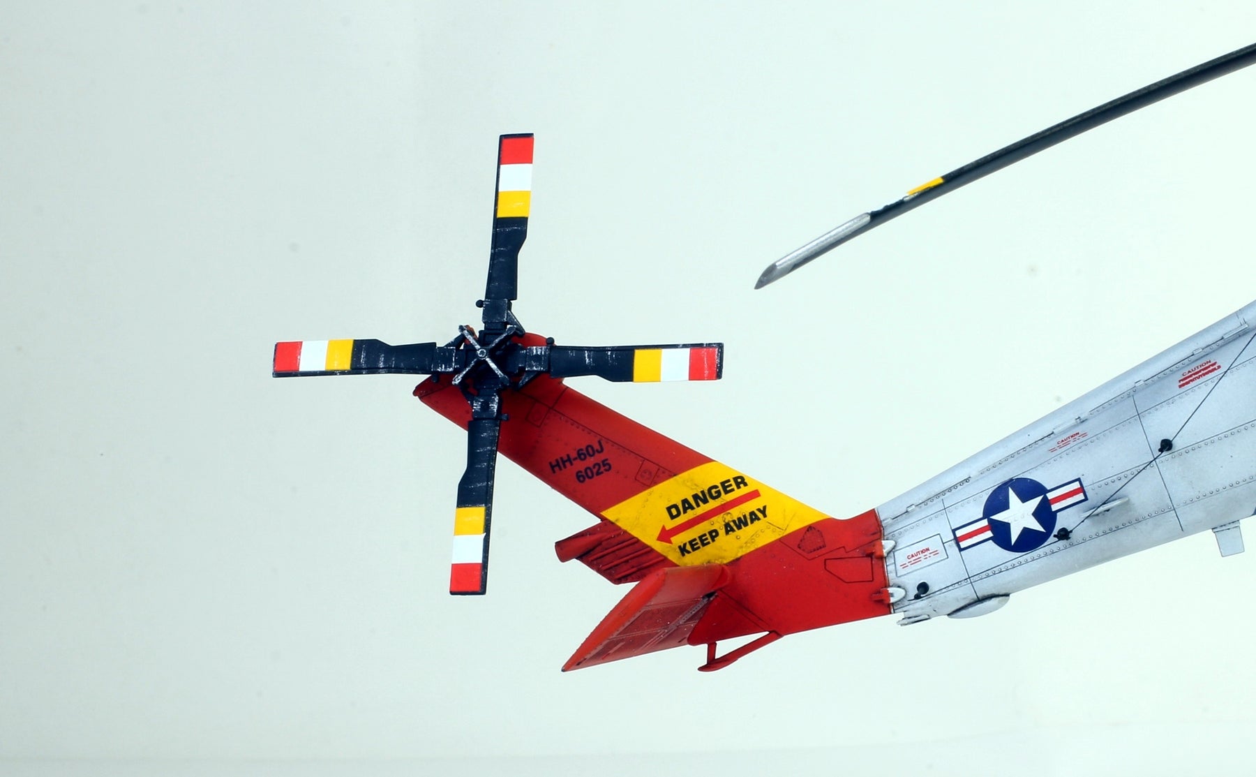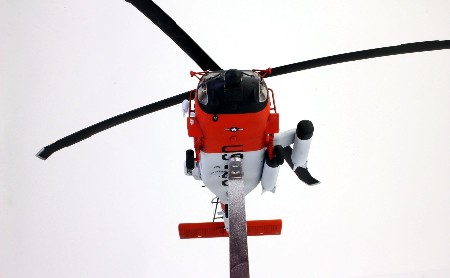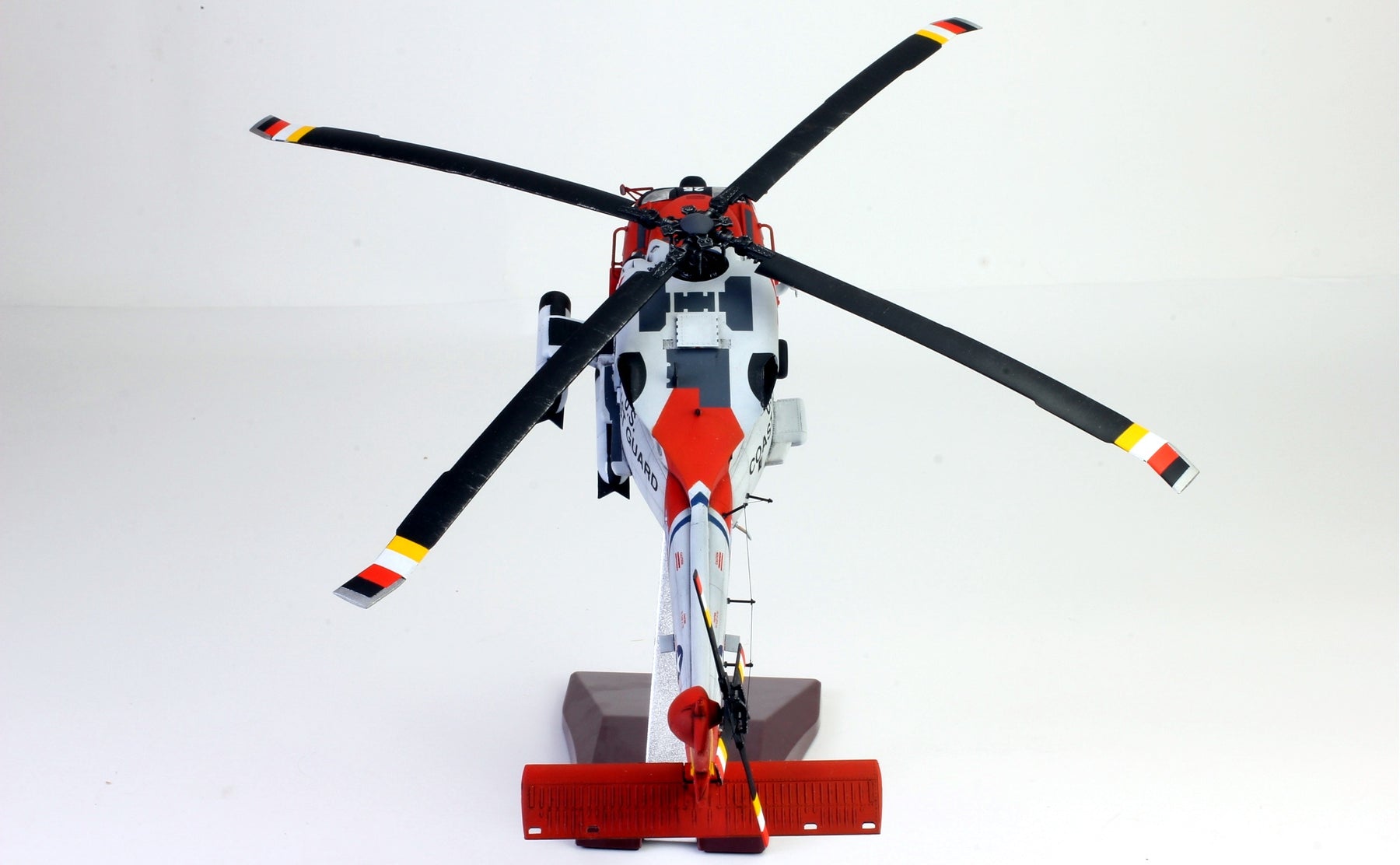 Immerse yourself in the world of aviation as you gaze upon the intricacies of this masterfully assembled HH-60J. Every component has been meticulously placed to replicate the helicopter's form with astonishing precision. The professional skills of our artists are on full display, evident in the flawless paintwork that captures the Coast Guard's iconic color scheme.