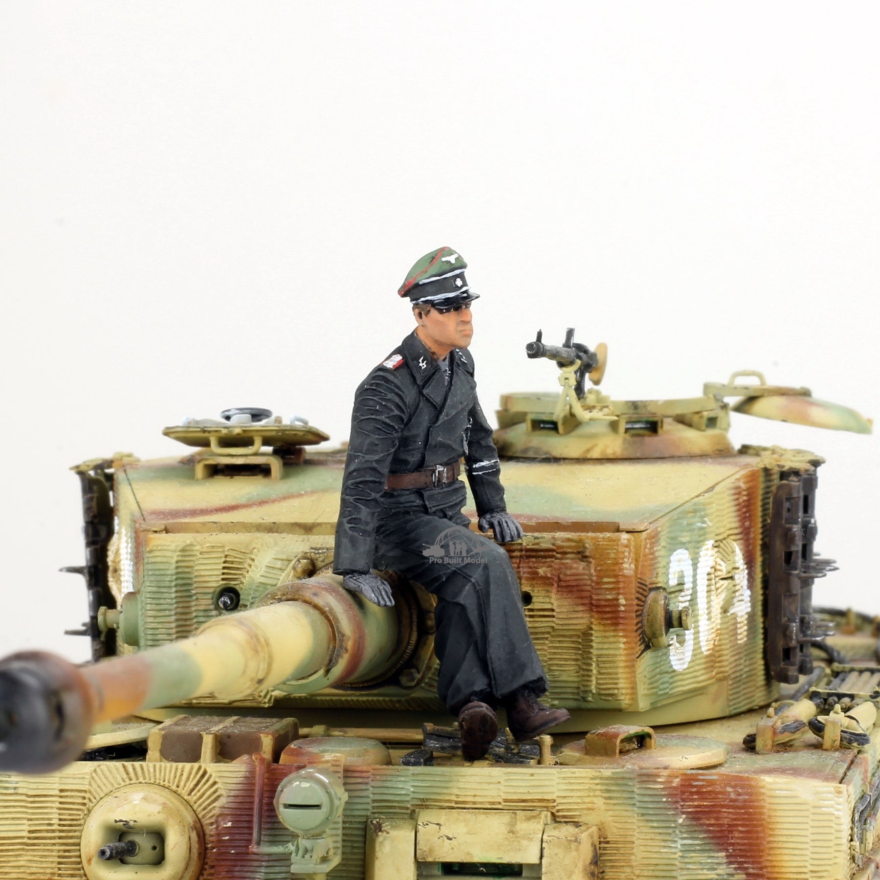 This finely detailed model depicts a German tank commander from WWII, carefully crafted and painted by skilled artists. The uniform, facial features, and field equipment are authentically reproduced to enhance realism. Perfect as a standalone display piece or as a crew figure for 1/35 scale tanks and armored vehicles, this figure will add depth and storytelling to any collection.