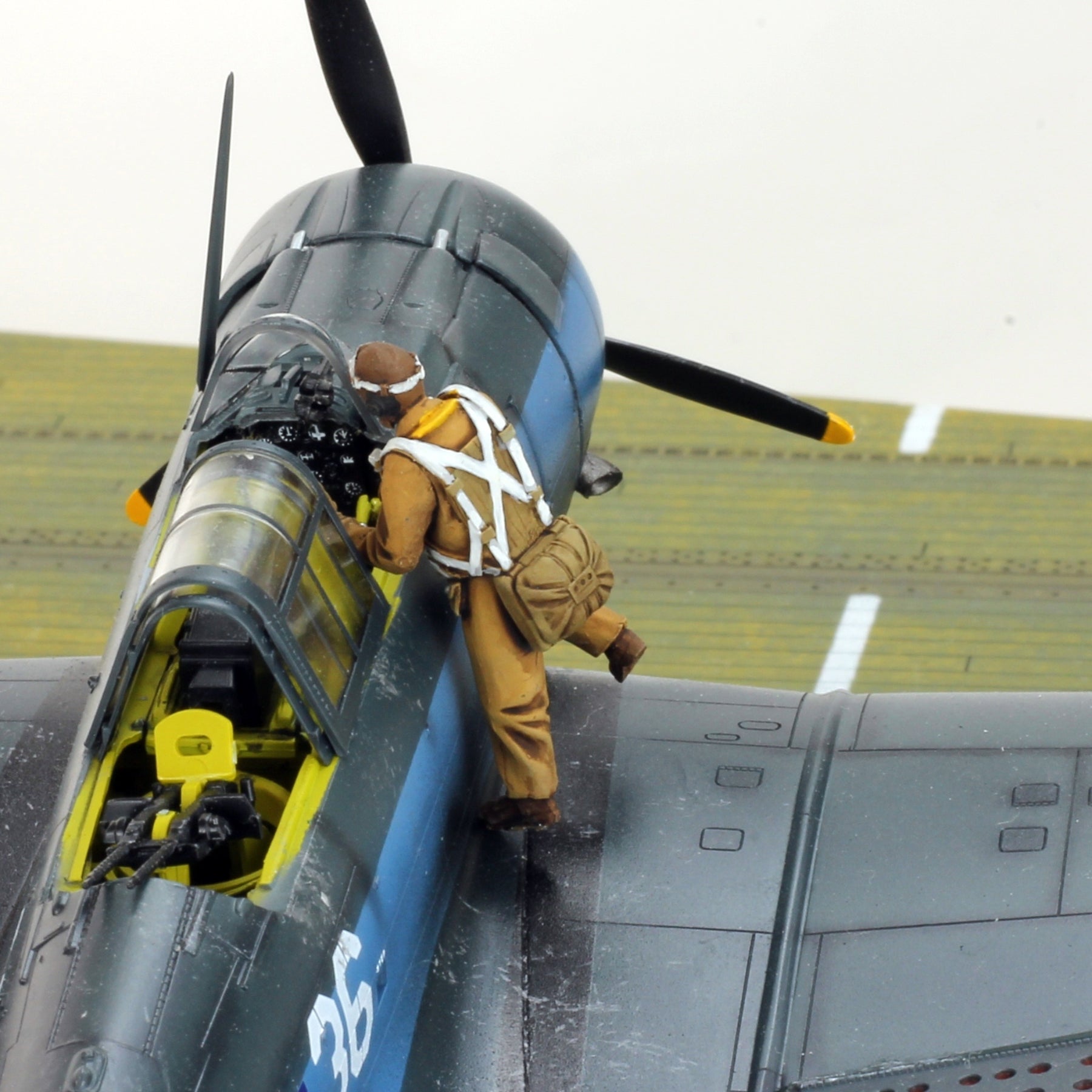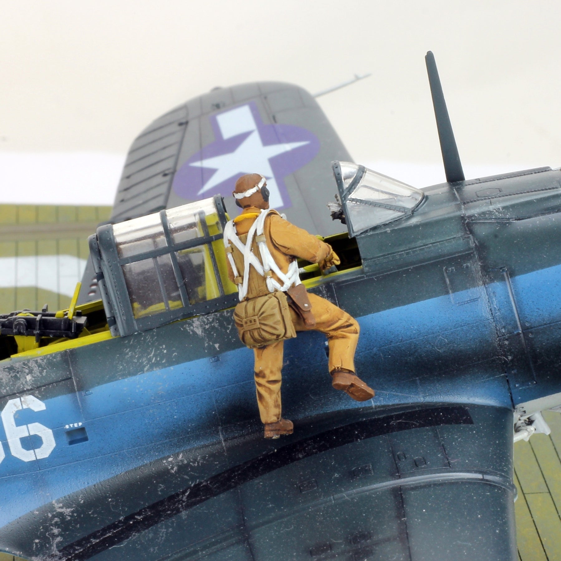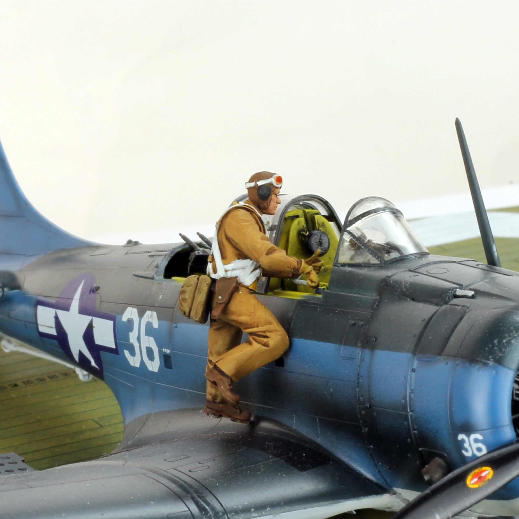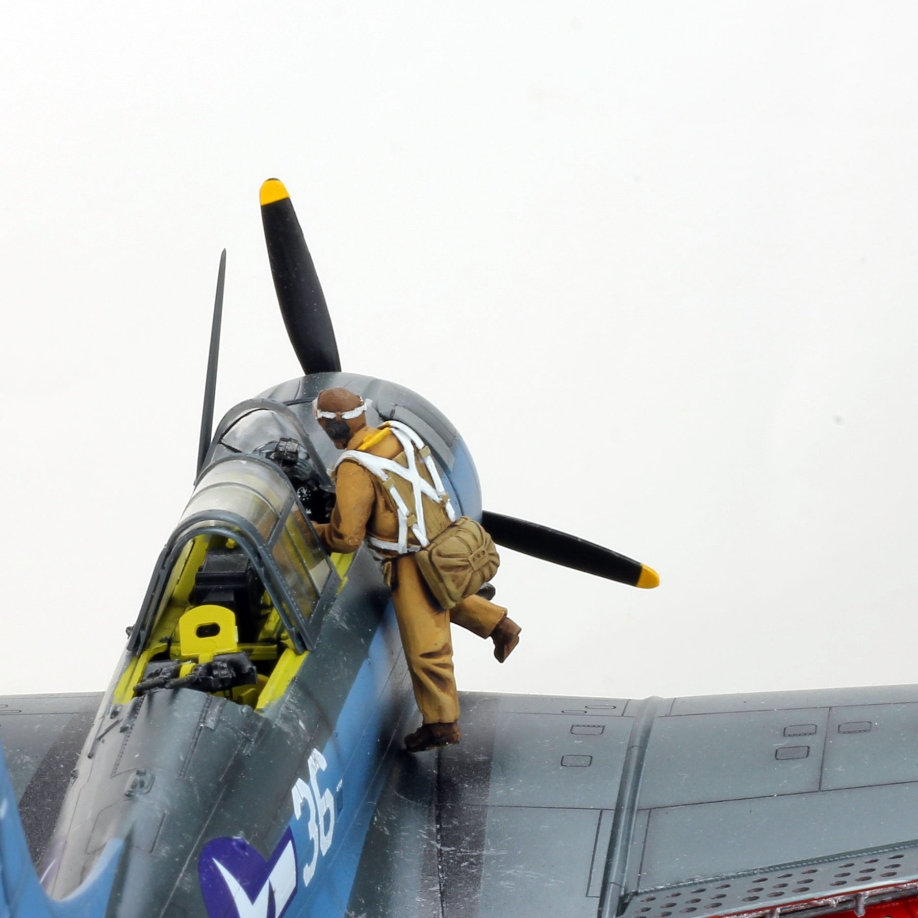 Add dynamic realism to your WWII aircraft display with this professionally hand-painted 1/48 scale US Navy pilot figure, posed naturally climbing into the cockpit before flight.