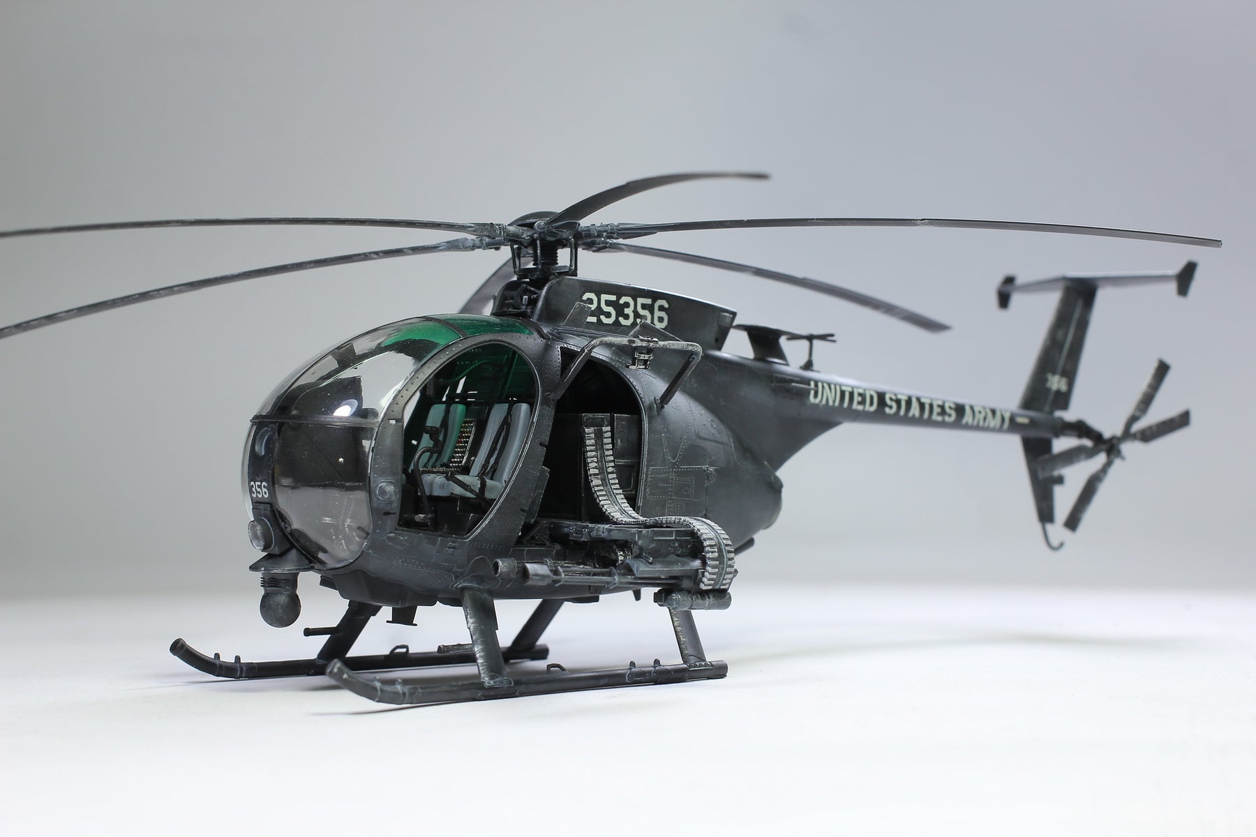 The Boeing MH-6M Little Bird (nicknamed the Killer Egg) and its attack variant, the AH-6, are light helicopters used for special operations in the United States Army. Originally based on a modified OH-6A, it was later based on the MD 500E, with a single five-bladed main rotor. The newest version, the MH-6M, is based on the MD 530F and has a single, six-bladed main rotor and four-bladed tail rotor.