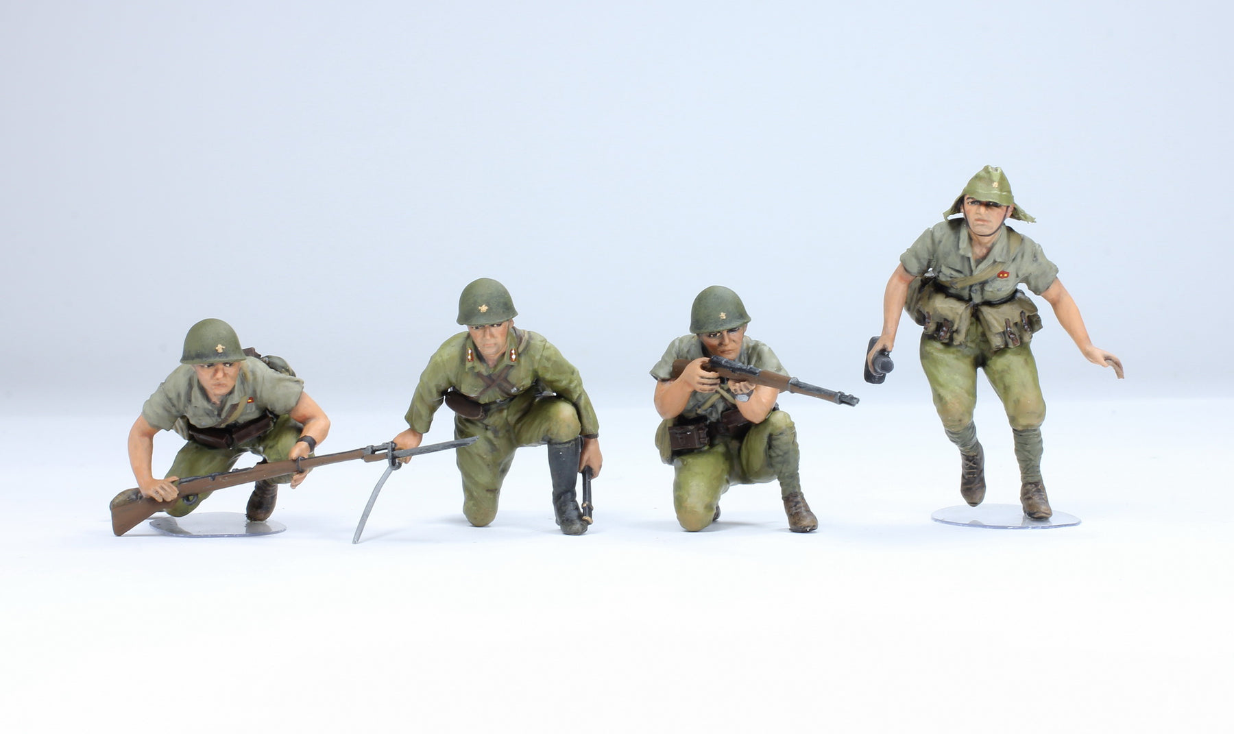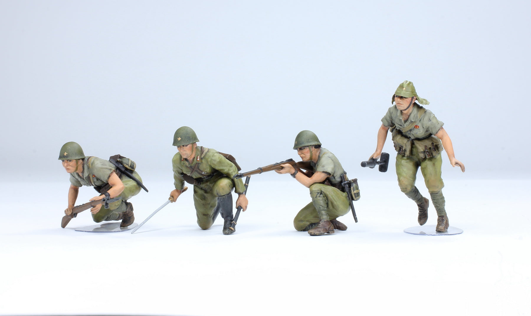 Introducing the set of 04 1/35 handcrafted and professionally painted figures of Japanese soldiers, depicting the Japanese infantry fighting in the battlefields of World War II.
