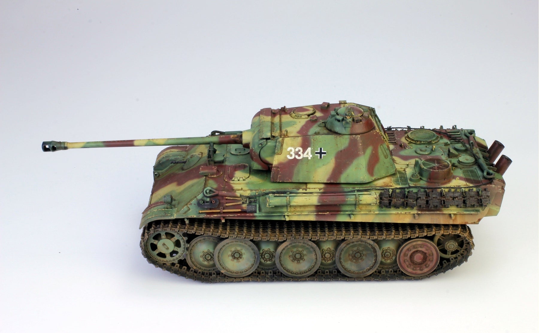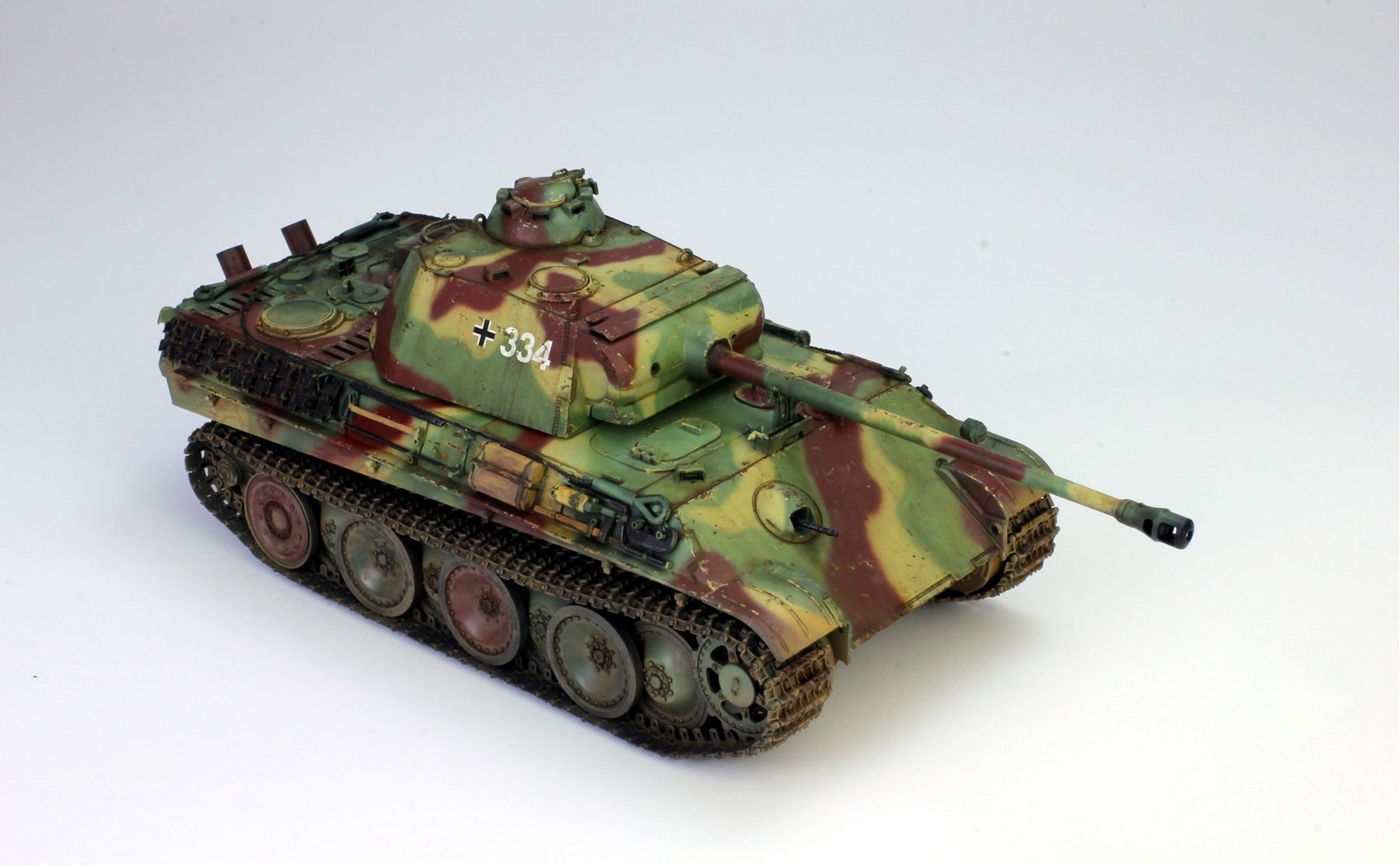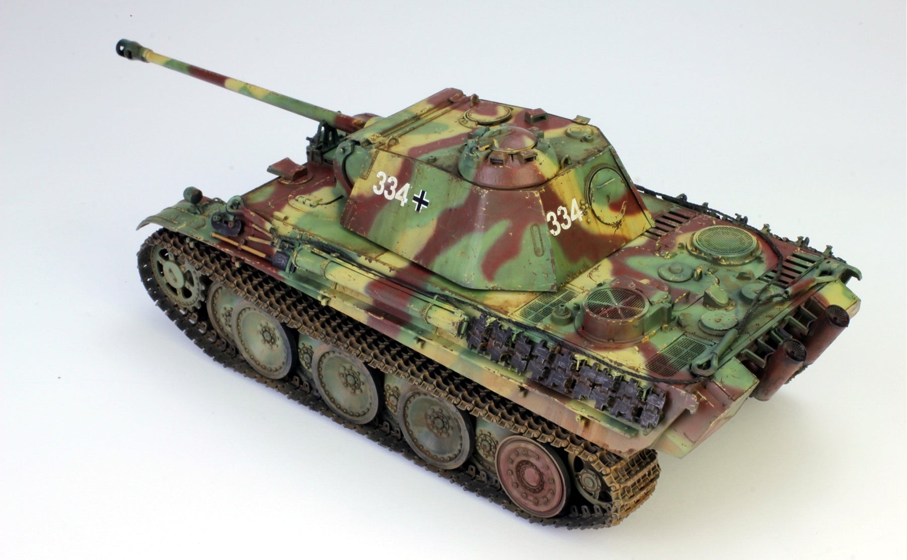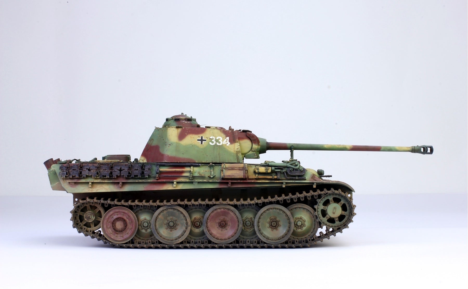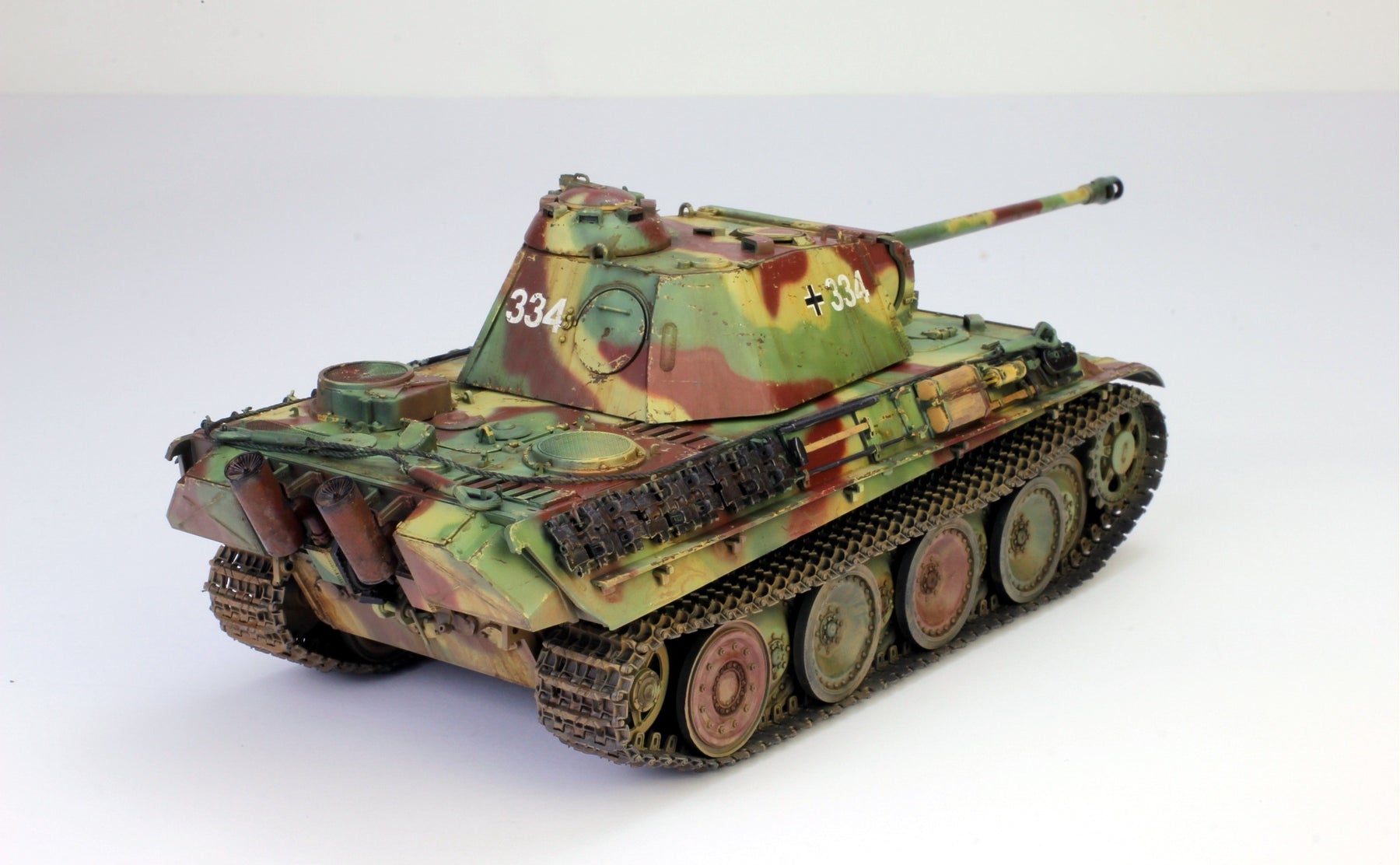 Upon closer inspection, it's evident that no detail has been spared, from the faithful reproduction of its paint scheme to the impeccable weathering effects. These effects authentically capture the wear and tear of the original Panther Ausf. G tanks in combat during WW2.