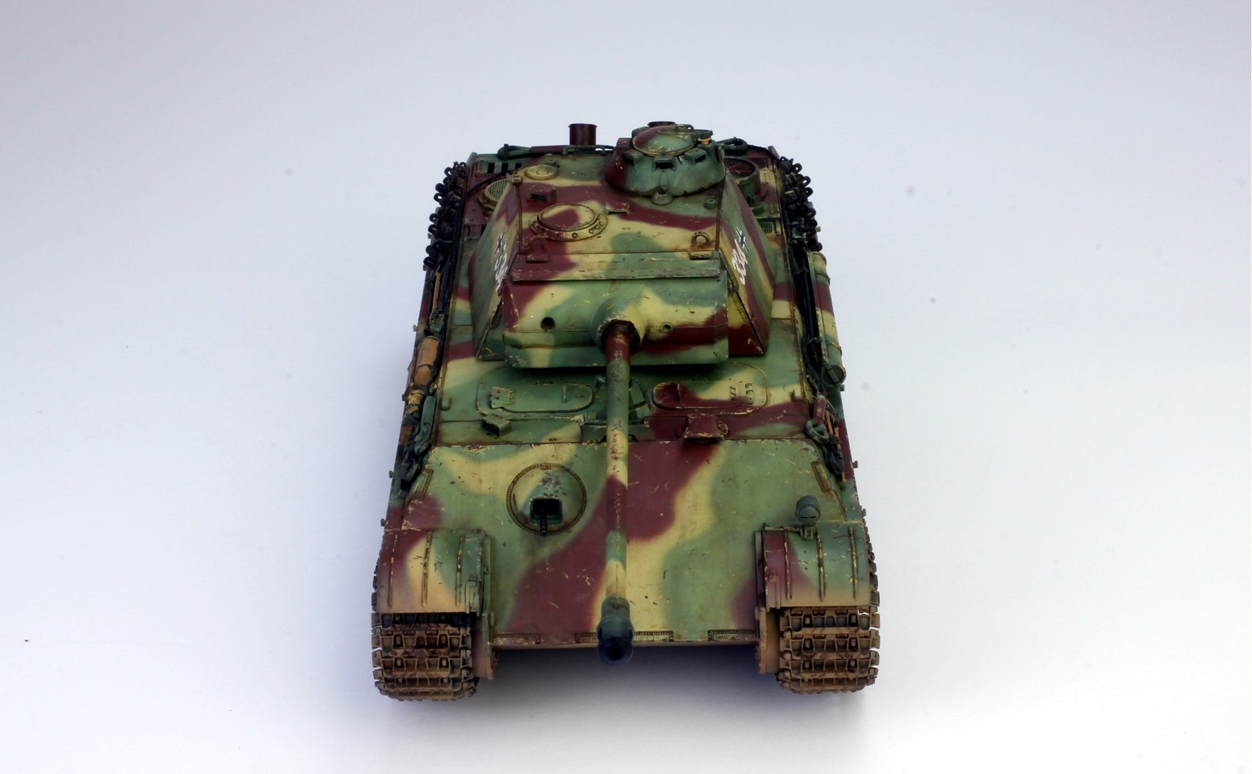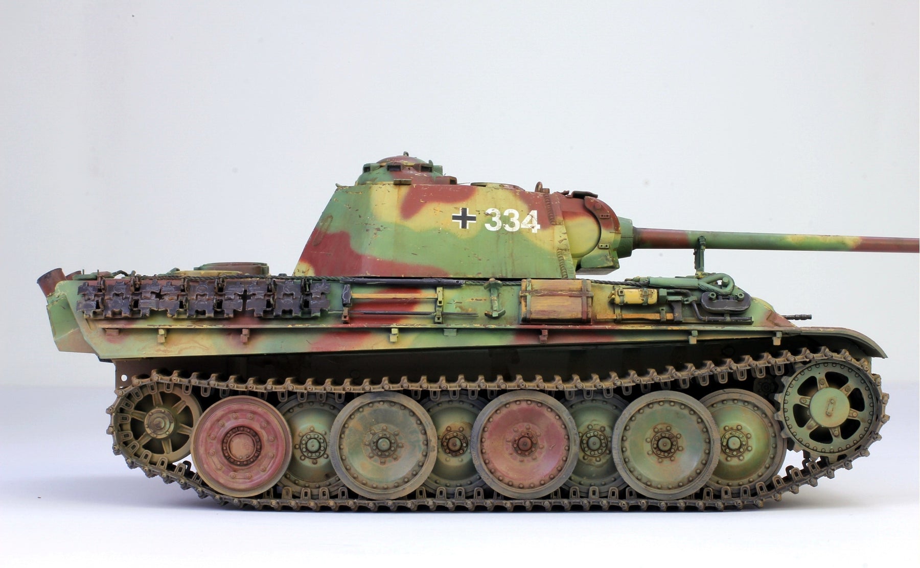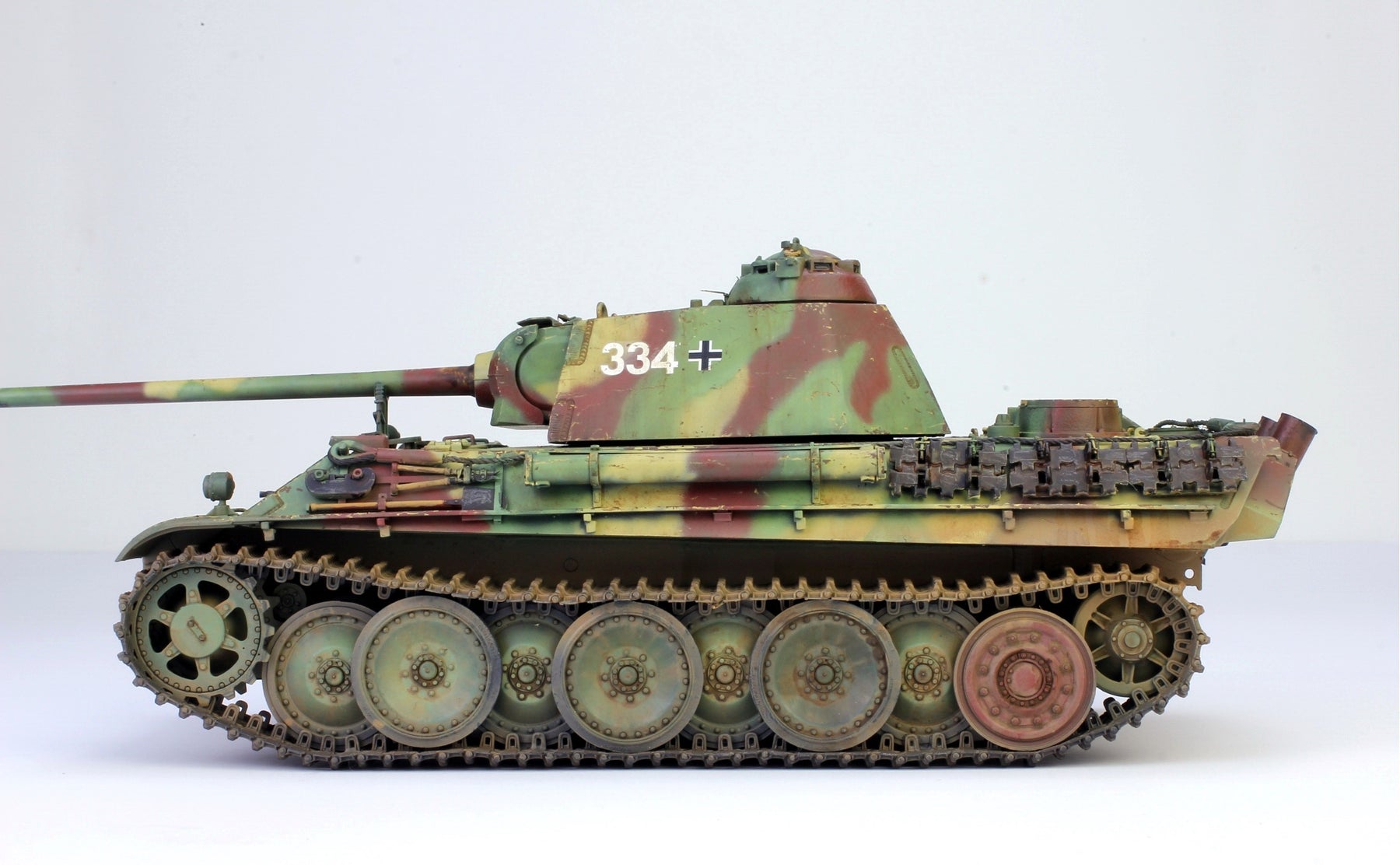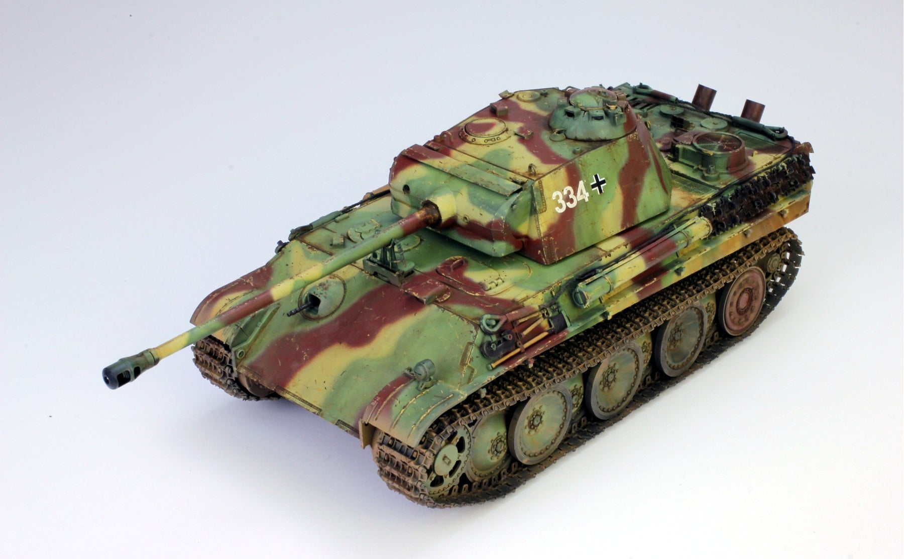 Upon closer inspection, it's evident that no detail has been spared, from the faithful reproduction of its paint scheme to the impeccable weathering effects. These effects authentically capture the wear and tear of the original Panther Ausf. G tanks in combat during WW2.