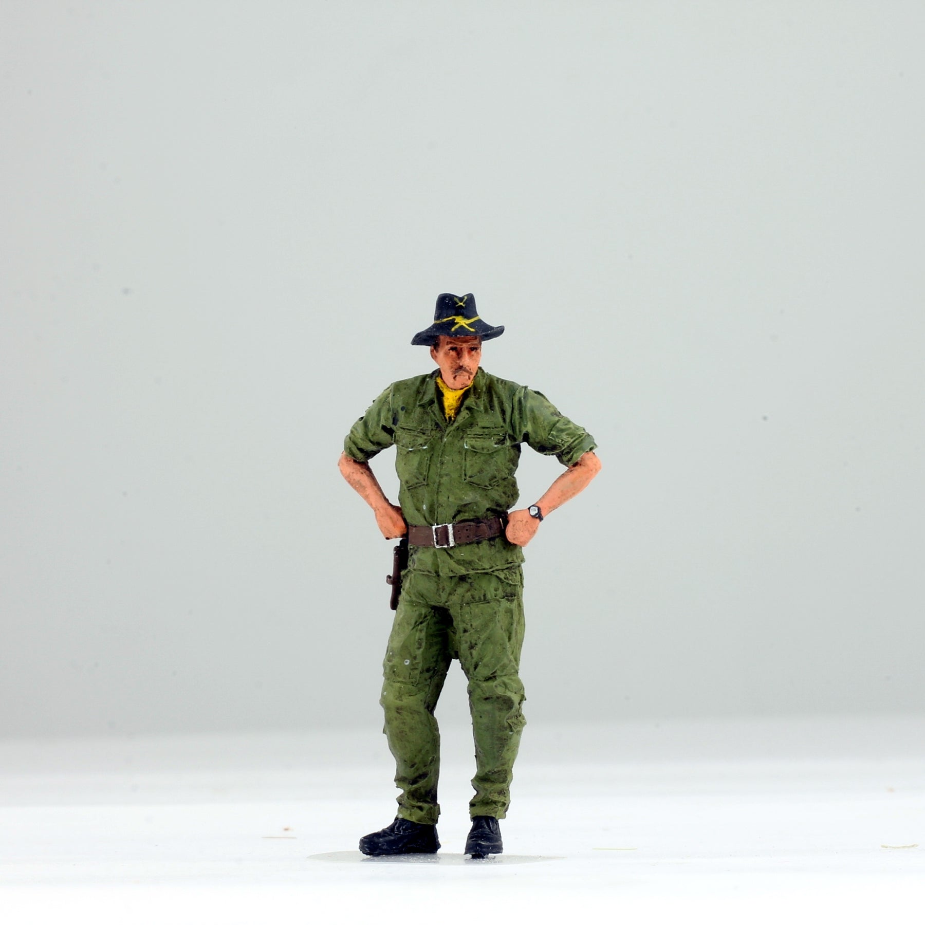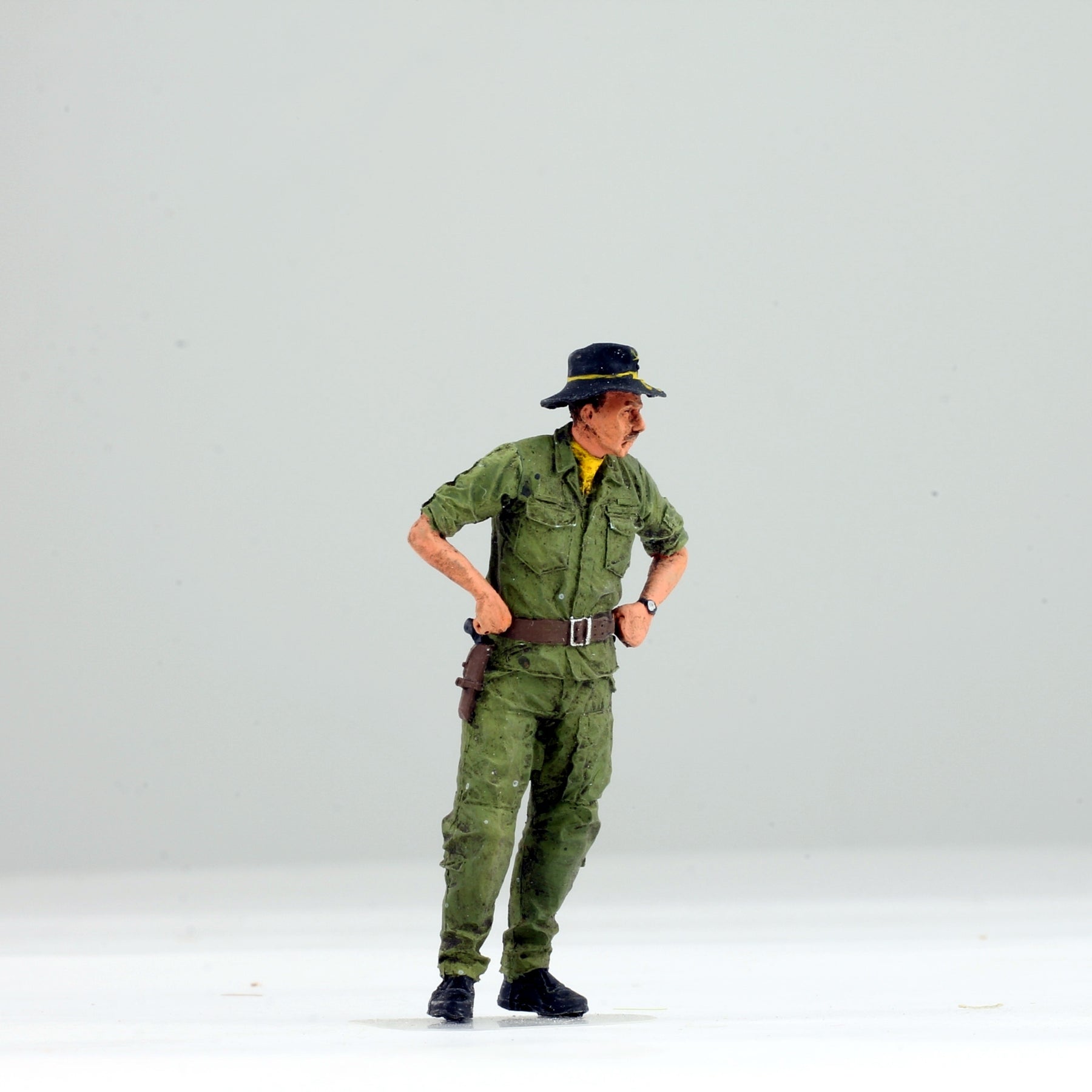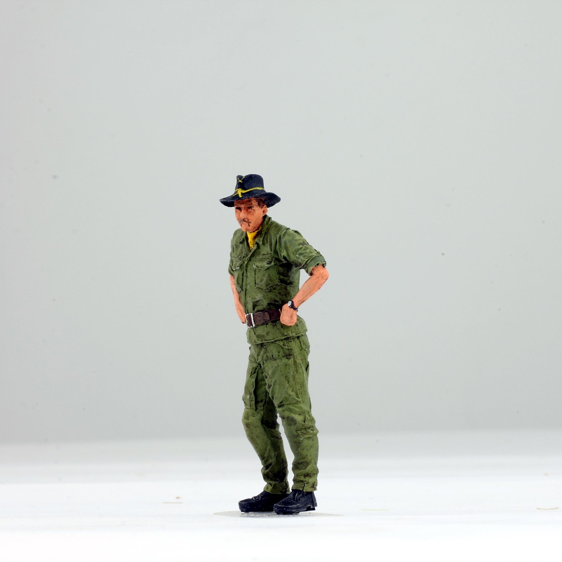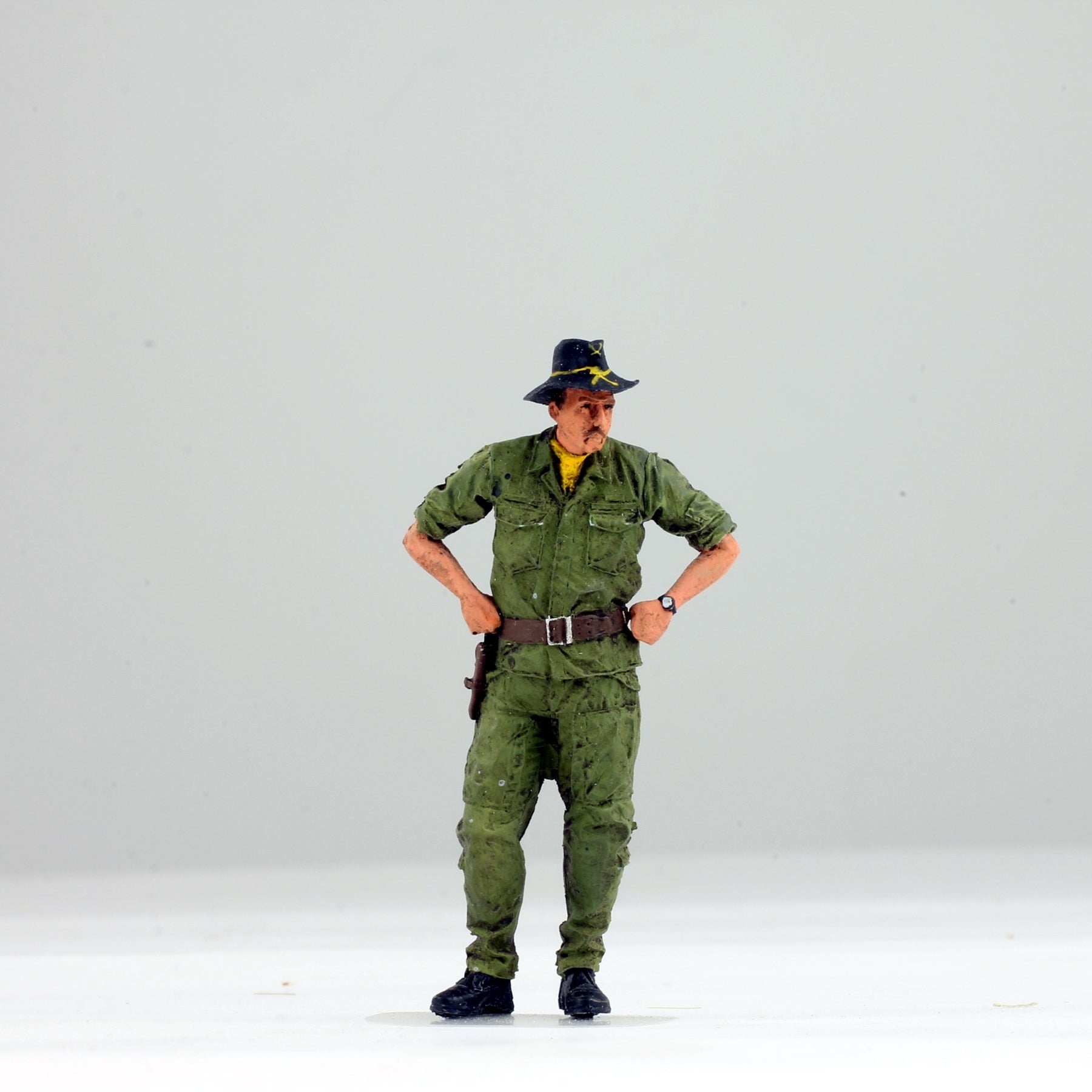 Elevate your diorama or model collection with our meticulously crafted 1:35 scale figure of a US 1st Cavalry Helicopter Pilot from the Vietnam War. Painted by our expert artist to achieve lifelike realism, this figure captures the intense expression and authentic details of a combat-ready pilot. Perfectly scaled to accompany your 1:35 helicopter models, including the UH-1 Huey, AH-1G Cobra, and OH-6A Cayuse, it enhances the historical accuracy and visual impact of your display.