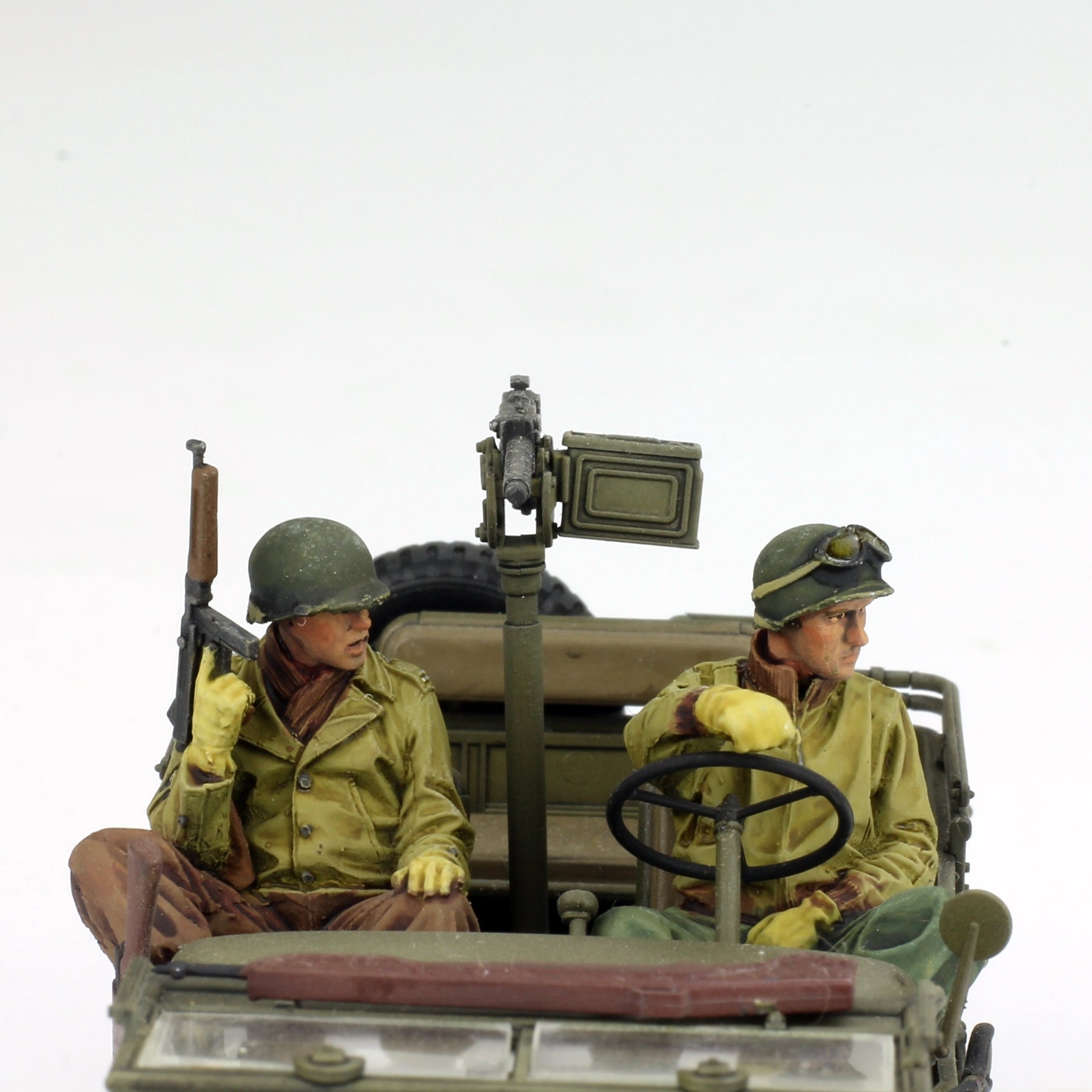 Bring your WWII diorama to life with this expertly handcrafted and propainted 1:35 U.S. Jeep Crew Set. This set features two highly detailed U.S. Army crew figures designed for use with 1:35 scale Jeep models (Jeep not included). Perfect for military modelers, collectors, and historical enthusiasts, each figure is painted by hand with professional techniques to achieve realistic shading, uniform detail, and weathered finishes authentic to the WWII era.