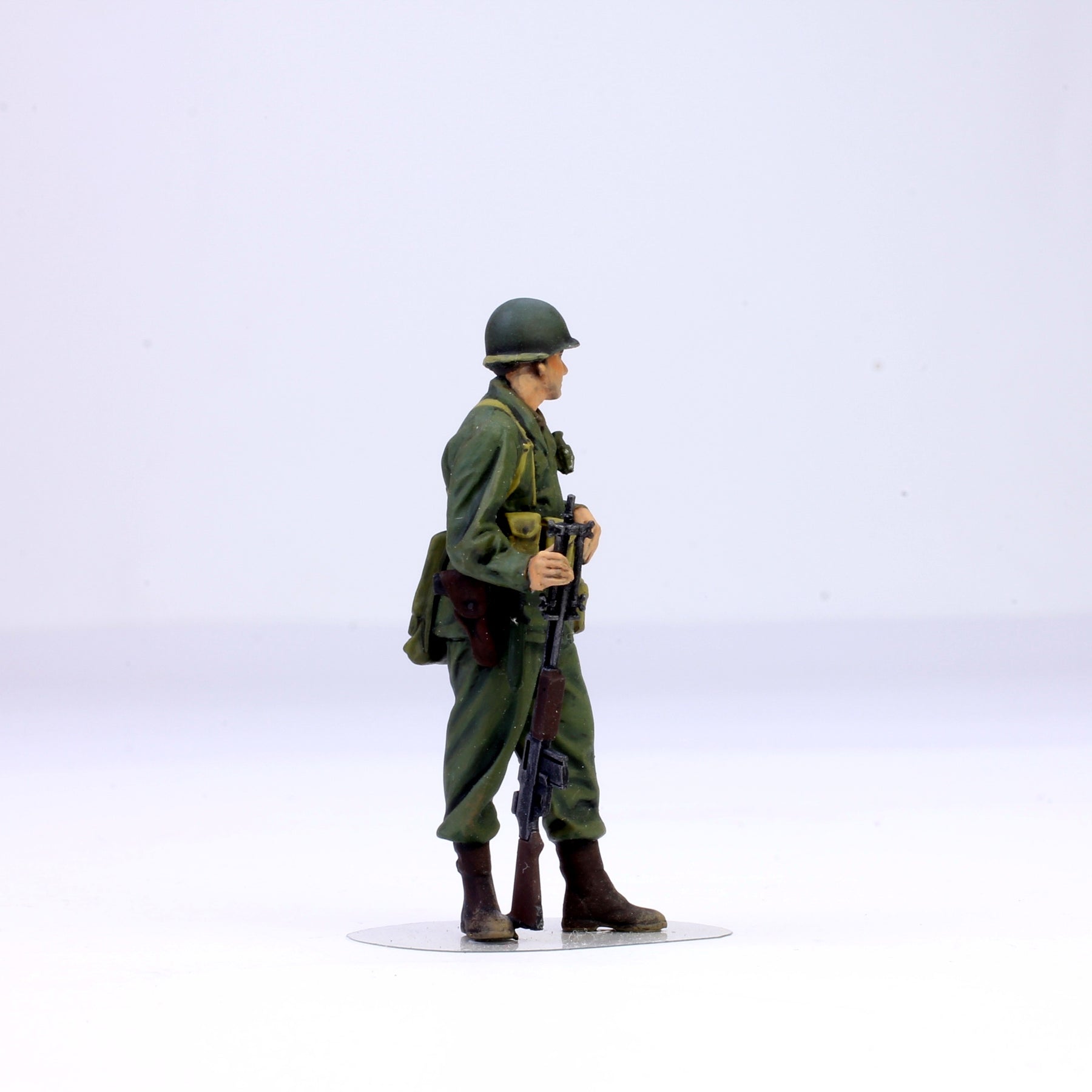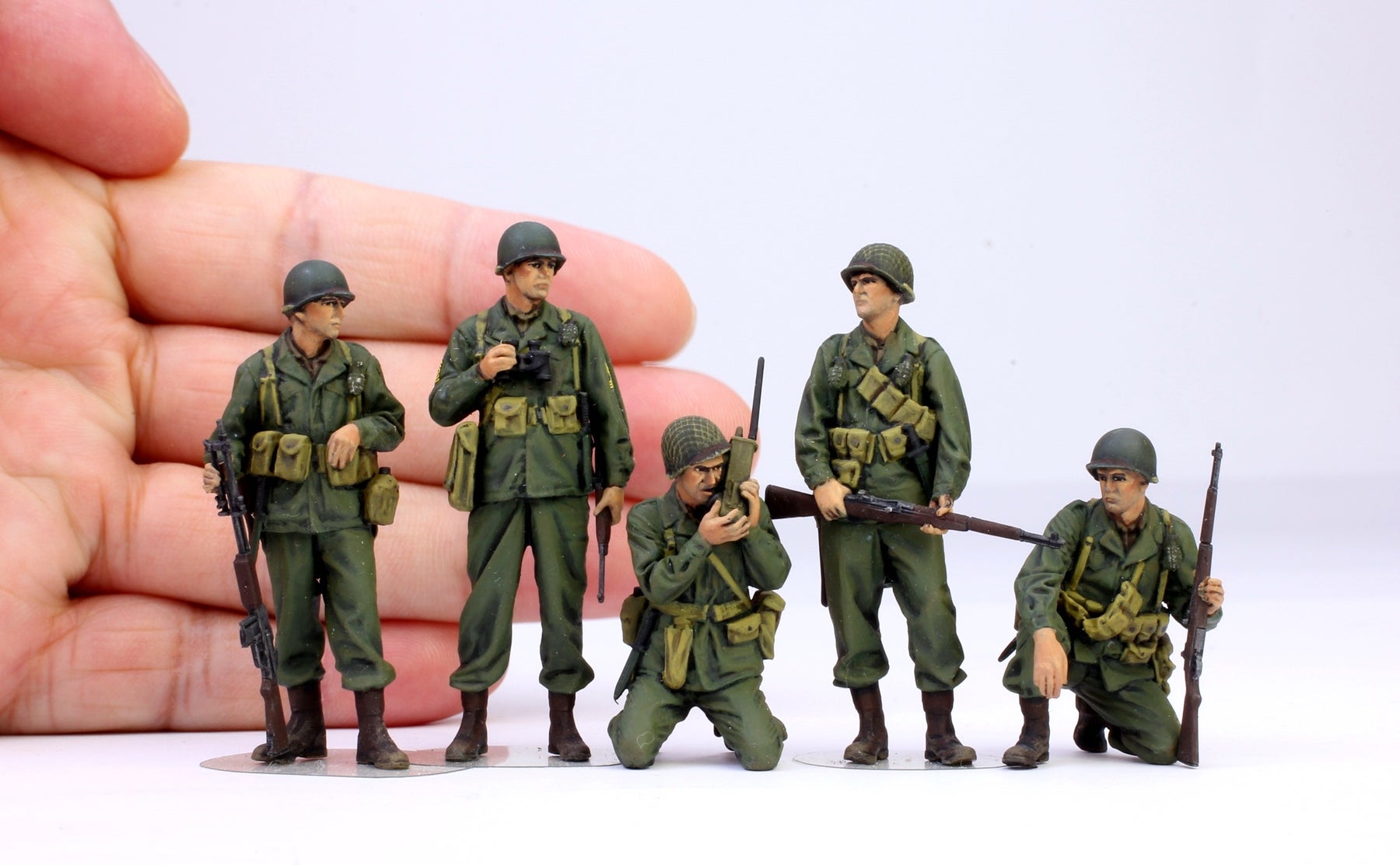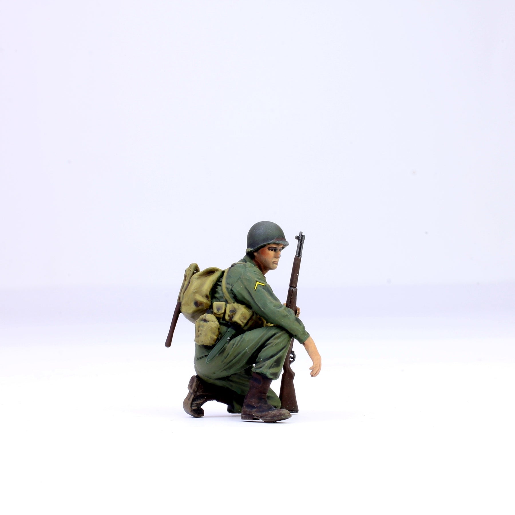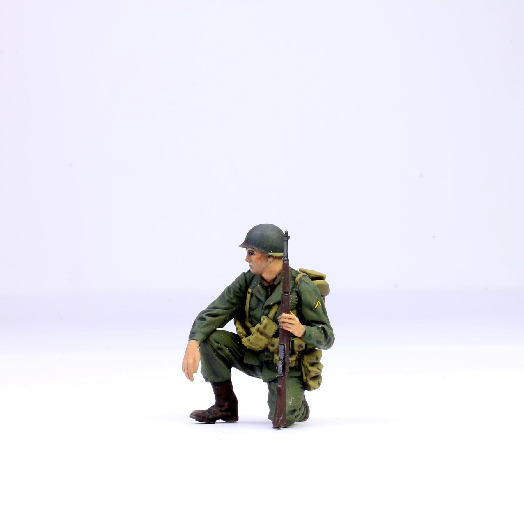 As evident in the accompanying images, the attention to detail on these figures is extraordinary. From the realism of the faces to the accuracy of the uniforms, equipment, and weaponry, this set transcends traditional miniatures, embodying historical accuracy at its finest. This collection isn't just for admiration; it's an opportunity to create your own WW2 diorama, bringing the history of the US Army Infantry Scouts into your living space.