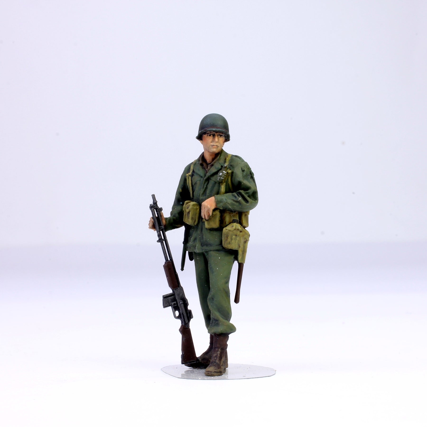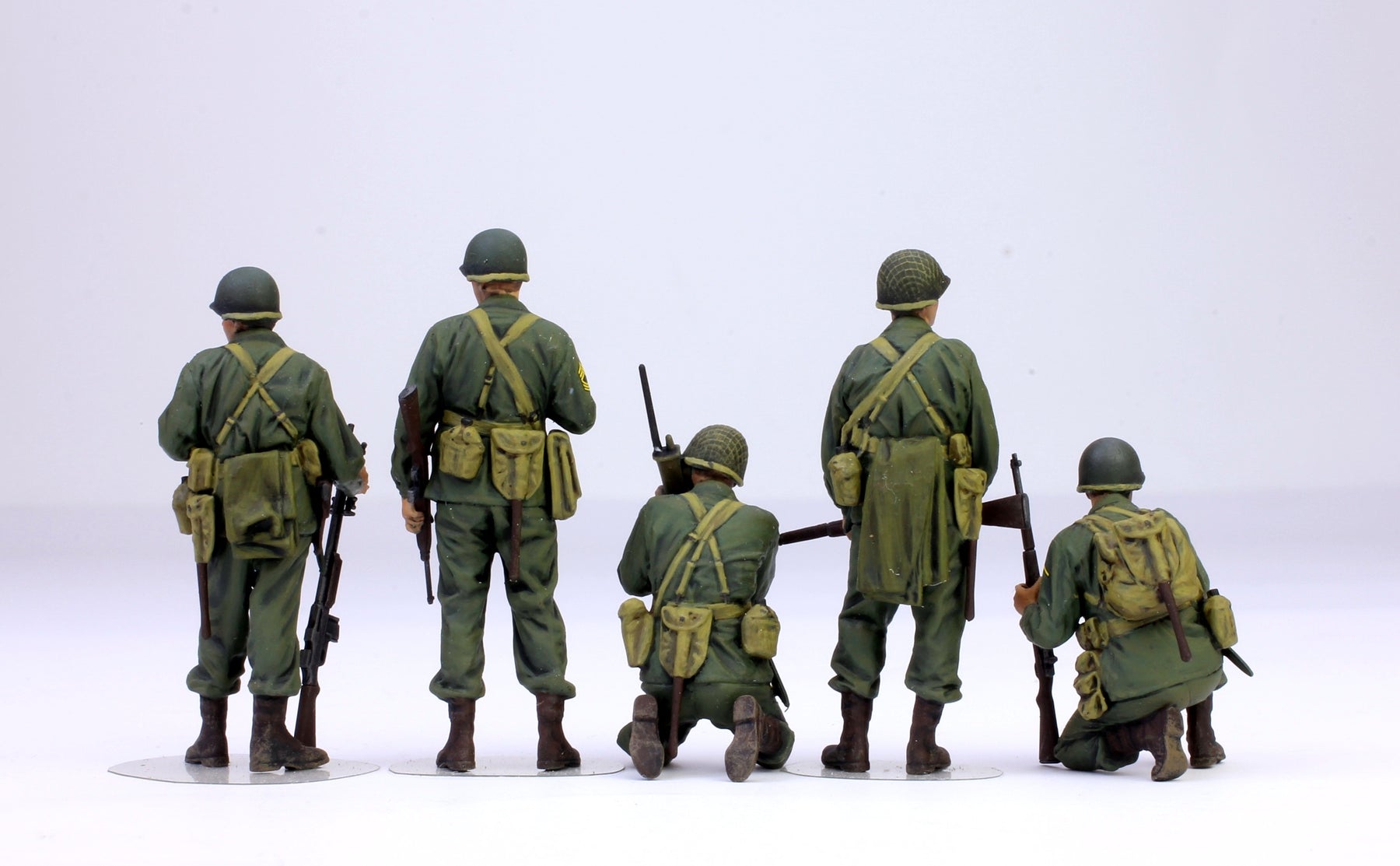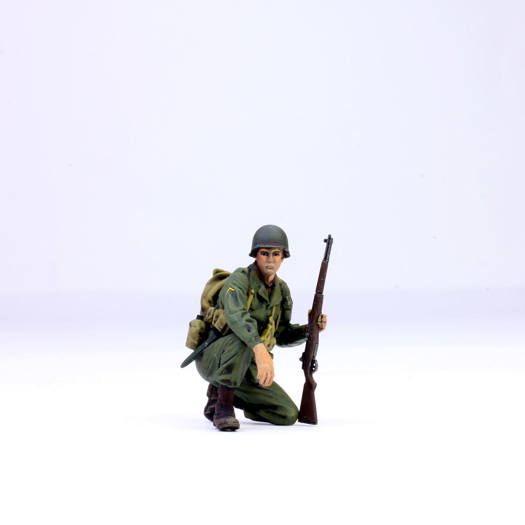As evident in the accompanying images, the attention to detail on these figures is extraordinary. From the realism of the faces to the accuracy of the uniforms, equipment, and weaponry, this set transcends traditional miniatures, embodying historical accuracy at its finest. This collection isn't just for admiration; it's an opportunity to create your own WW2 diorama, bringing the history of the US Army Infantry Scouts into your living space.