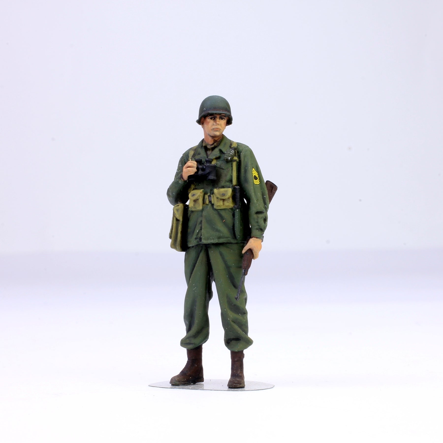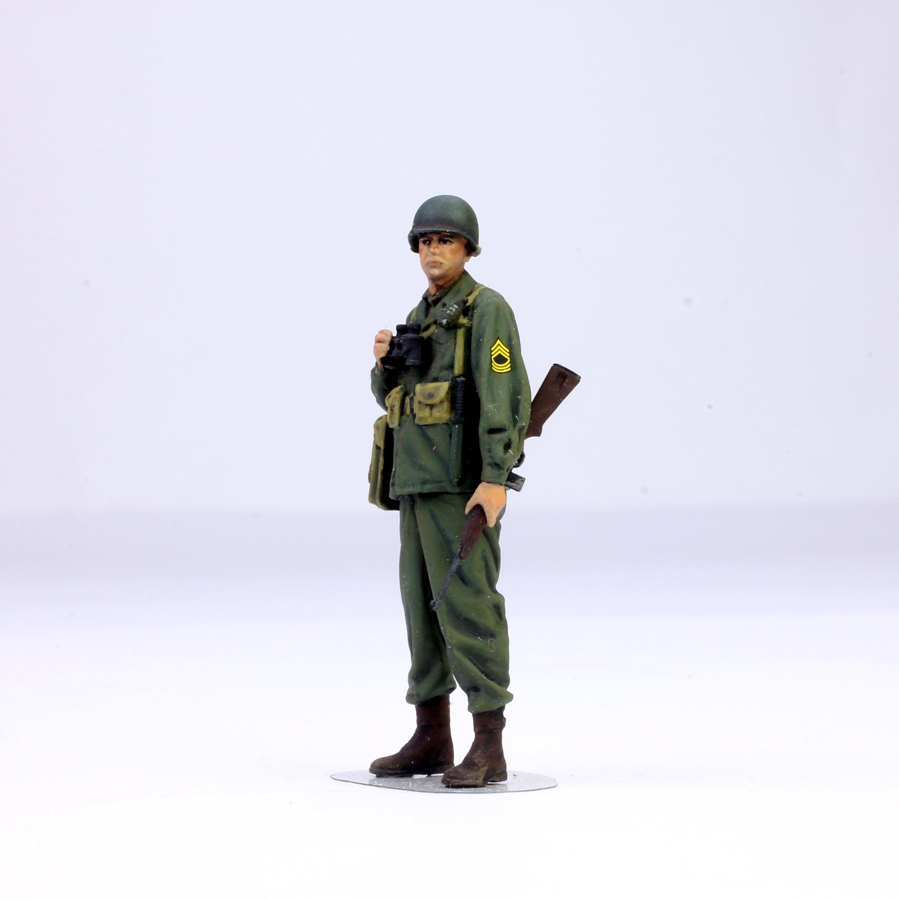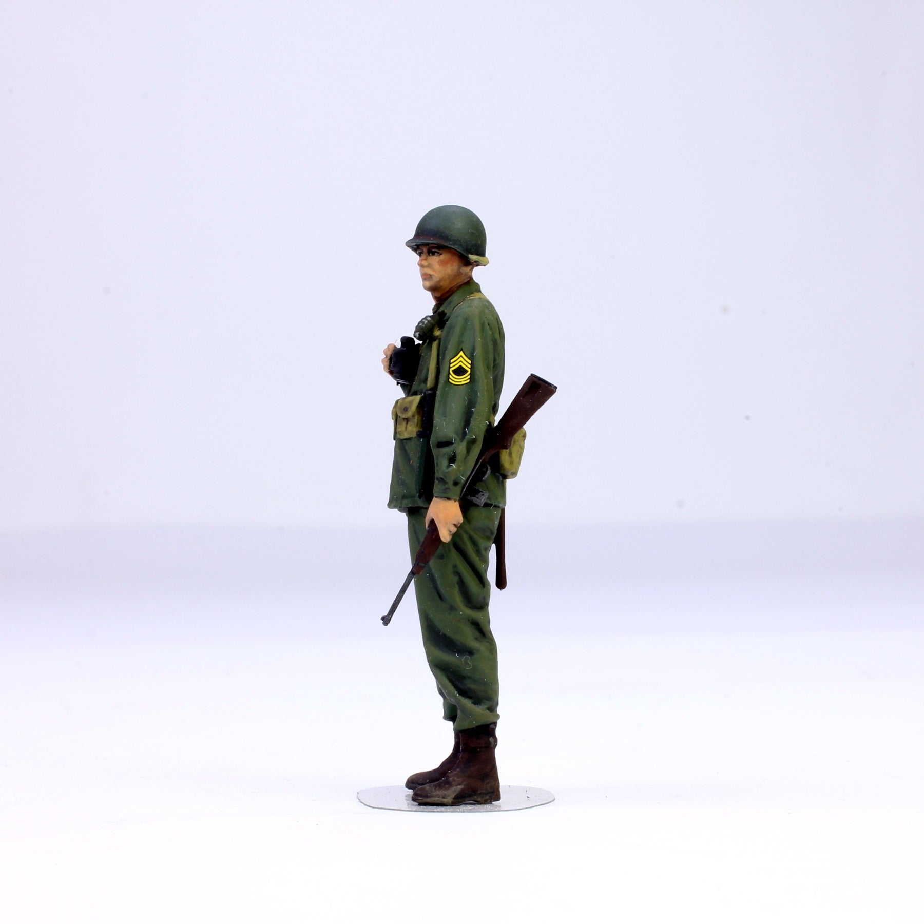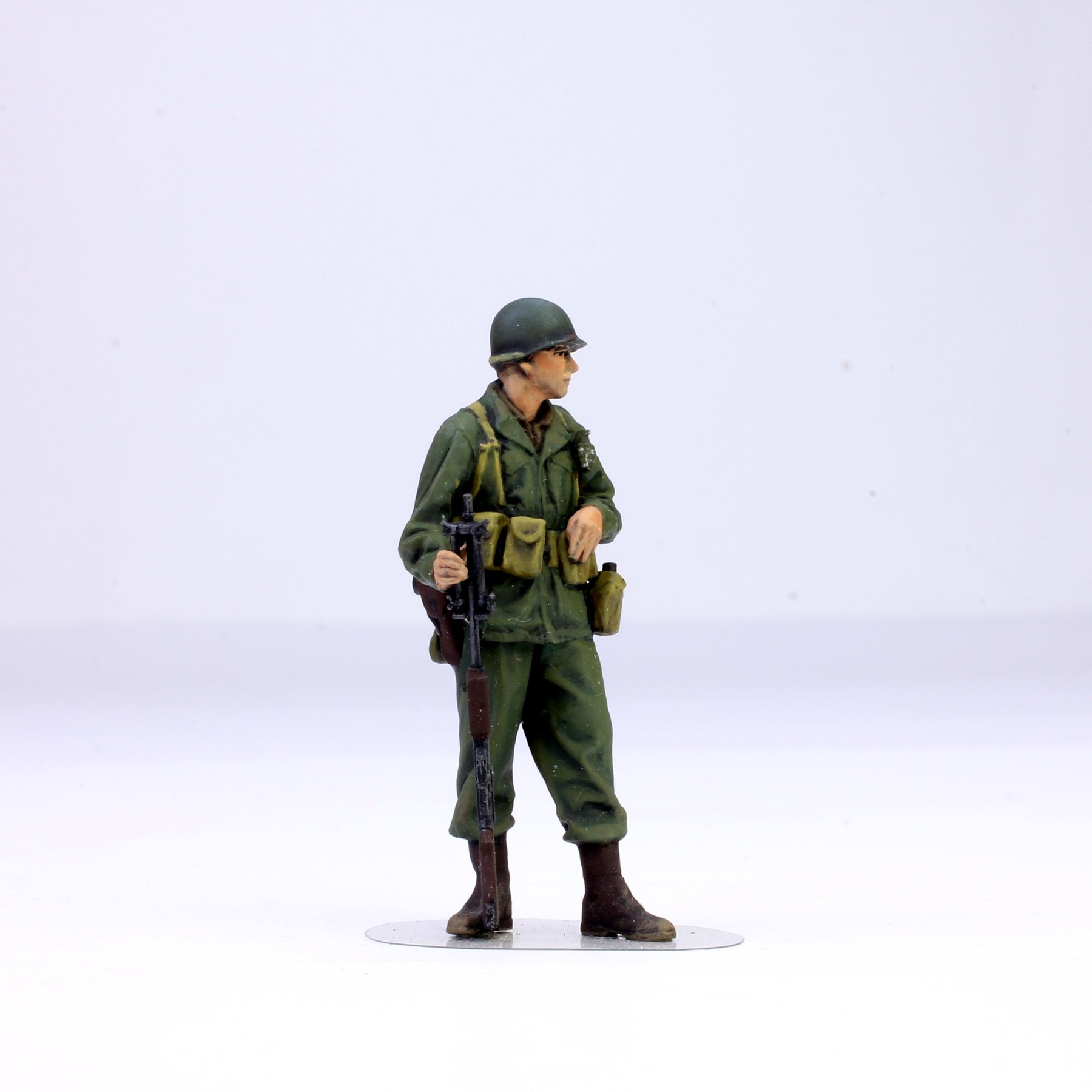 As evident in the accompanying images, the attention to detail on these figures is extraordinary. From the realism of the faces to the accuracy of the uniforms, equipment, and weaponry, this set transcends traditional miniatures, embodying historical accuracy at its finest. This collection isn't just for admiration; it's an opportunity to create your own WW2 diorama, bringing the history of the US Army Infantry Scouts into your living space.