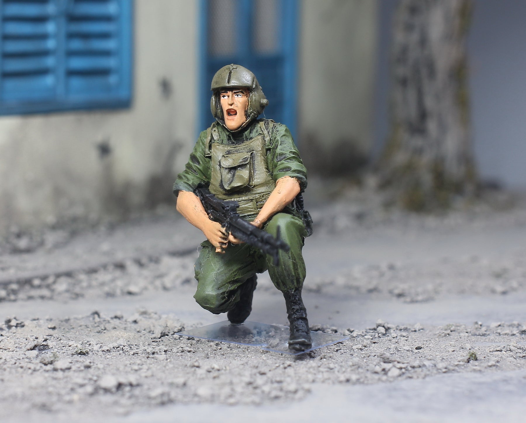US Helicopter Gunner Crew (UH1 Huey, OH6A Cayuse, CH47 Chinook) in Vietnam war (01 figure), 1/35 scaled ratio model, built and painted by Probuiltmodel is suitable for you to put into your helicopter model or diorama.